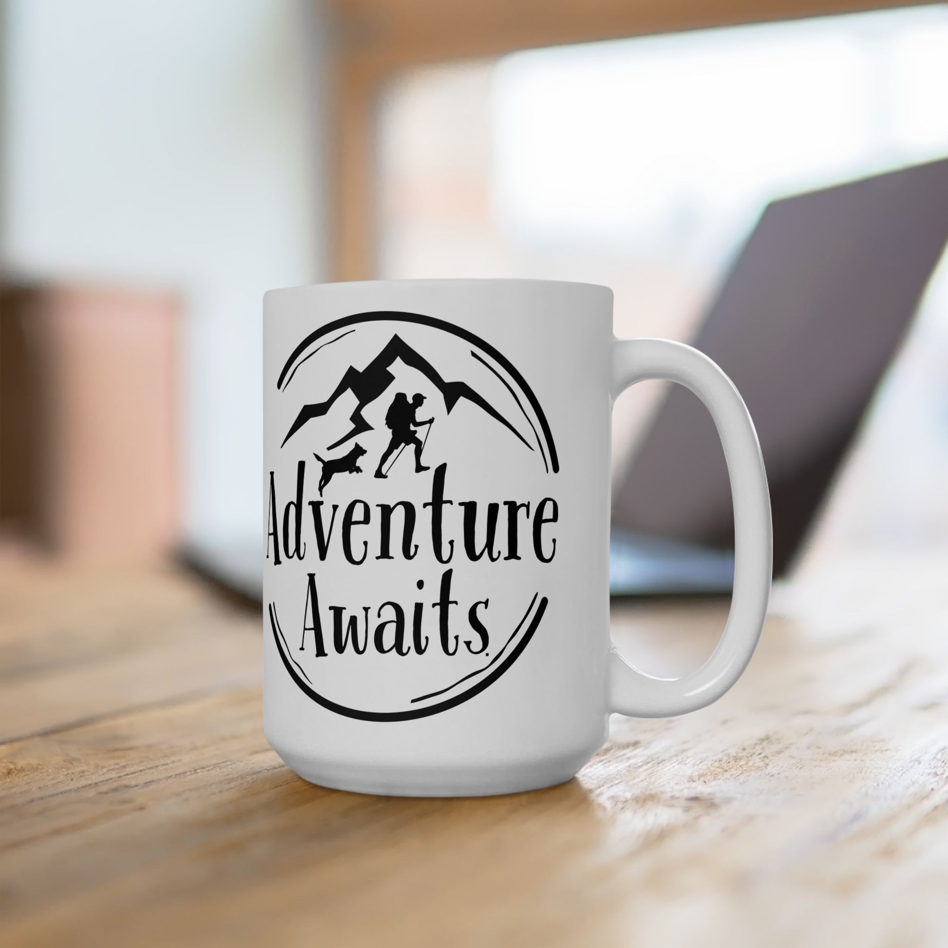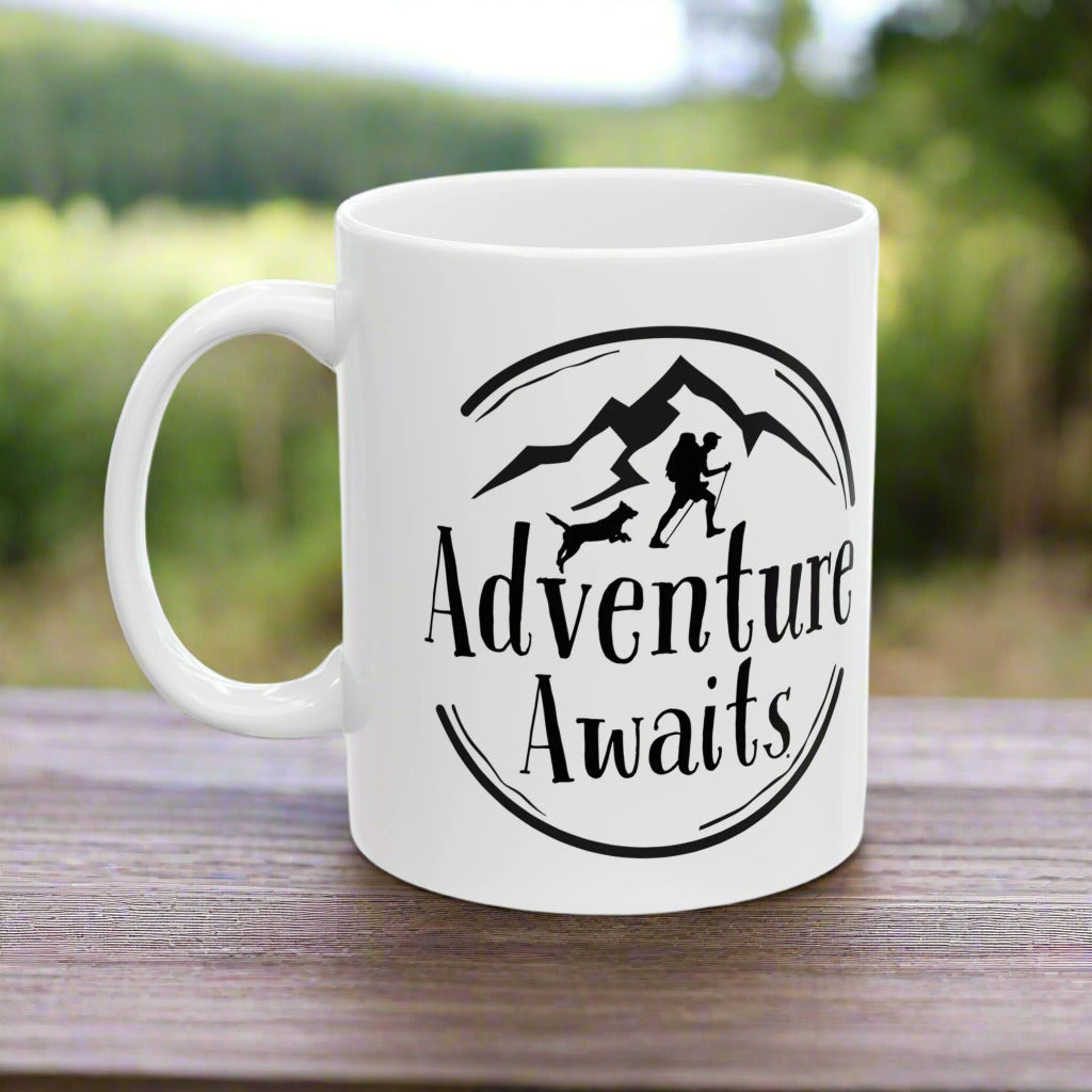 “Adventure Awaits” Hiking and Dog Lover Mug – Perfect Ceramic Coffee Cup for Outdoor Enthusiasts