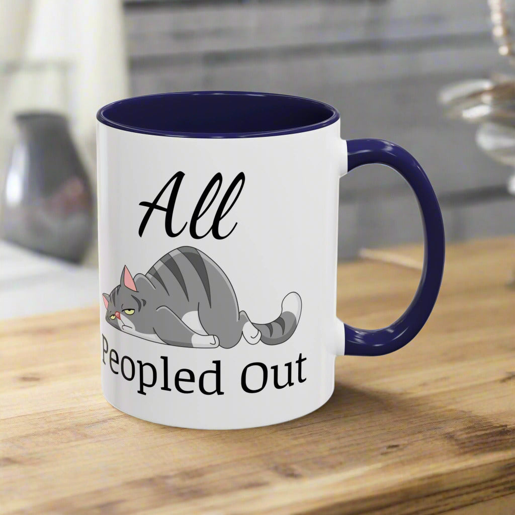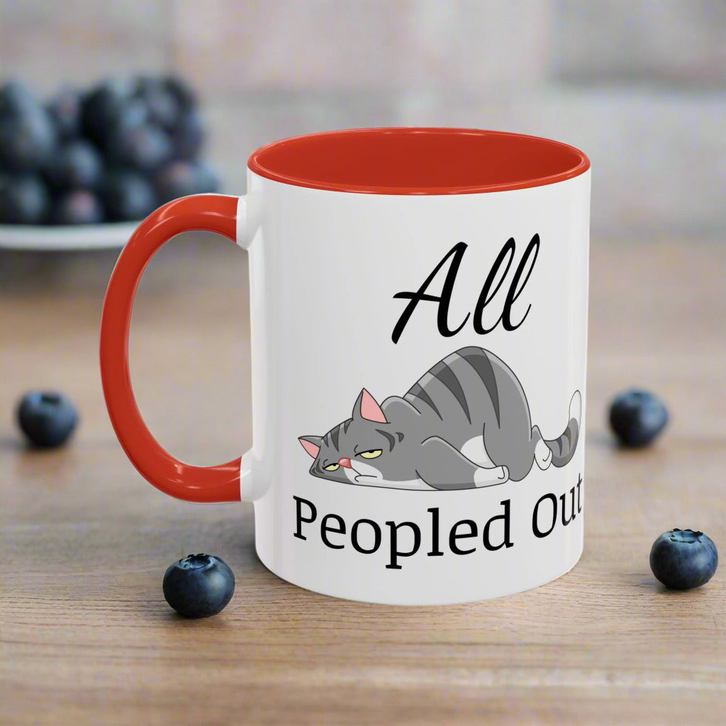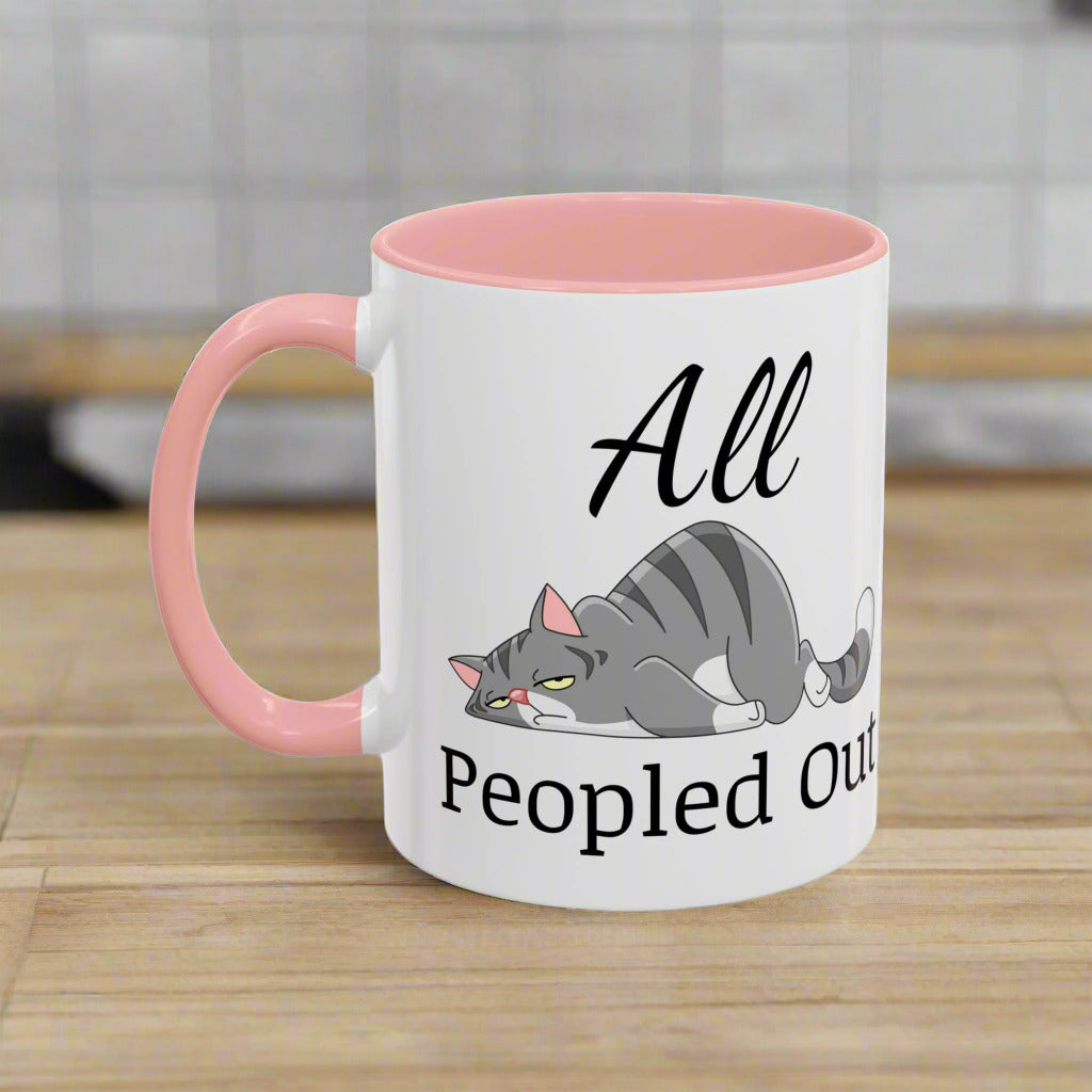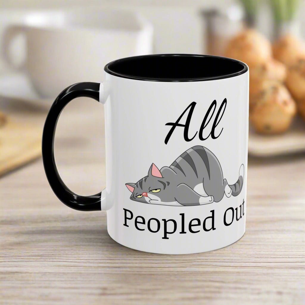Funny Cat Accent Mug – "All Peopled Out" Cute Cat Coffee Mug for Cat Lovers