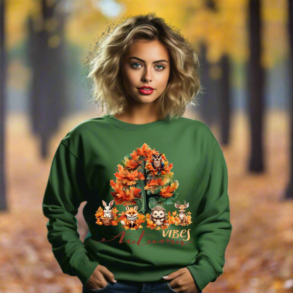 Welcome to a world of autumn vibes where the colors of fall come alive on your very own sweatshirt! Introducing our adorable, Cute Animal Sweatshirt featuring a picturesque tree with fall leaves and a wise old owl perched on a branch. The trunk of the tree is surrounded by charming baby animals frolicking in the fallen leaves, symbolizing the warmth and coziness of the season. This sweatshirt is more than just a piece of clothing, it's a celebration of fall style and nature's beauty. This sweatshirt is a unique piece of art that showcases the charm of the fall season and the cuteness of baby animals. It's an ideal choice for animal-lovers or anyone who appreciates the enchanting allure of autumn. Our Fall Leaves Shirt can be worn for casual outings, autumn picnics, or simply for lounging at home. It also makes a thoughtful Animal Lover Gift for birthdays, anniversaries, or just because. When you purchase this Cute Animal Sweatshirt, you're not just buying a piece of clothing, you're embracing the fall vibes and supporting handcrafted quality, creativity, and authenticity. Wrap yourself in the colors of fall and the cuteness of baby animals with our unique, adorable sweatshirt. Order yours today and let the autumn vibes fill your heart and wardrobe!