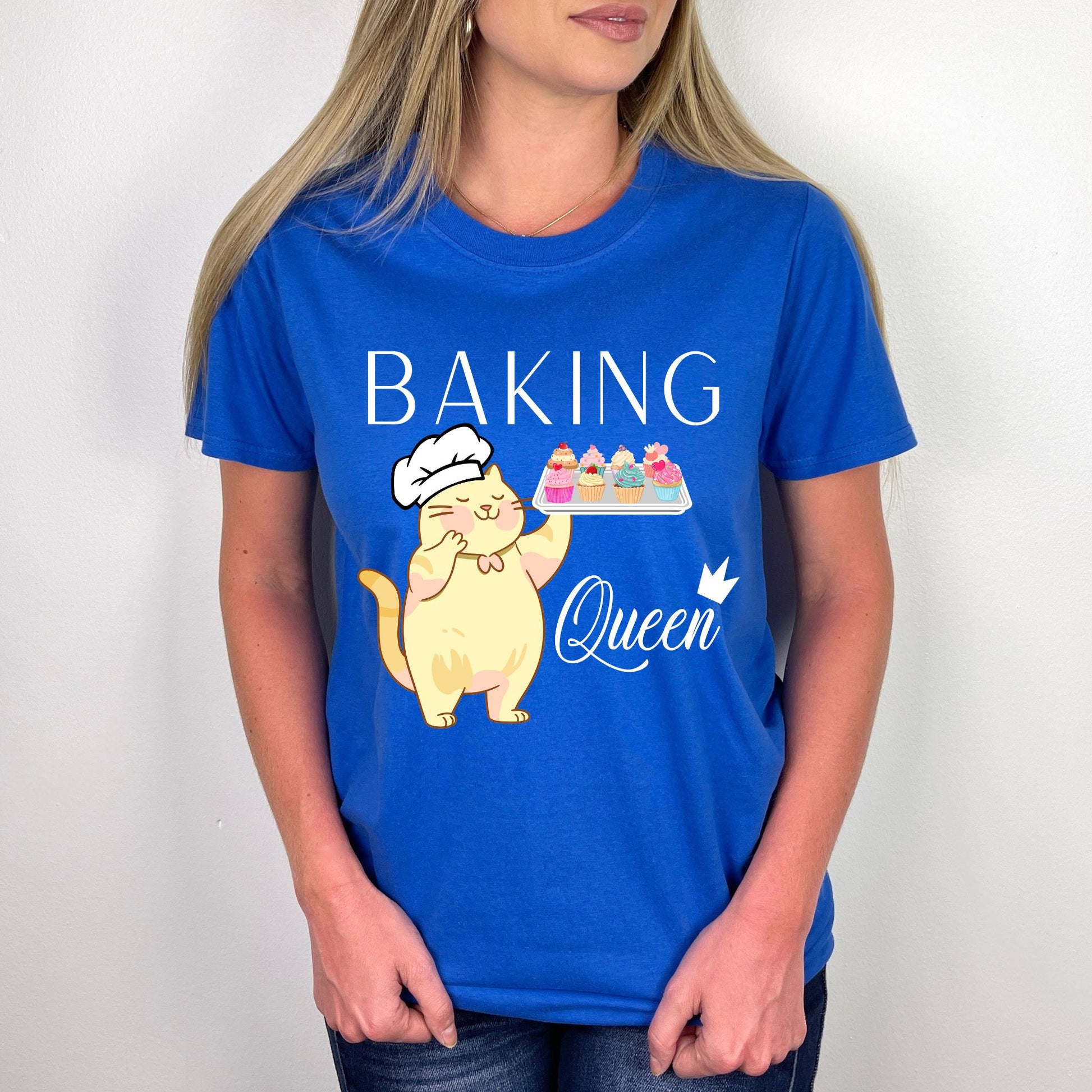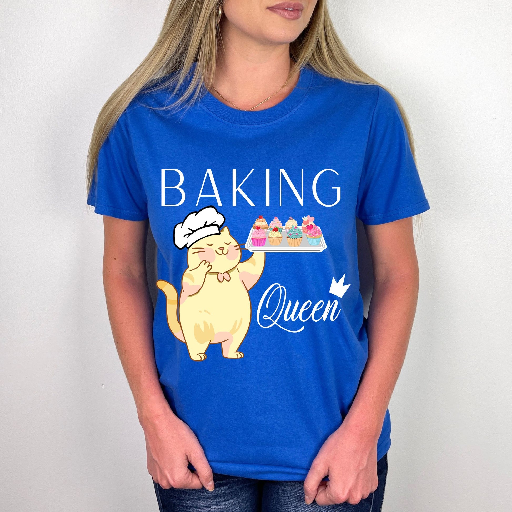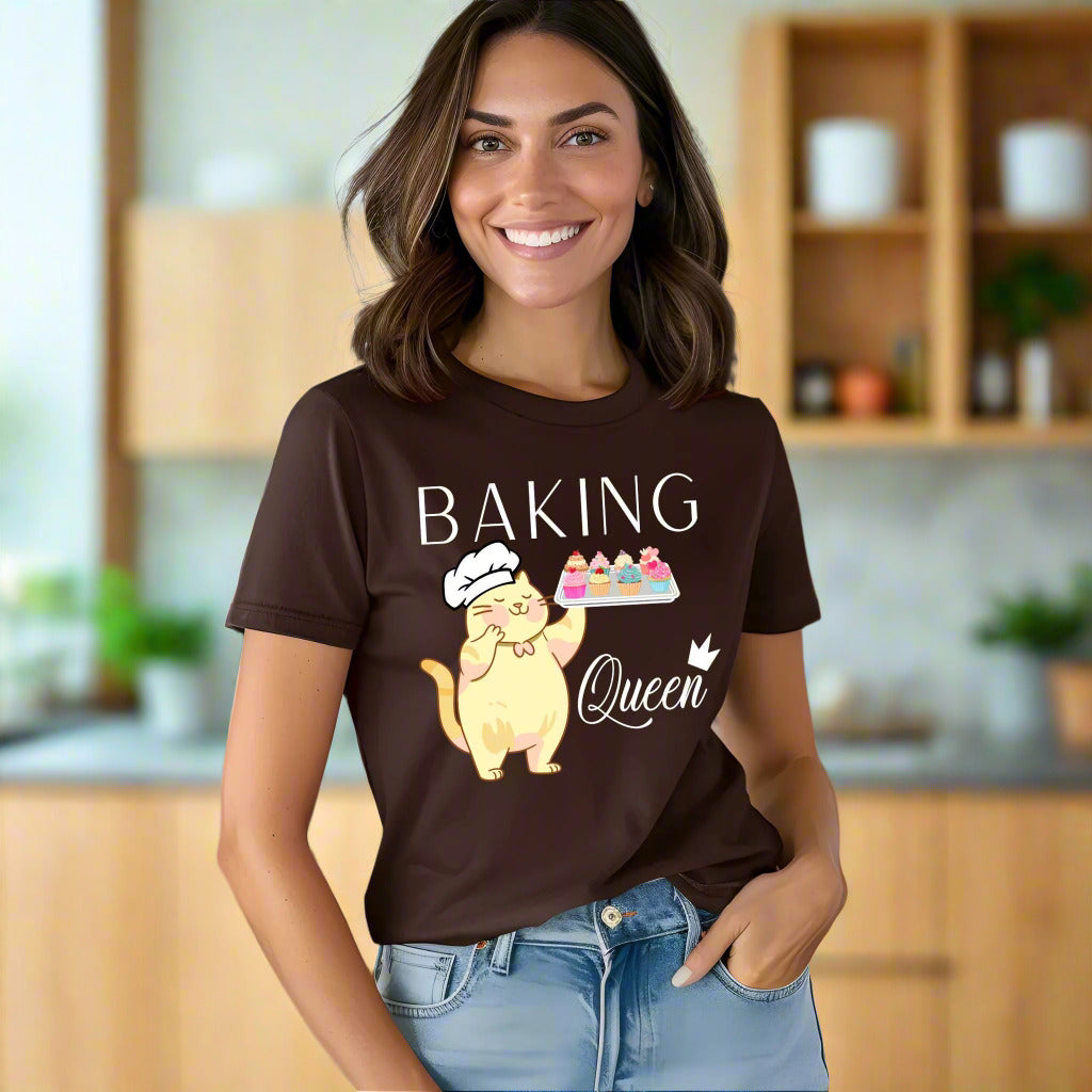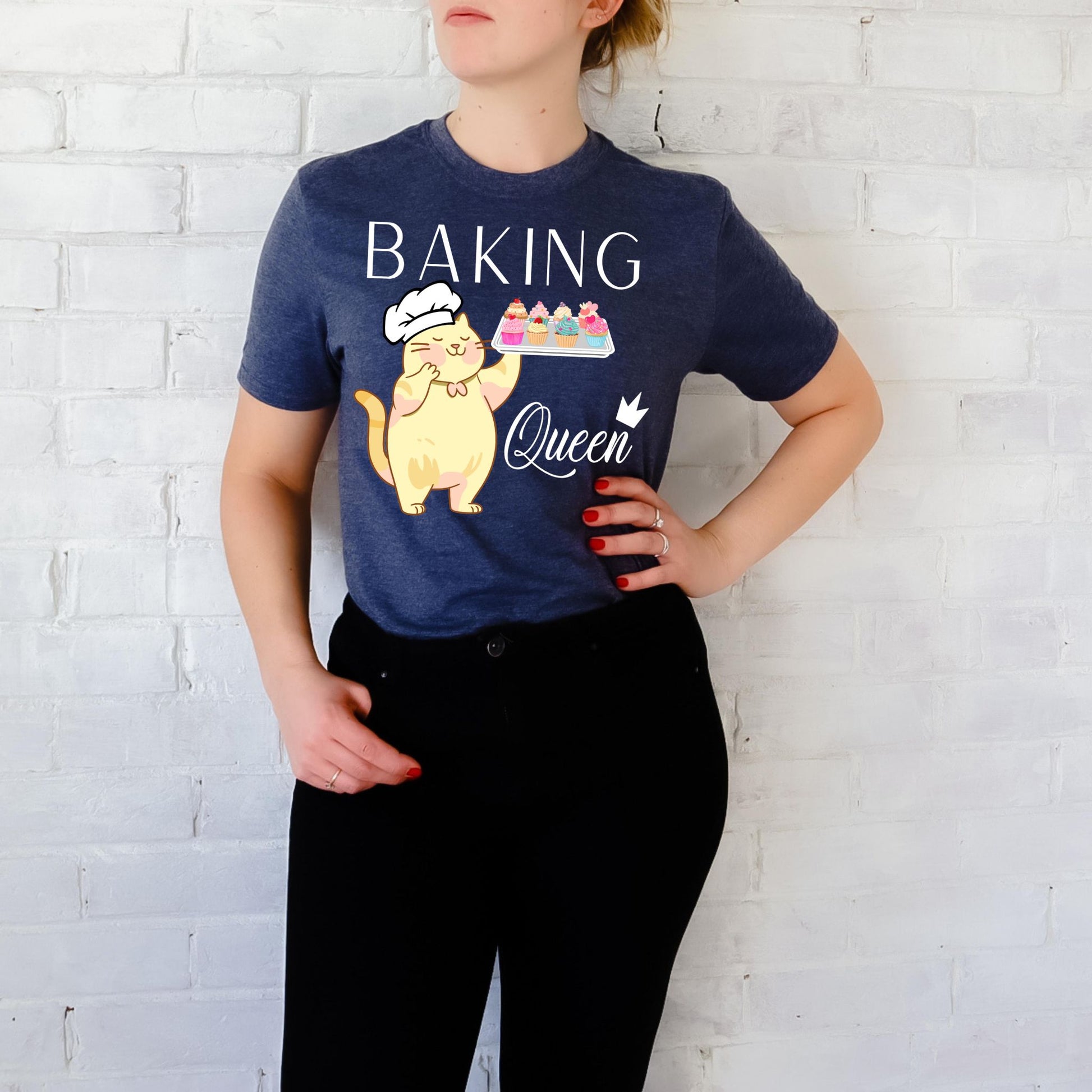 Do you know a baking queen? This delightful baking shirt is a unique gift for any baker in your life! With this fun design, anyone can show their love of baking and cooking in style. The adorable cat in a chef hat holding a tray of cupcakes will make any baking lover smile. The text reading “Baking Queen” is the perfect way to let everyone know they are an awesome baker. This fun baking queen shirt will be the perfect baking gift for that special baker in your life. Whether you are looking for a birthday gift, anniversary surprise, or just a way to say 'thank you', this cooking shirt is the perfect clothing accessory for any fan of baking Say 'thank you' to the baking queen in your life with this joyful and colorful cupcake shirt. This unique baking mom shirt is the perfect gift for any baker. Let them show their love of cupcakes and baking in style with this beautiful baking-inspired shirt. No matter the occasion, you can give them something special with this must-have baking shirt. Don't wait, order yours today and let the baking queen in your life know how much you appreciate their hard work!