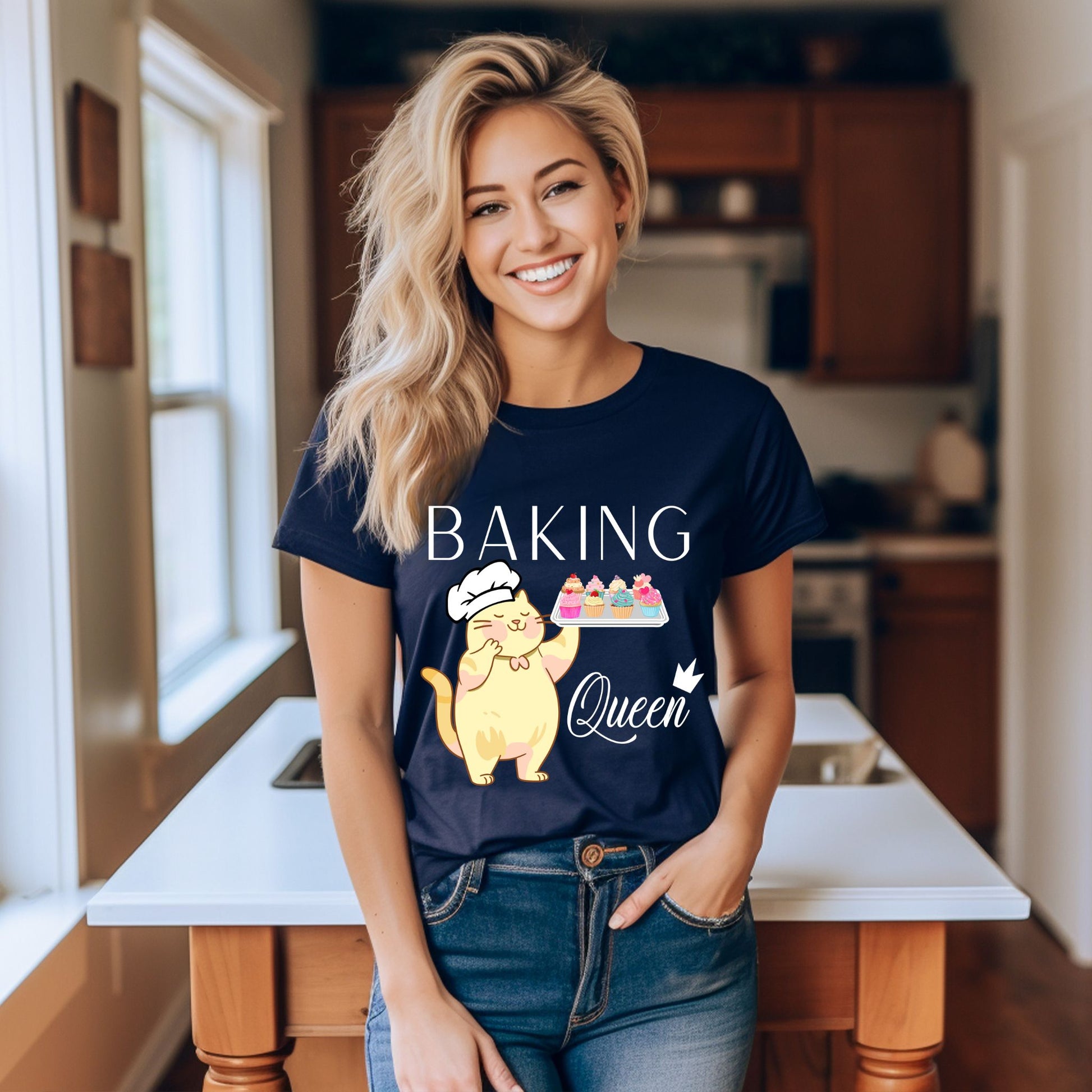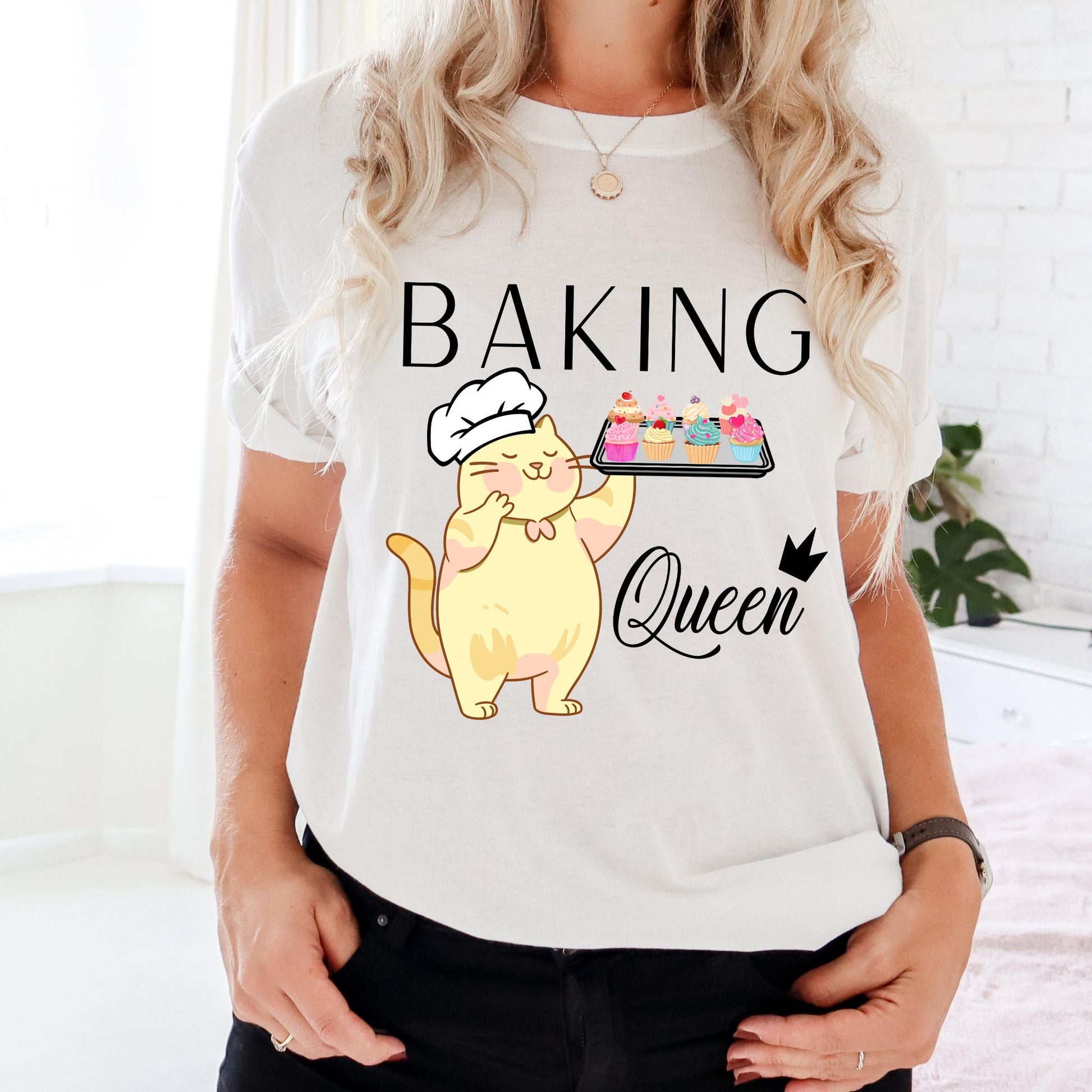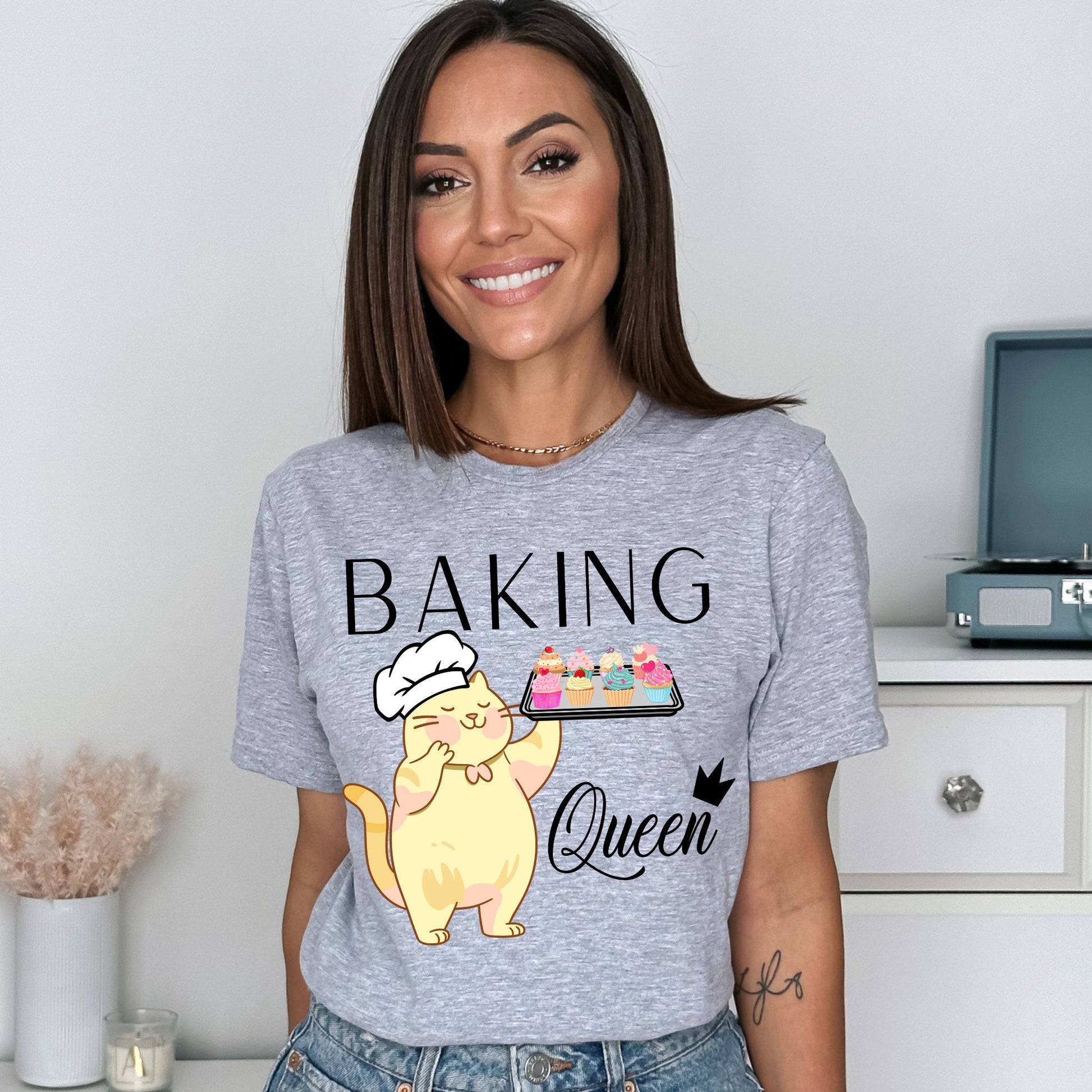 Do you know a baking queen? This delightful baking shirt is a unique gift for any baker in your life! With this fun design, anyone can show their love of baking and cooking in style. The adorable cat in a chef hat holding a tray of cupcakes will make any baking lover smile. The text reading “Baking Queen” is the perfect way to let everyone know they are an awesome baker. This fun baking queen shirt will be the perfect baking gift for that special baker in your life. Whether you are looking for a birthday gift, anniversary surprise, or just a way to say 'thank you', this cooking shirt is the perfect clothing accessory for any fan of baking Say 'thank you' to the baking queen in your life with this joyful and colorful cupcake shirt. This unique baking mom shirt is the perfect gift for any baker. Let them show their love of cupcakes and baking in style with this beautiful baking-inspired shirt. No matter the occasion, you can give them something special with this must-have baking shirt. Don't wait, order yours today and let the baking queen in your life know how much you appreciate their hard work!