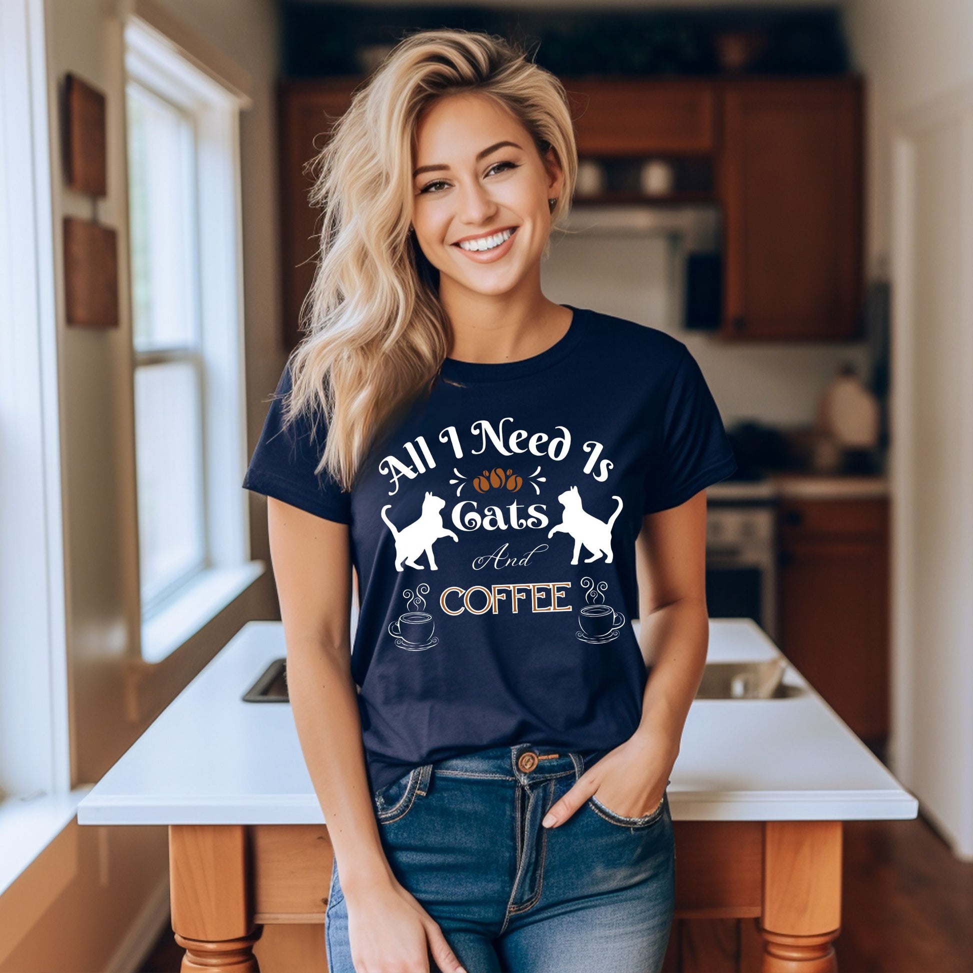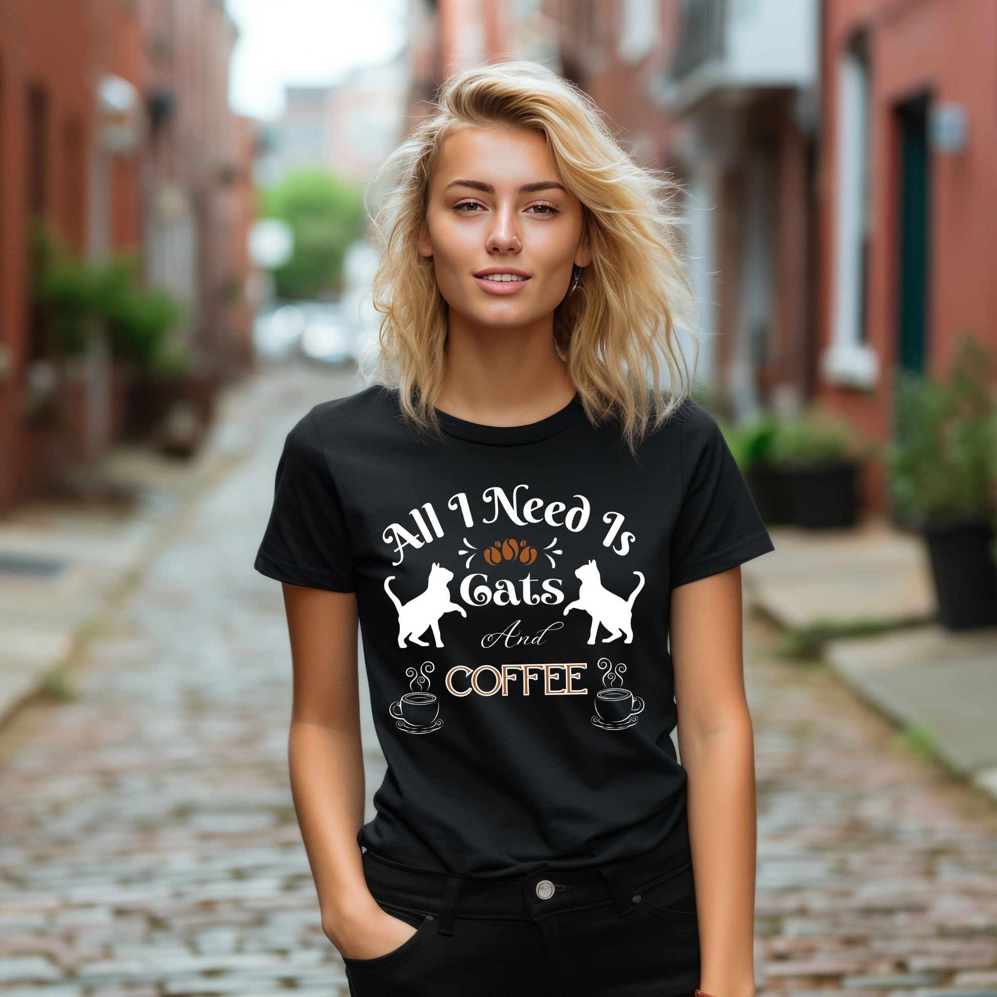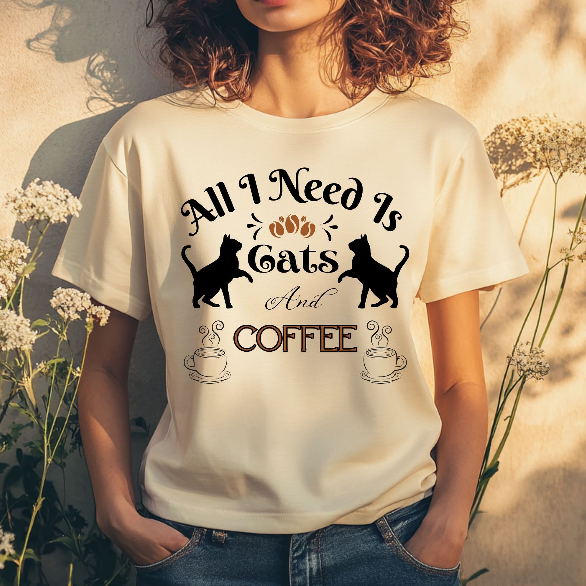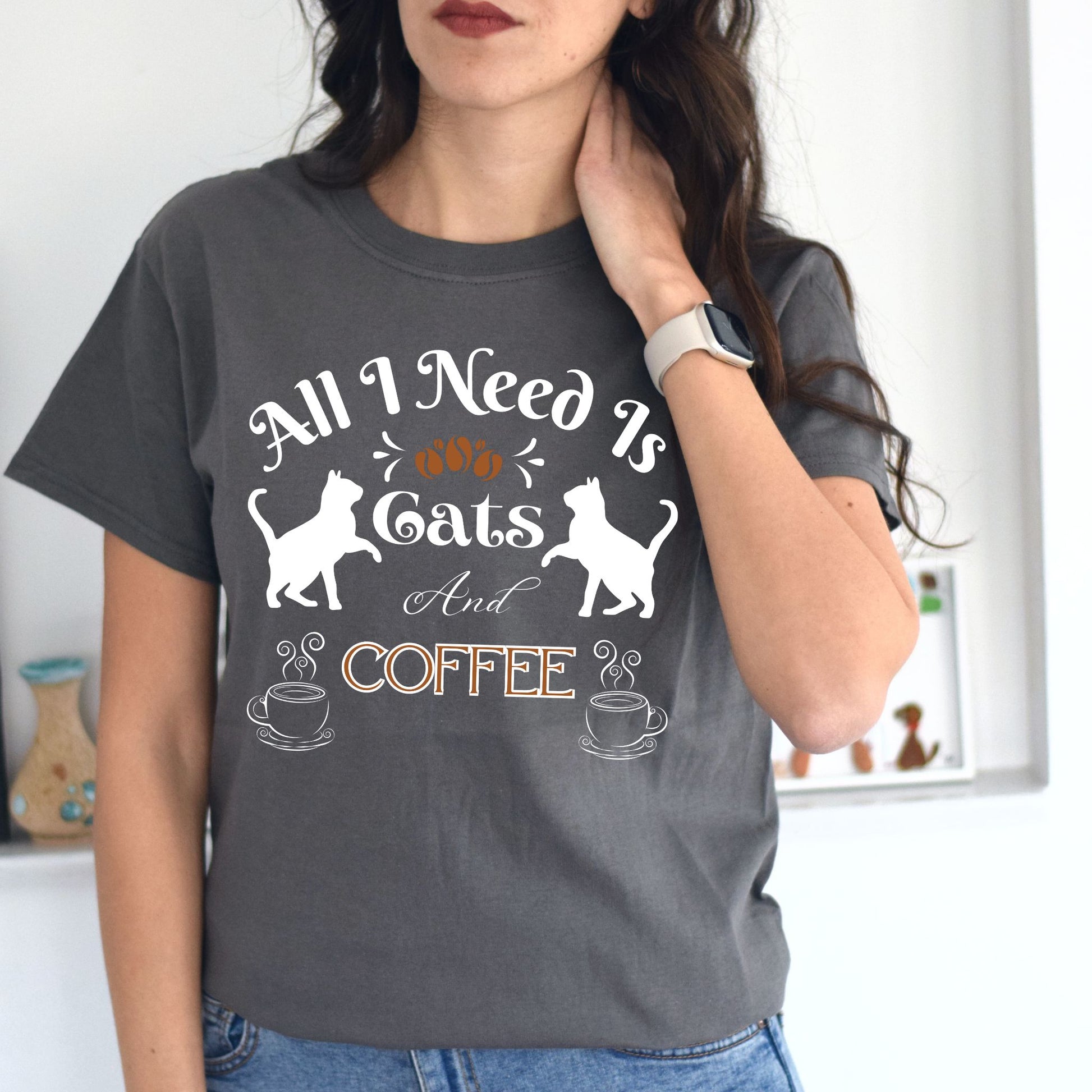 Cat and Coffee T-Shirt - All I need is Cats And Coffee Design Cat Lover Shirt Coffee Lover Tee