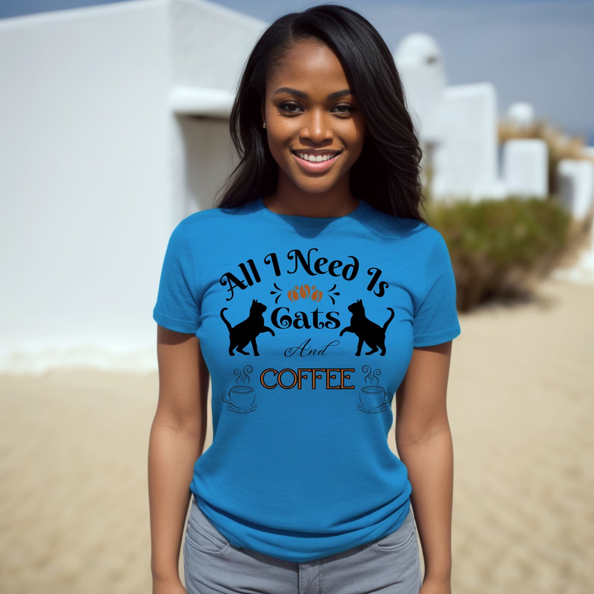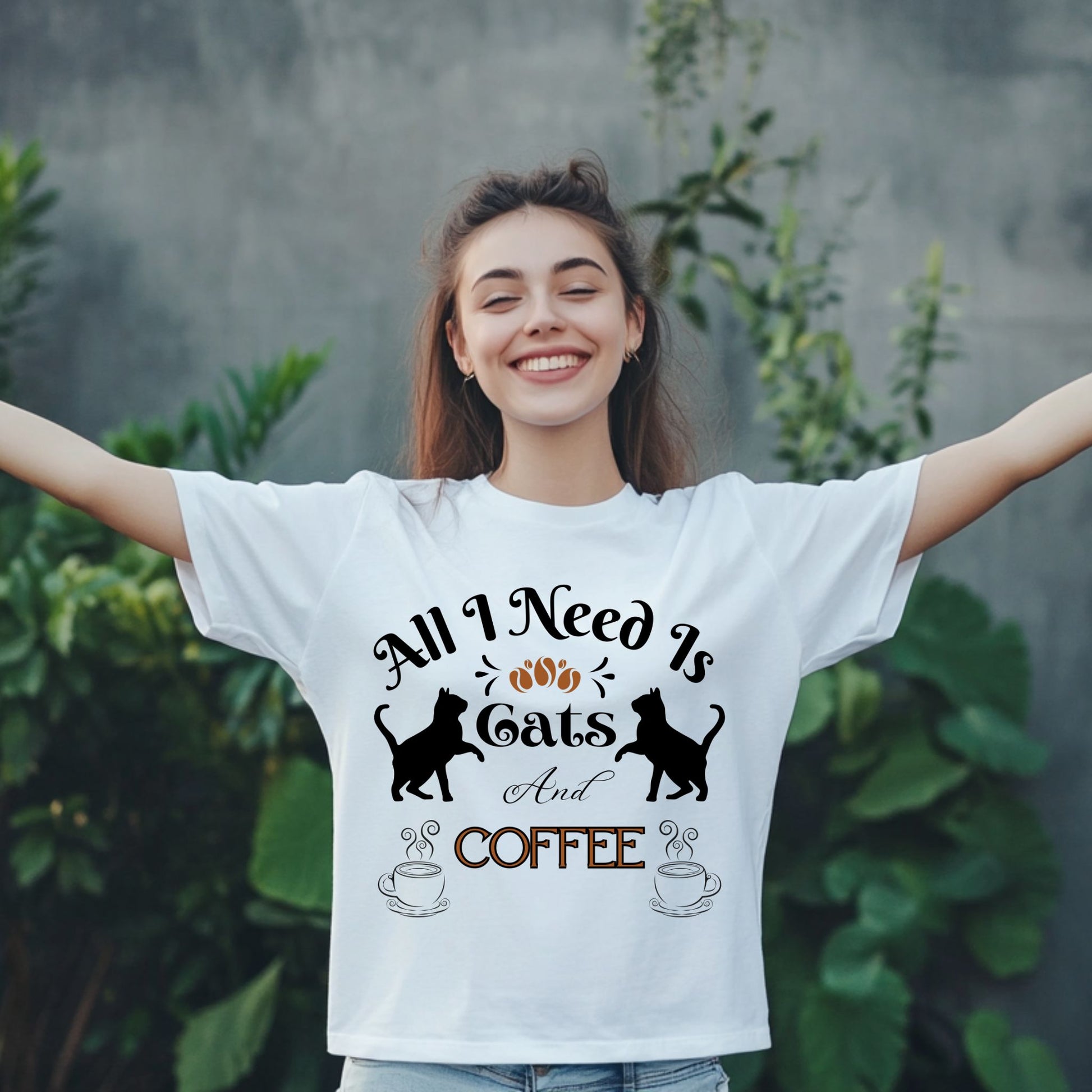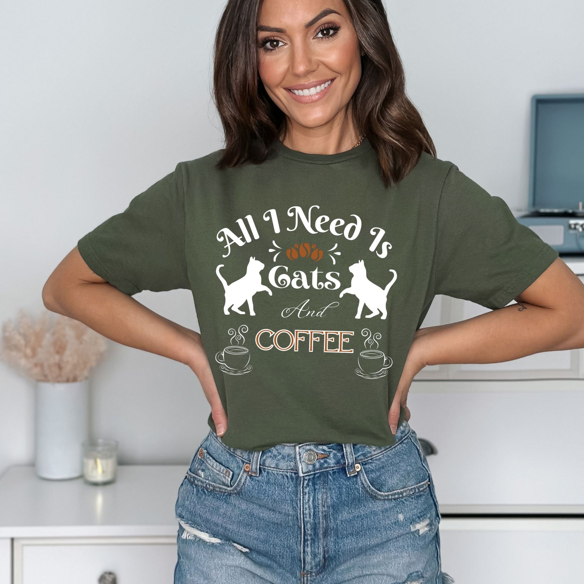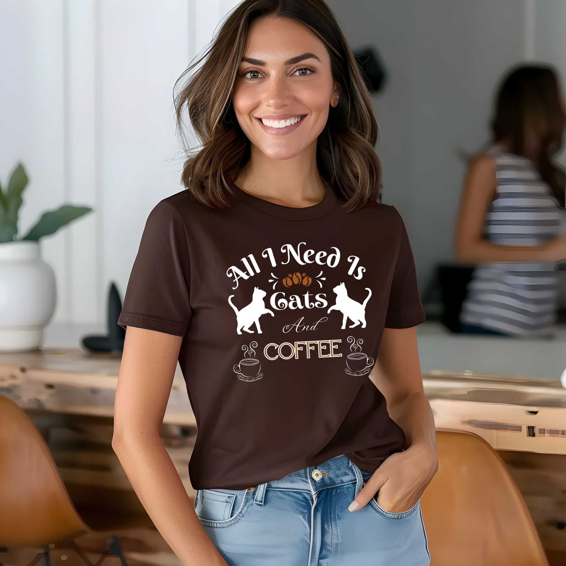 Cat and Coffee T-Shirt - All I need is Cats And Coffee Design Cat Lover Shirt Coffee Lover Tee