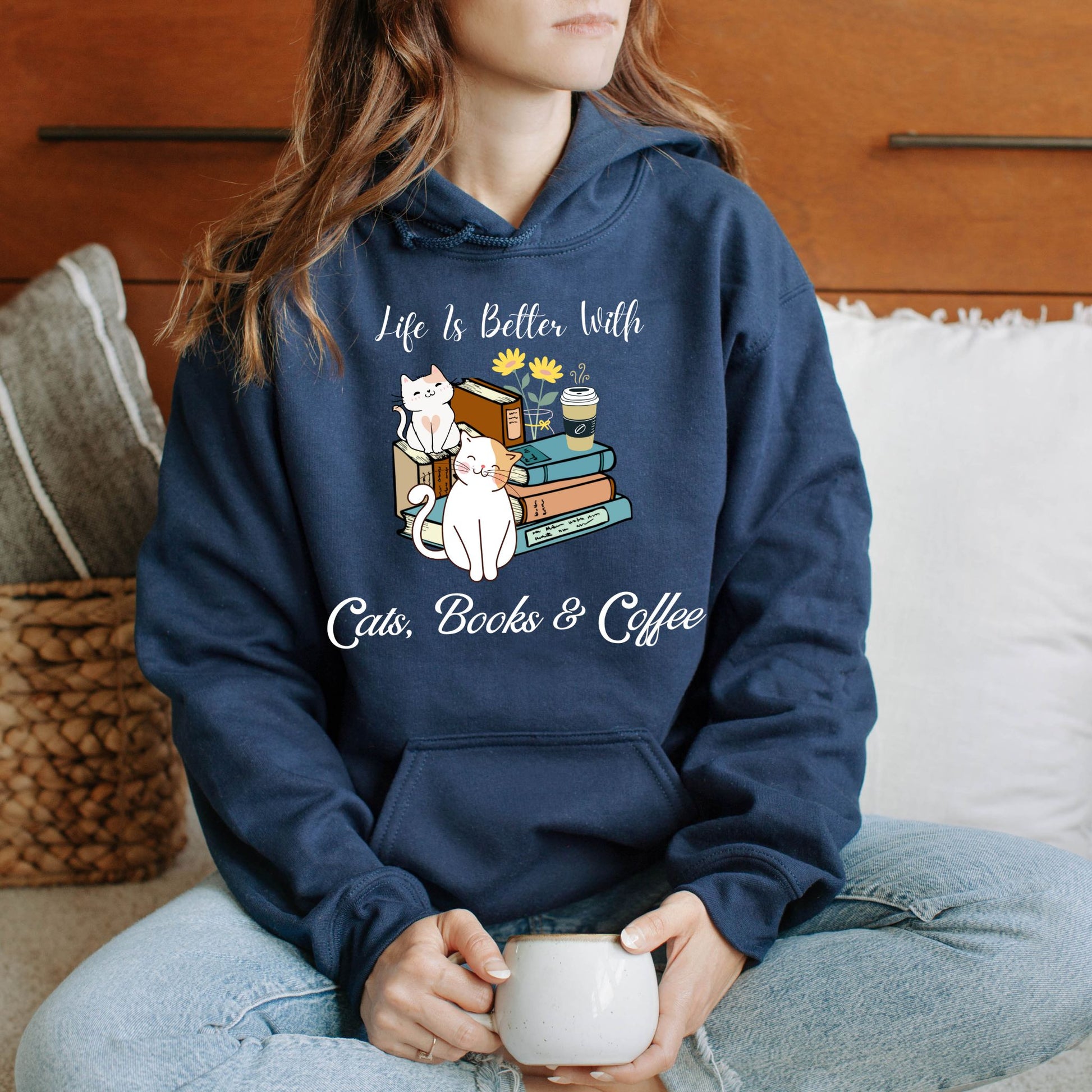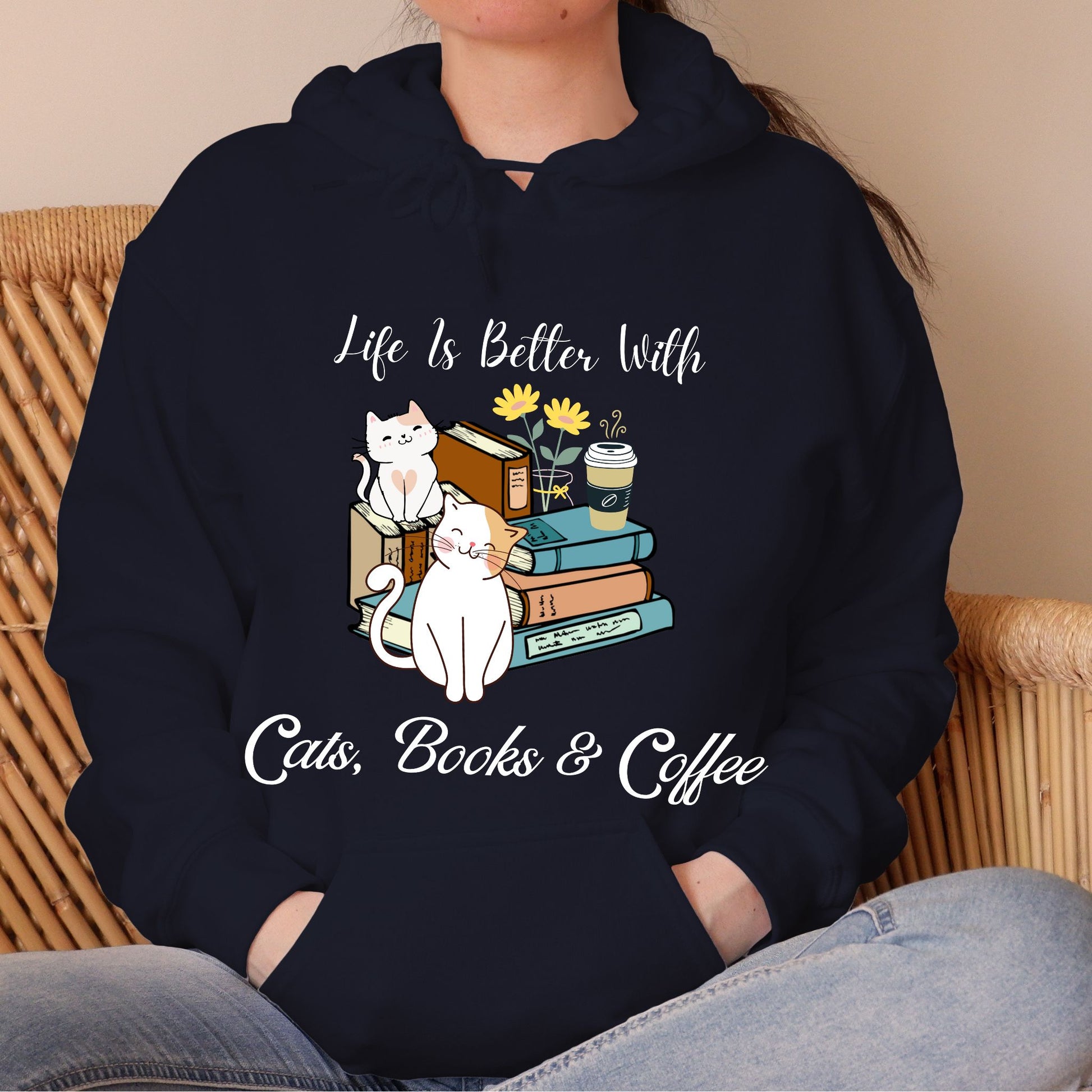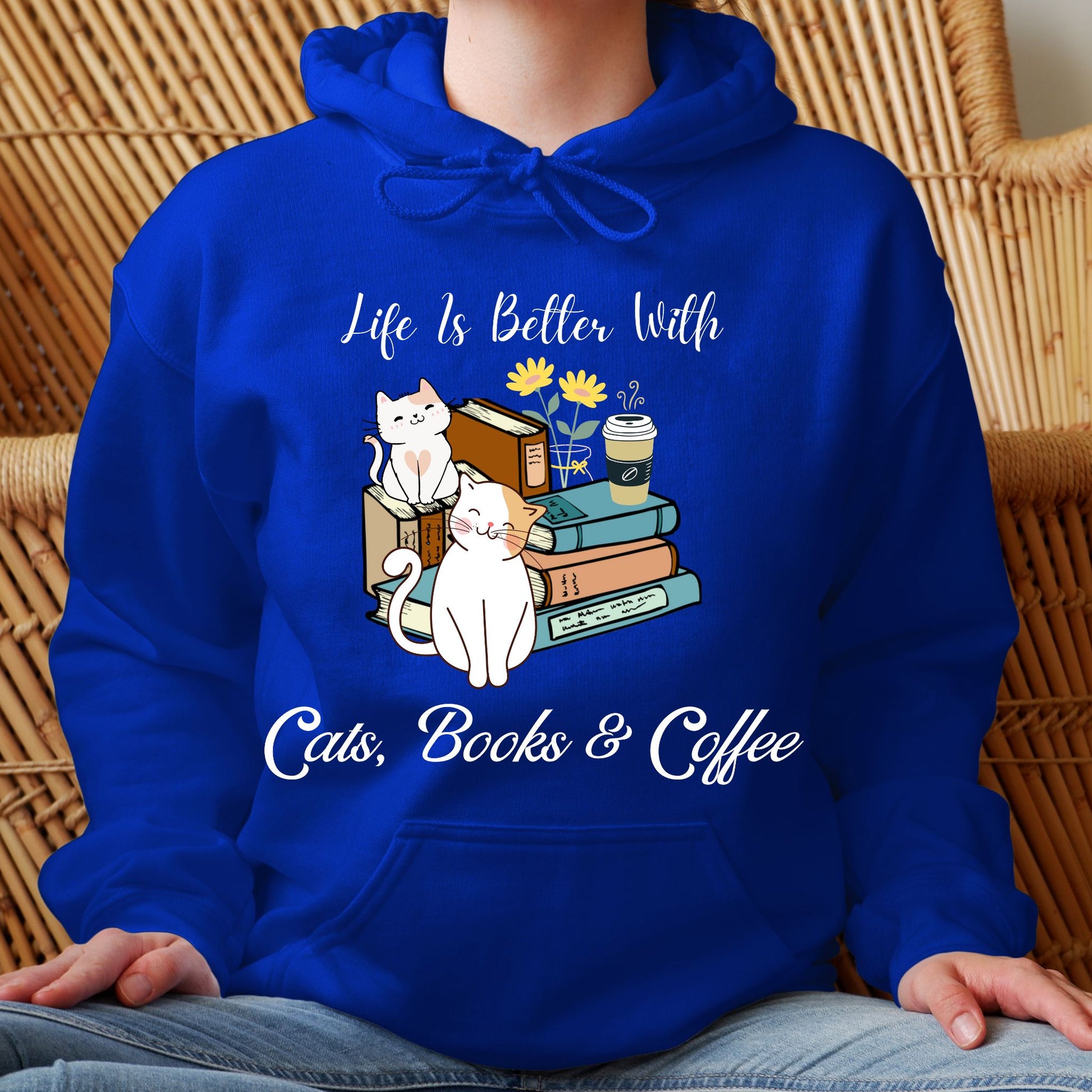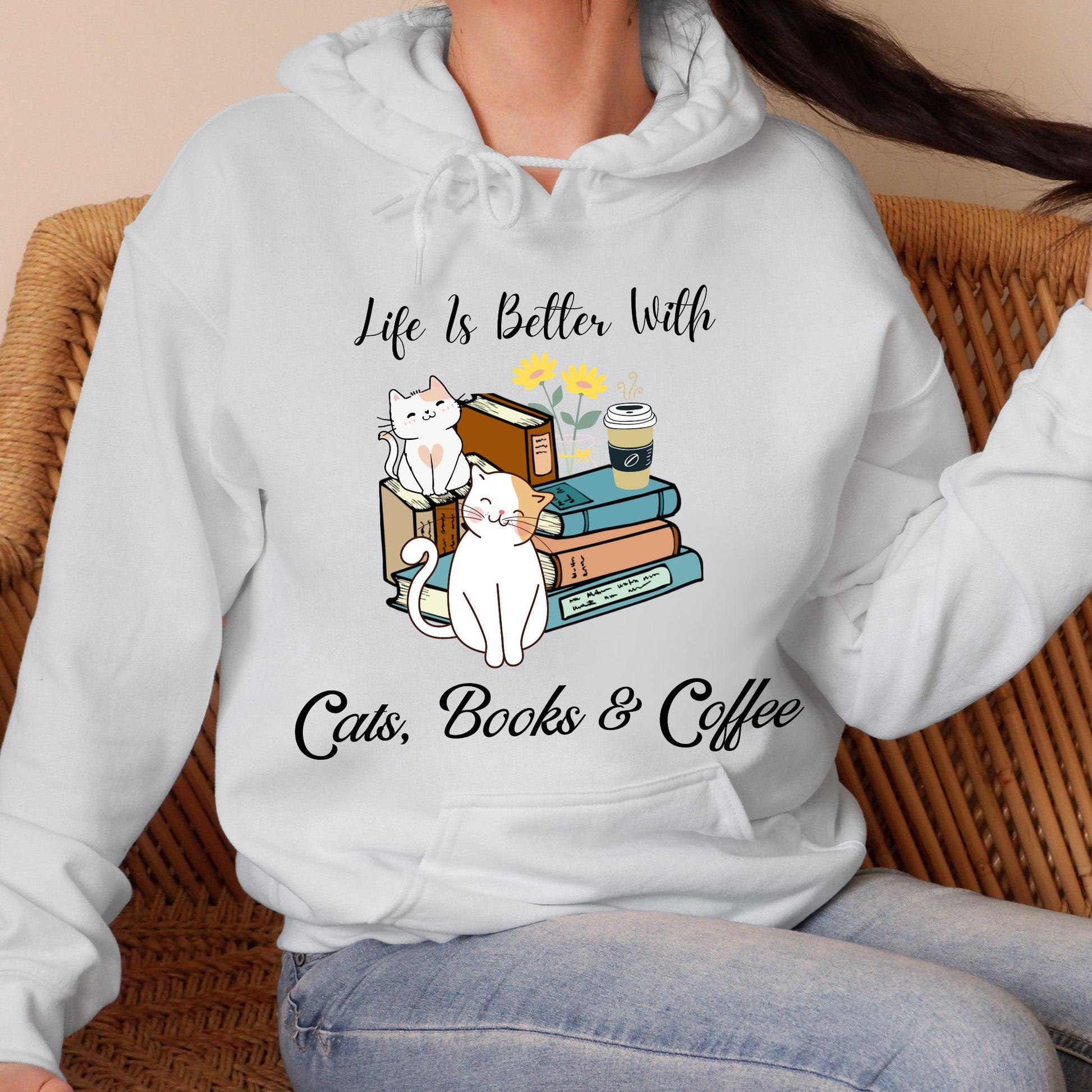 Cats Books And Coffee Hoodie Bookish Sweatshirt Bookworm Gift Reading Hoodie Bibliophile Gift Librarian Sweatshirt