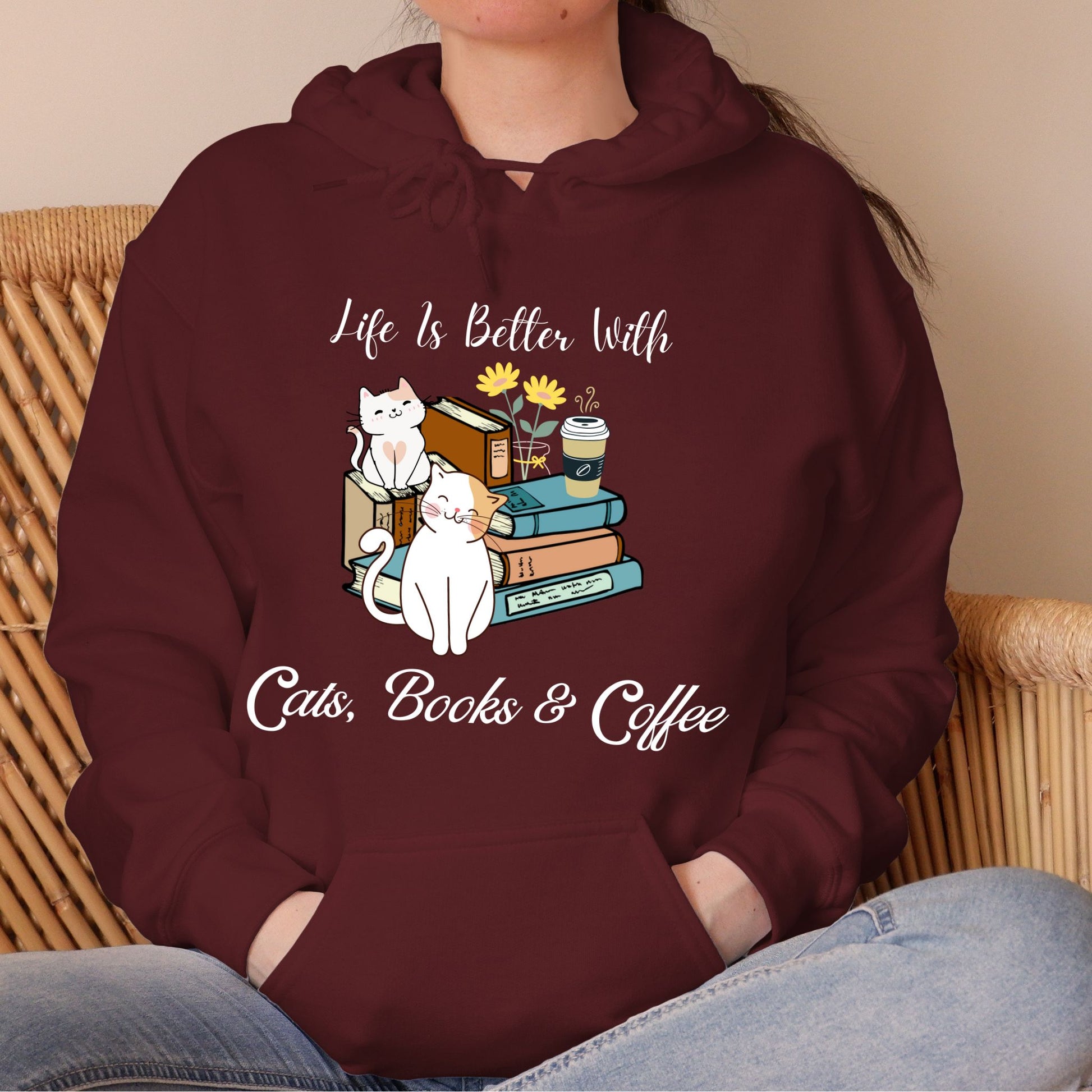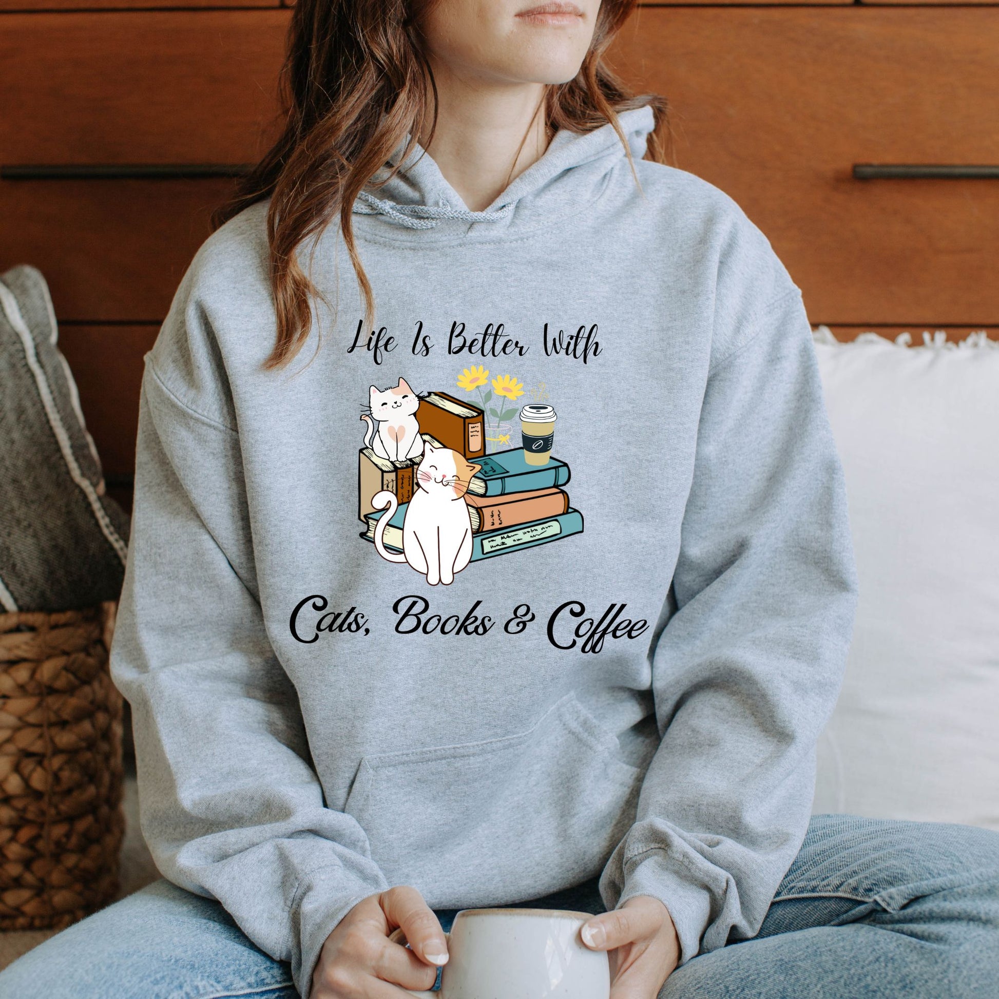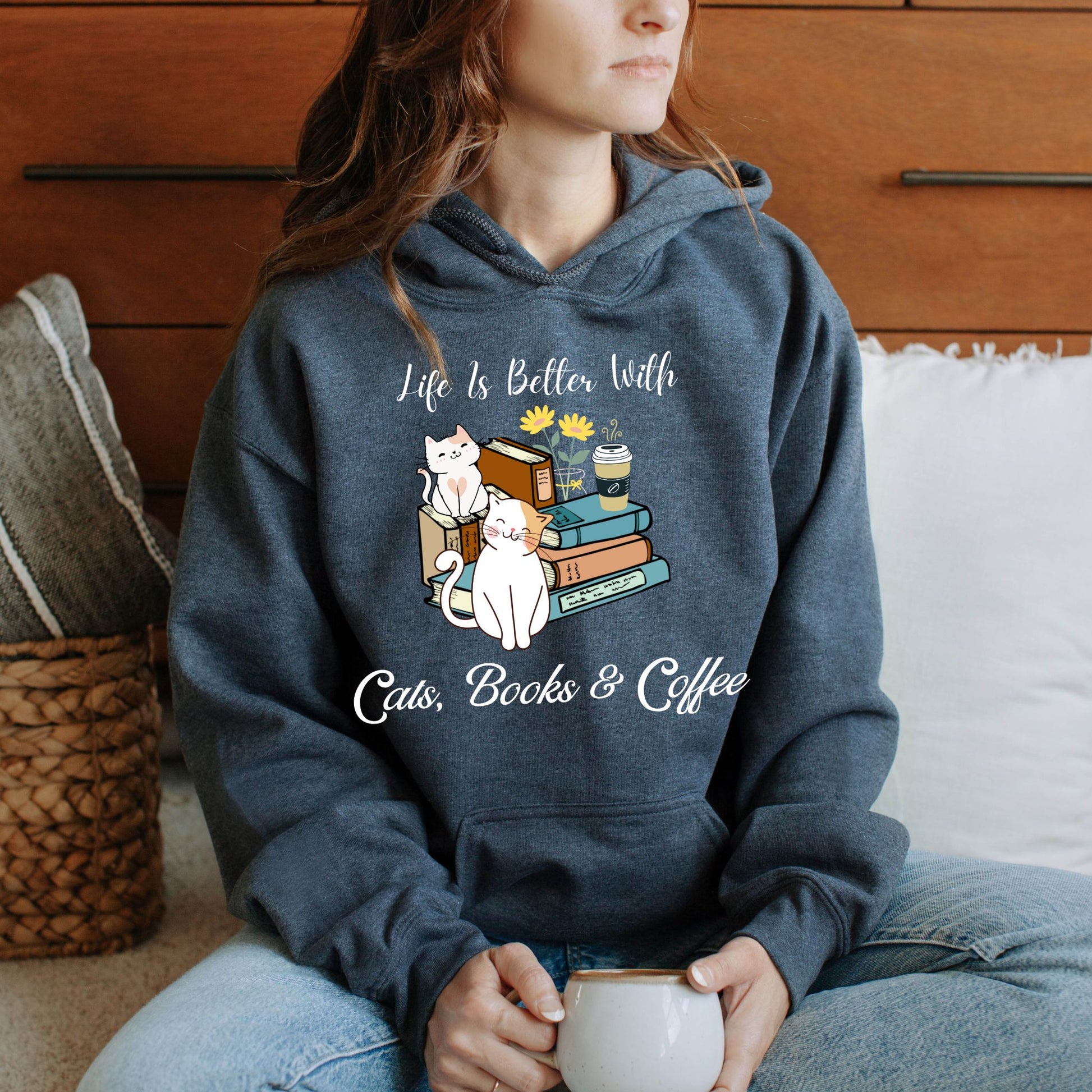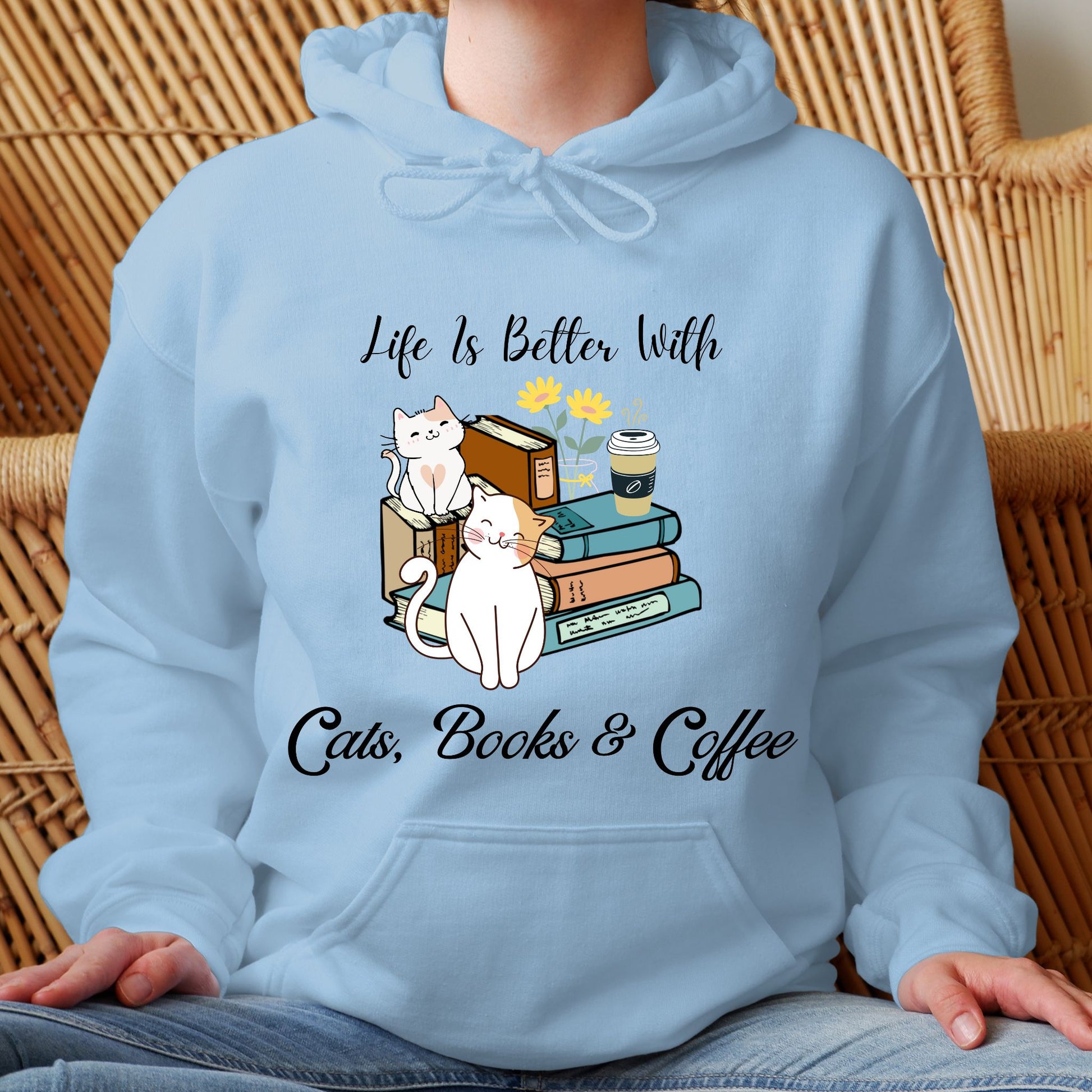 Cats Books And Coffee Hoodie Bookish Sweatshirt Bookworm Gift Reading Hoodie Bibliophile Gift Librarian Sweatshirt