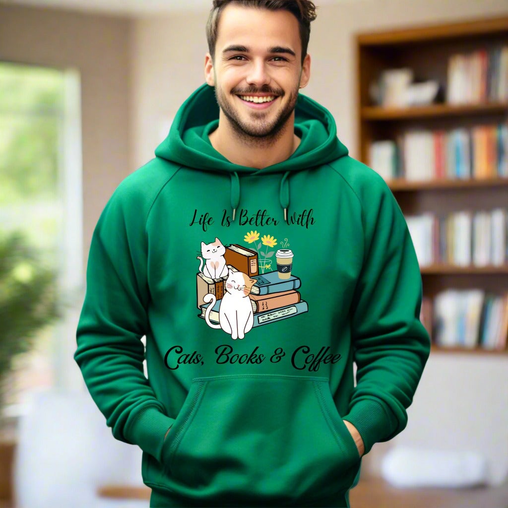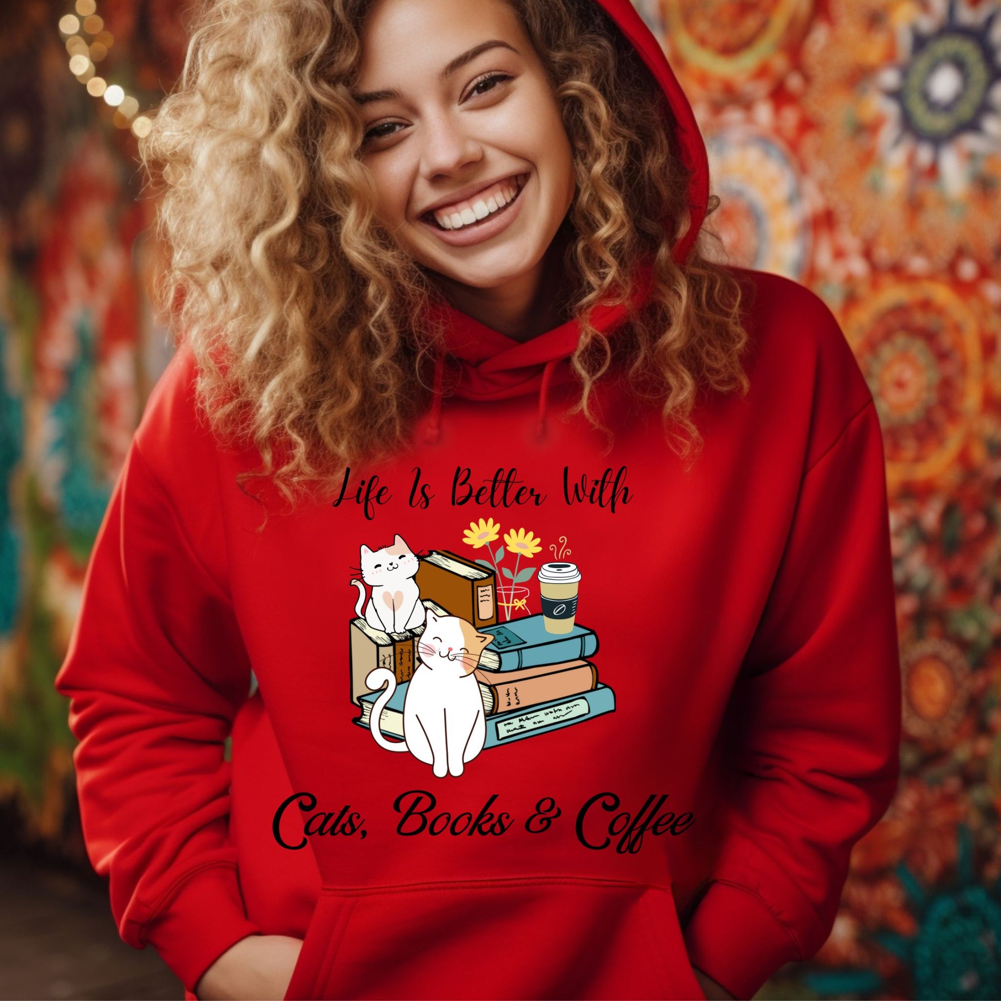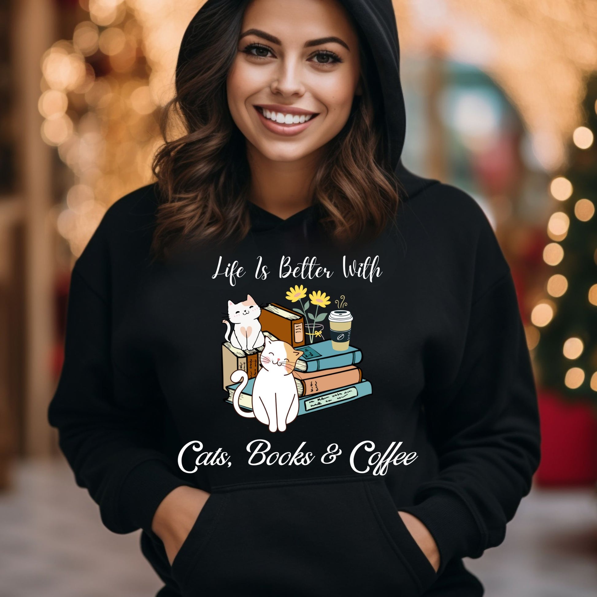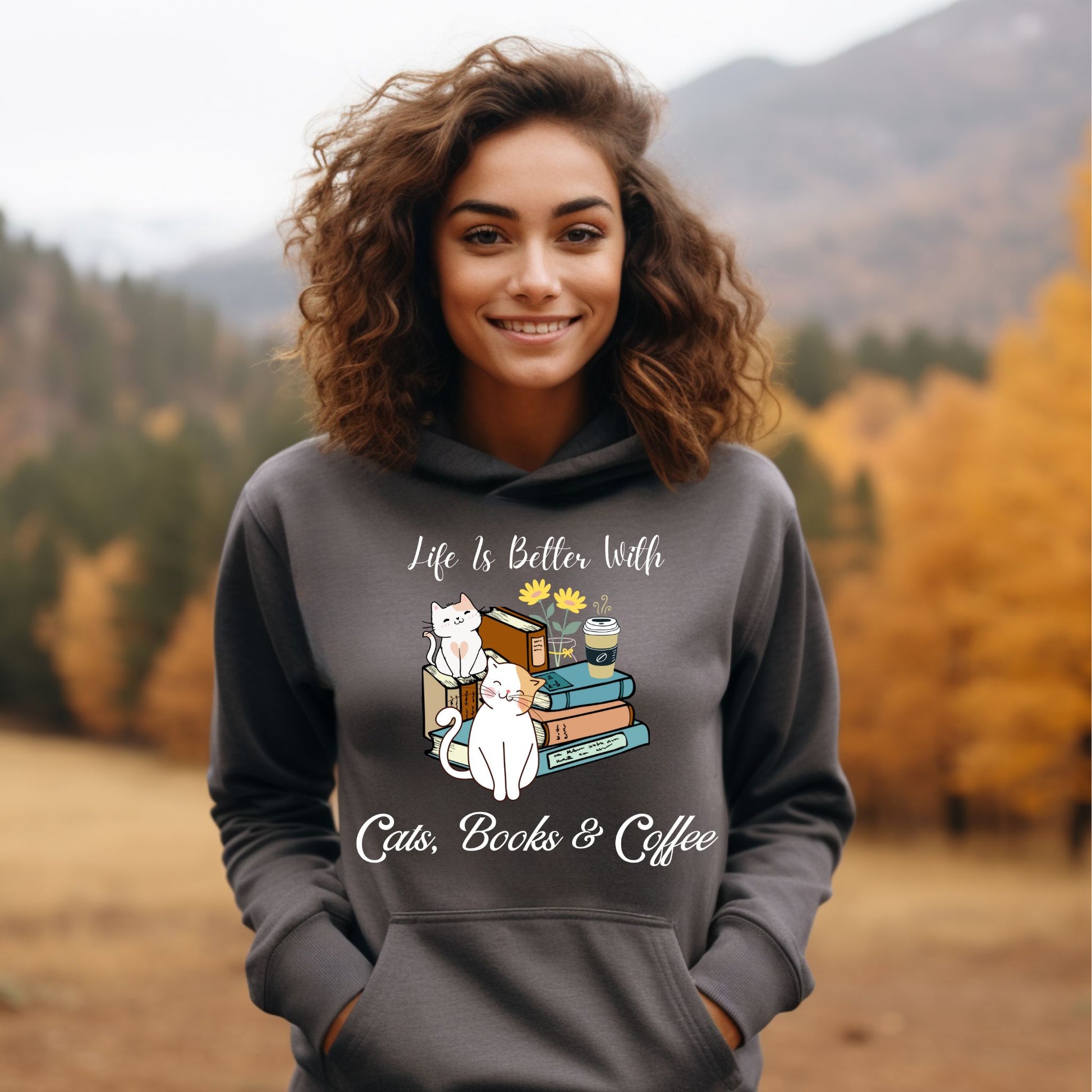 Cats Books And Coffee Hoodie Bookish Sweatshirt Bookworm Gift Reading Hoodie Bibliophile Gift Librarian Sweatshirt