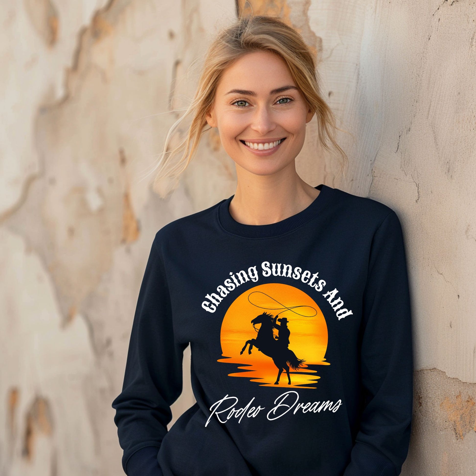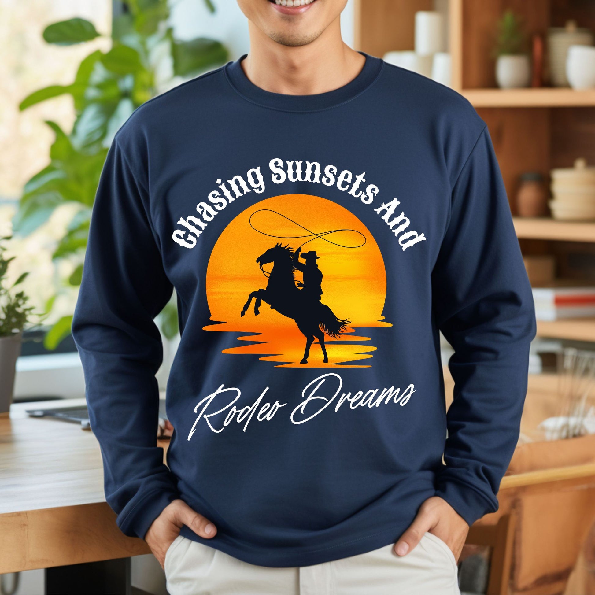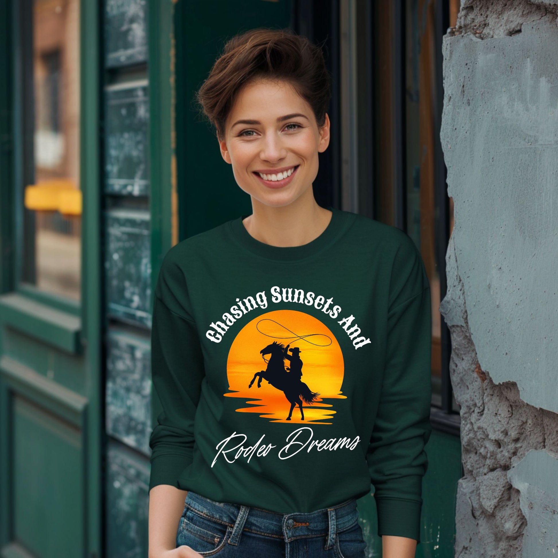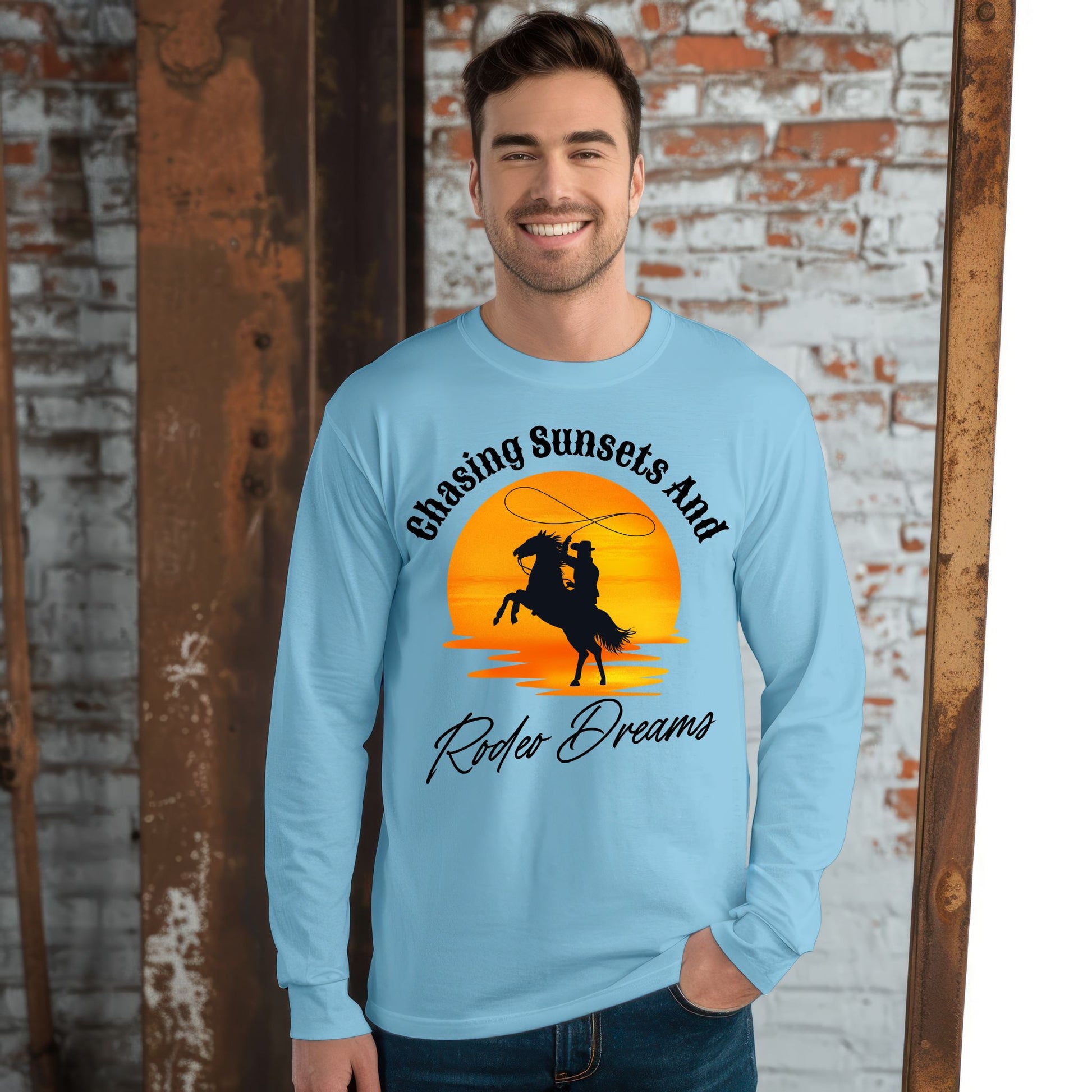 Chasing Sunsets and Rodeo Dreams T-Shirt, Western Apparel, Country Music Shirt, Cowboy Gift, Summer Outfit Long Sleeve Tee