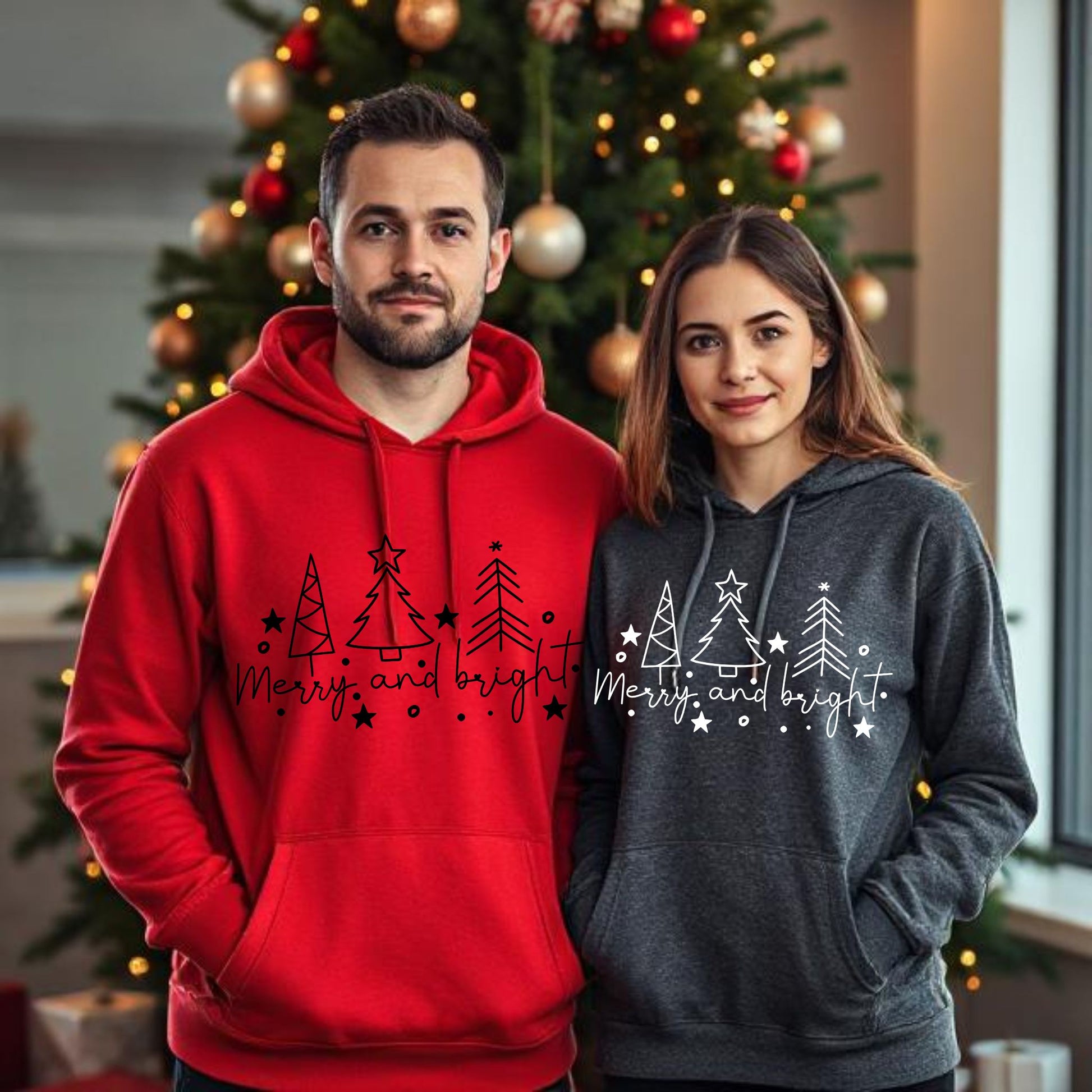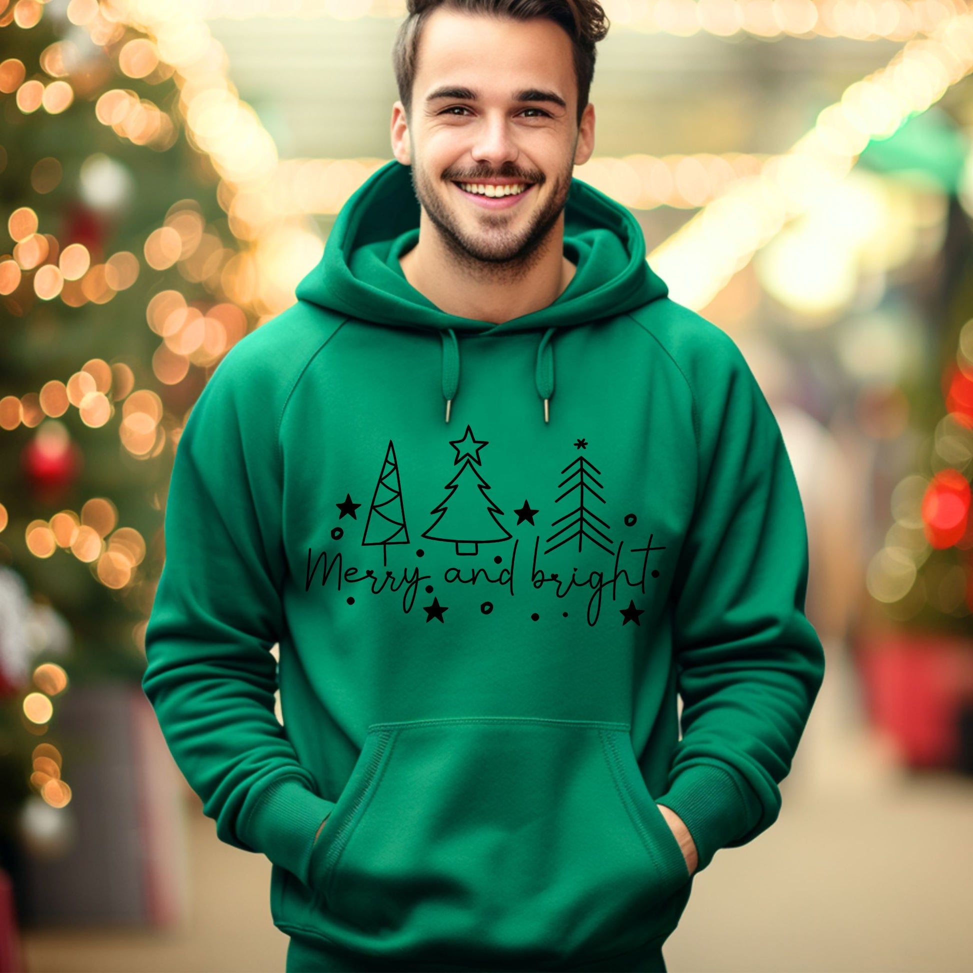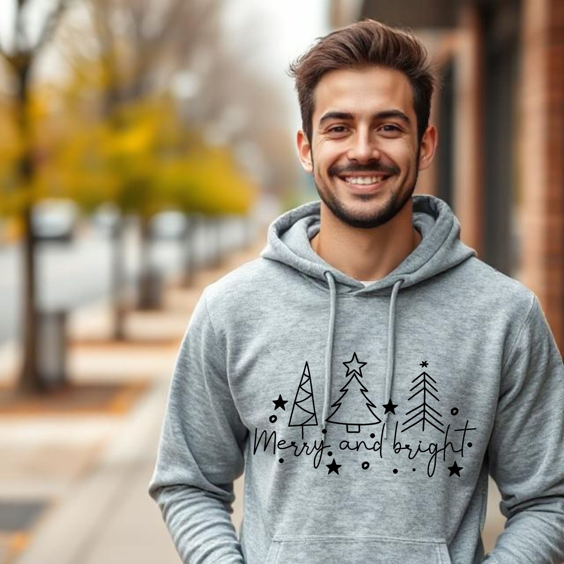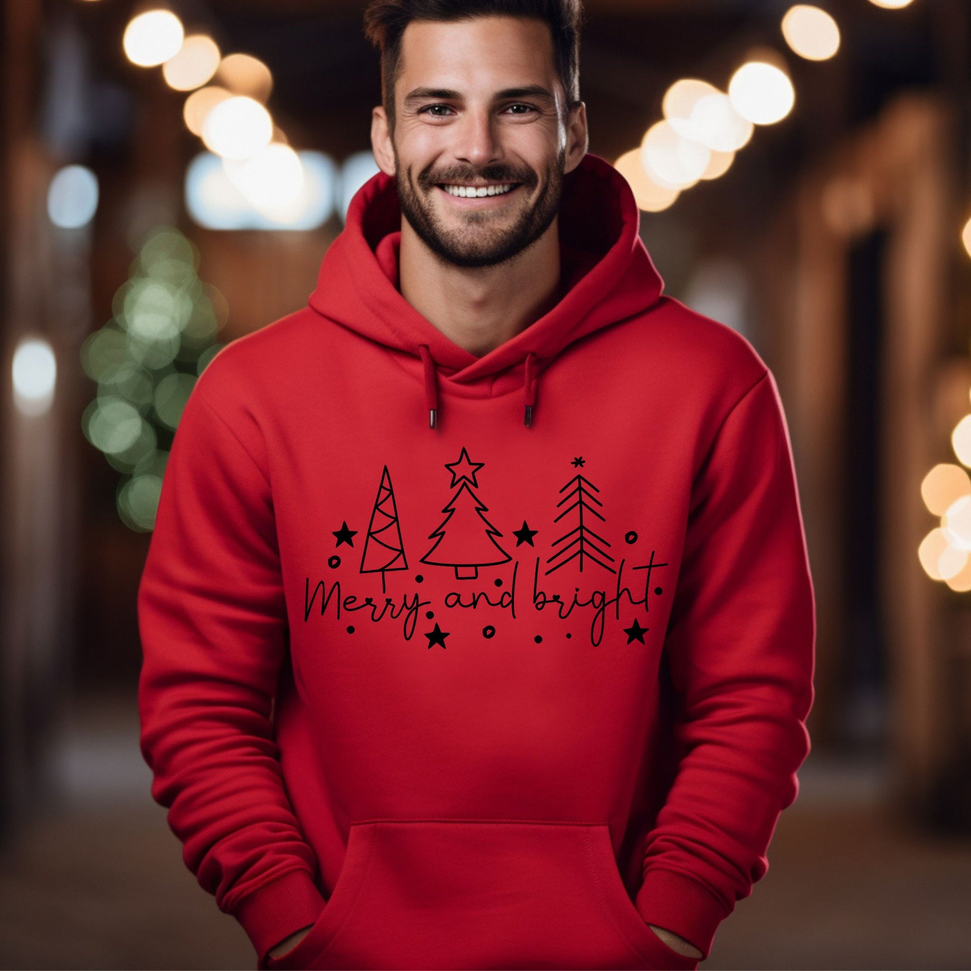 Christmas Tree Line Drawing Hoodie Merry and Bright Sweatshirt Christmas Shirt Festive Holiday Hoodie