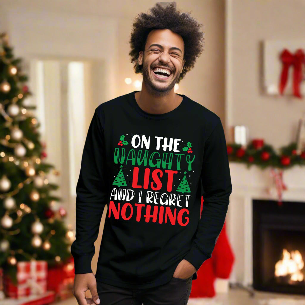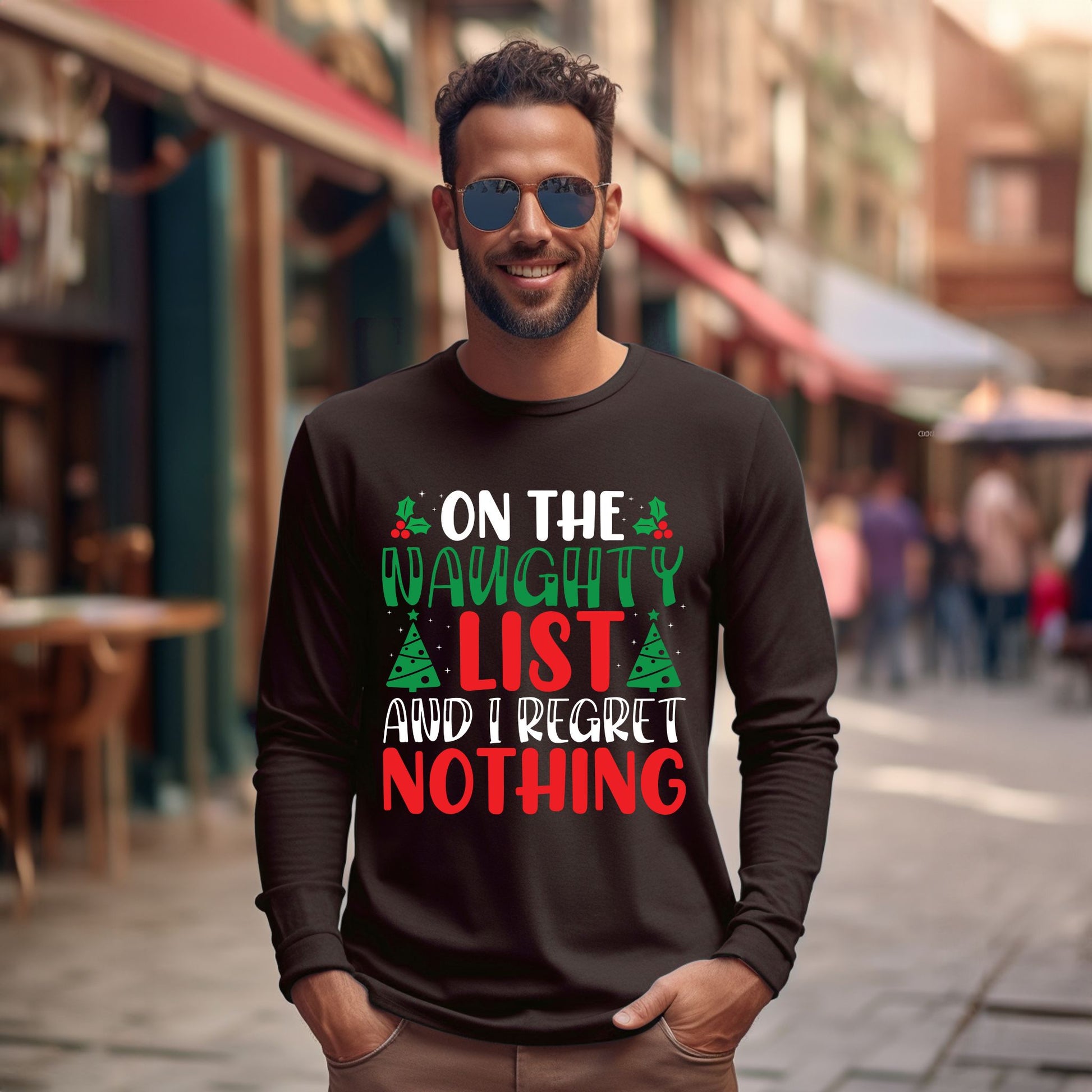 Christmas TShirt On The Naughty List And I Regret Nothing Christmas Tee Long Sleeve Tee