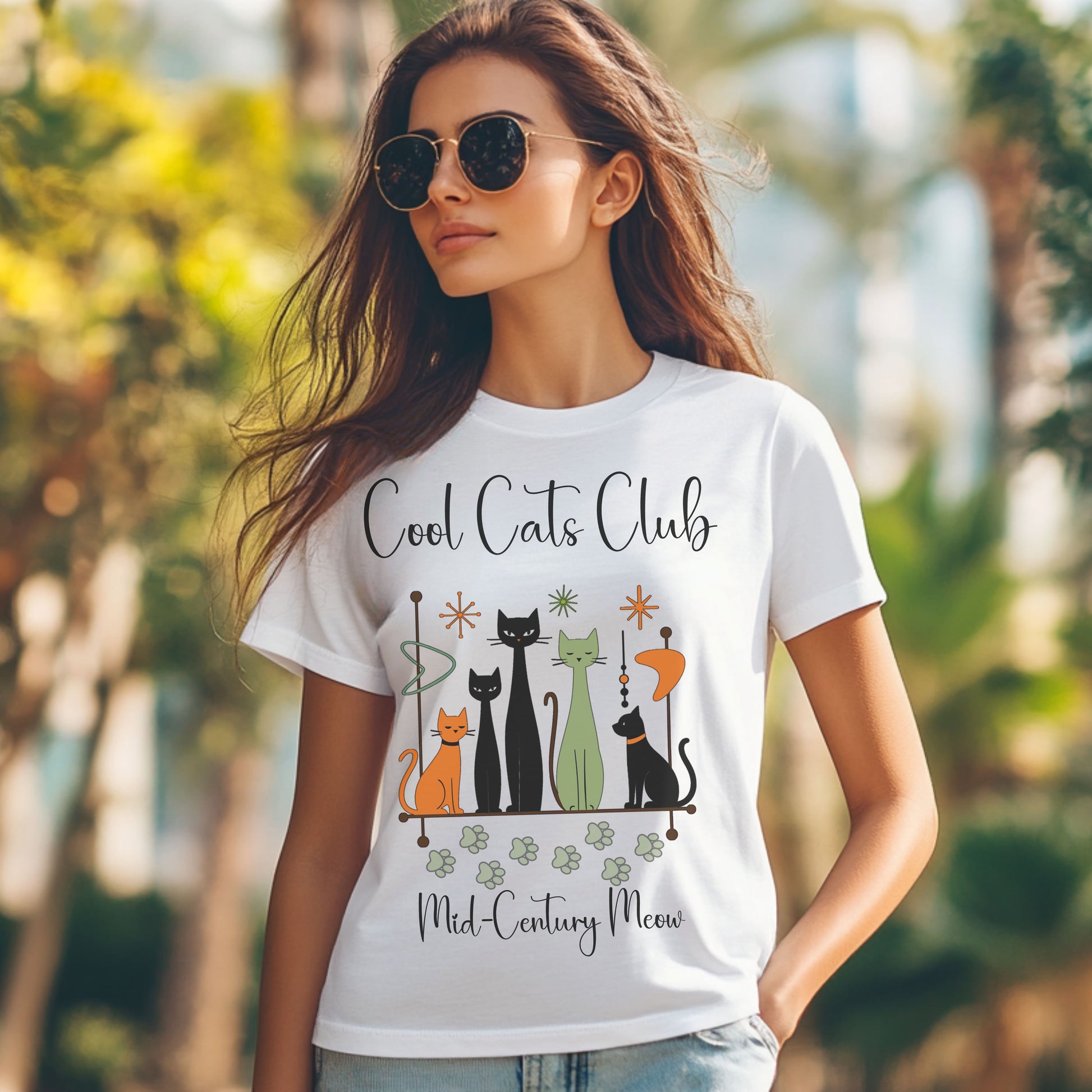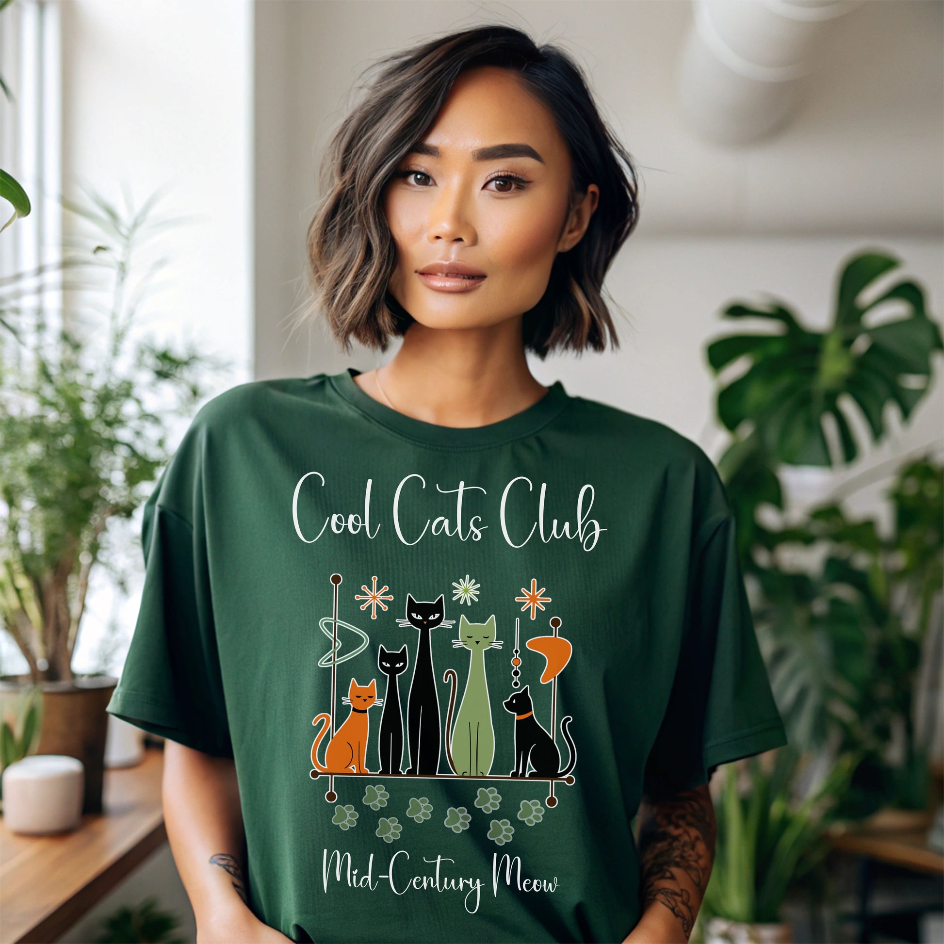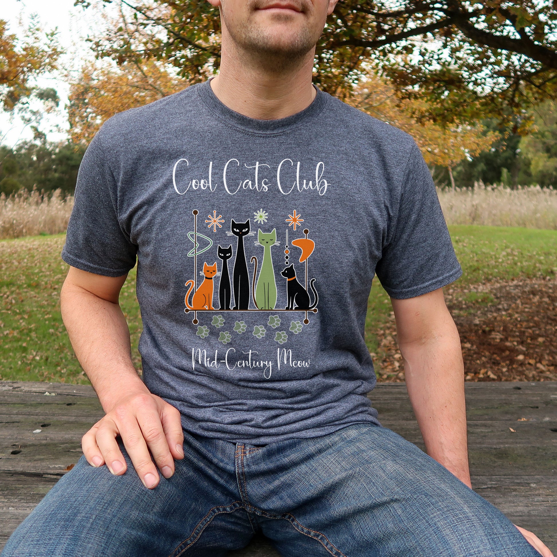 Cool Cats Club T-Shirt – Mid-Century Modern Cat Lover Tee, Retro Atomic Style Shirt for Vintage Aesthetic Fans