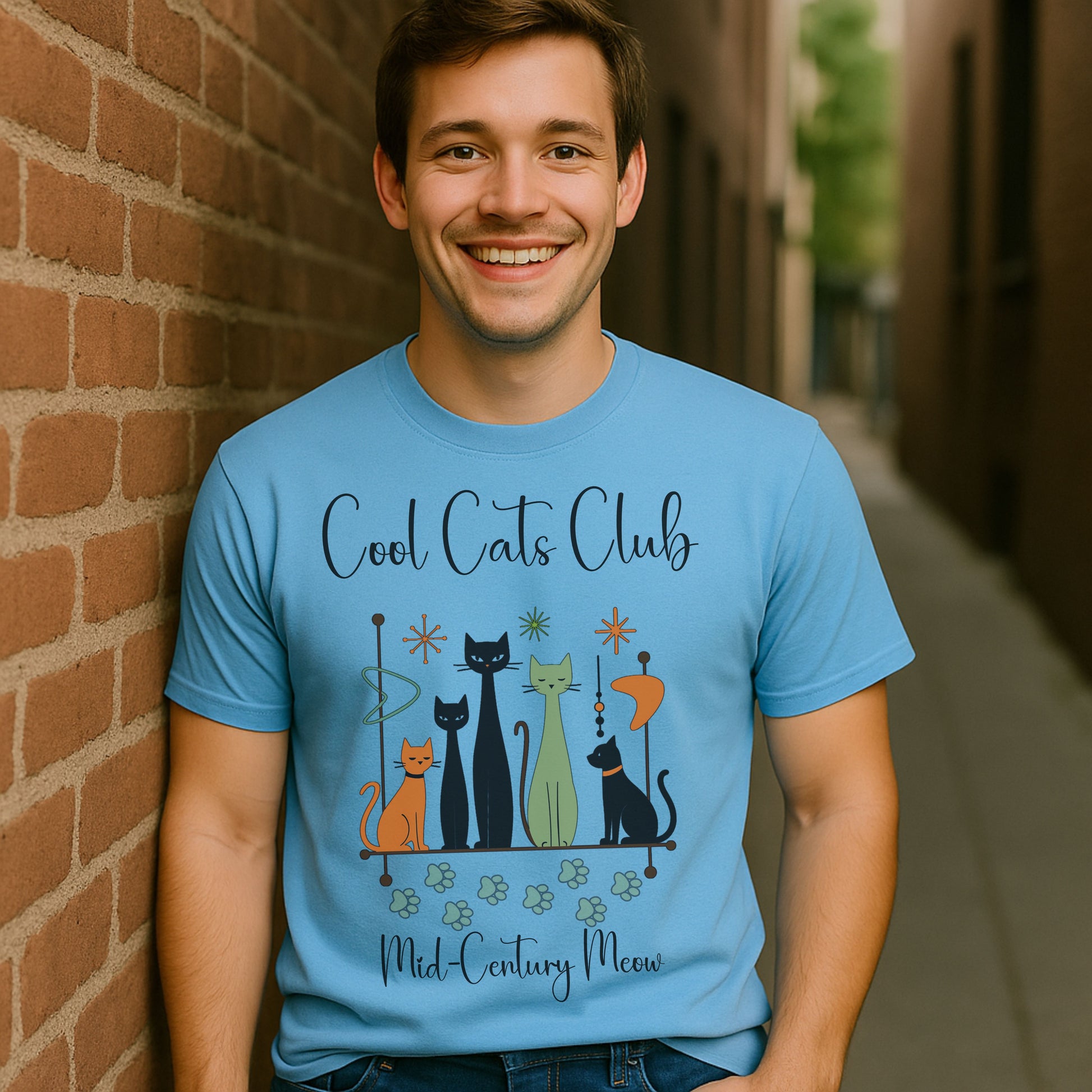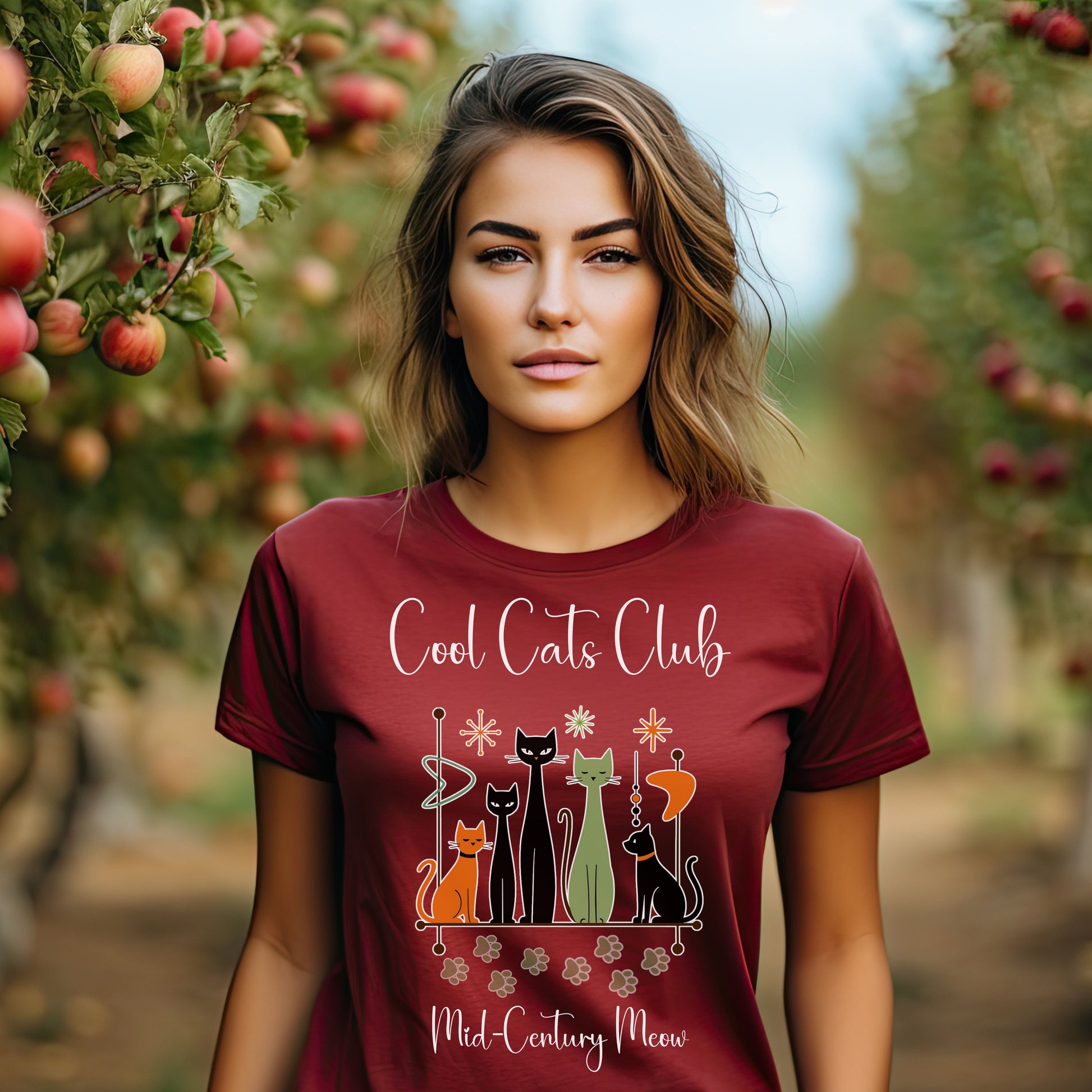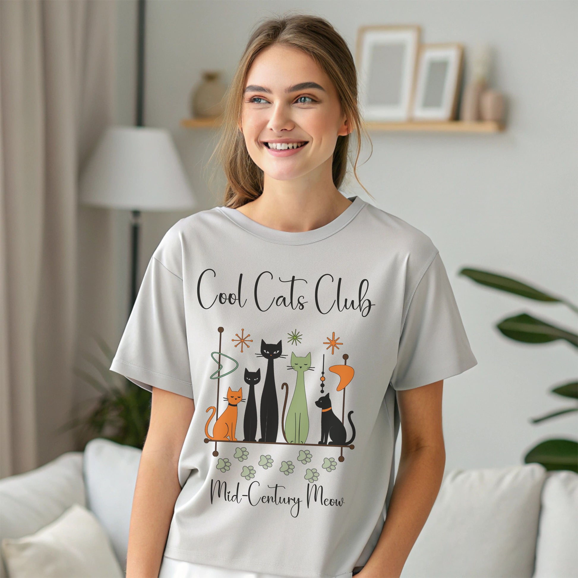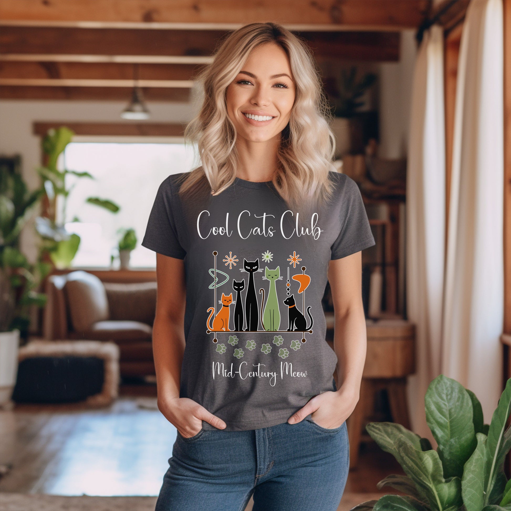 Cool Cats Club T-Shirt – Mid-Century Modern Cat Lover Tee, Retro Atomic Style Shirt for Vintage Aesthetic Fans