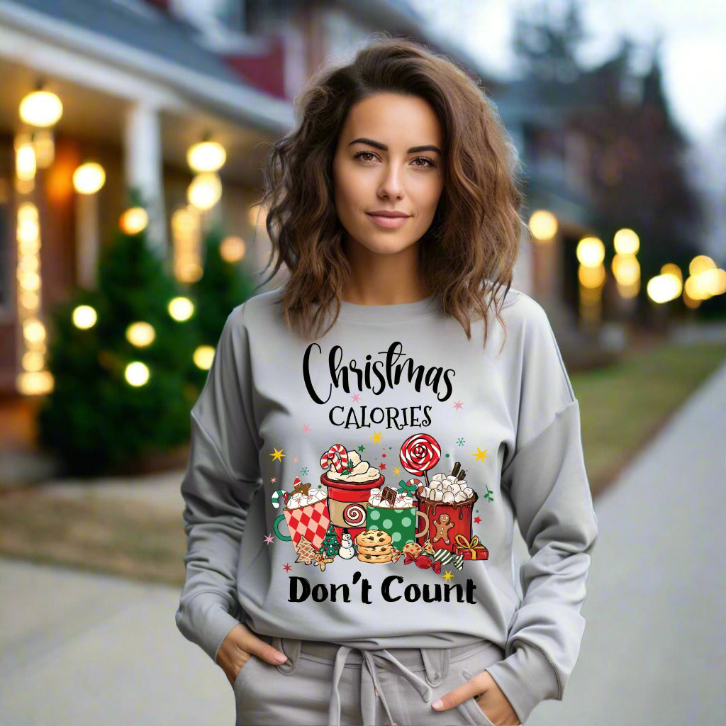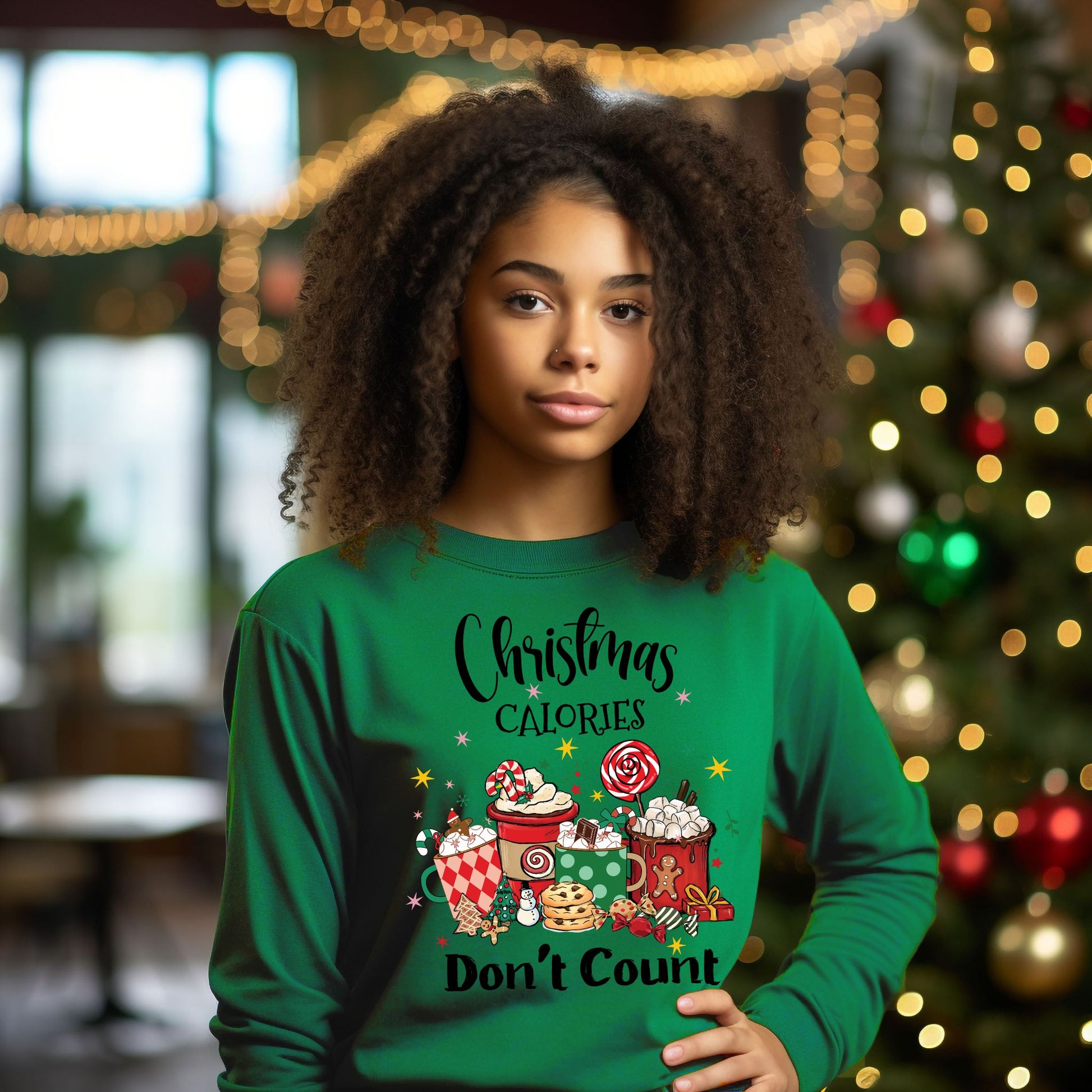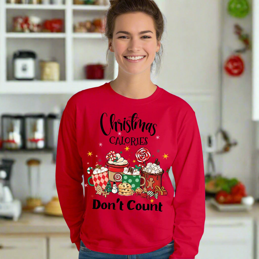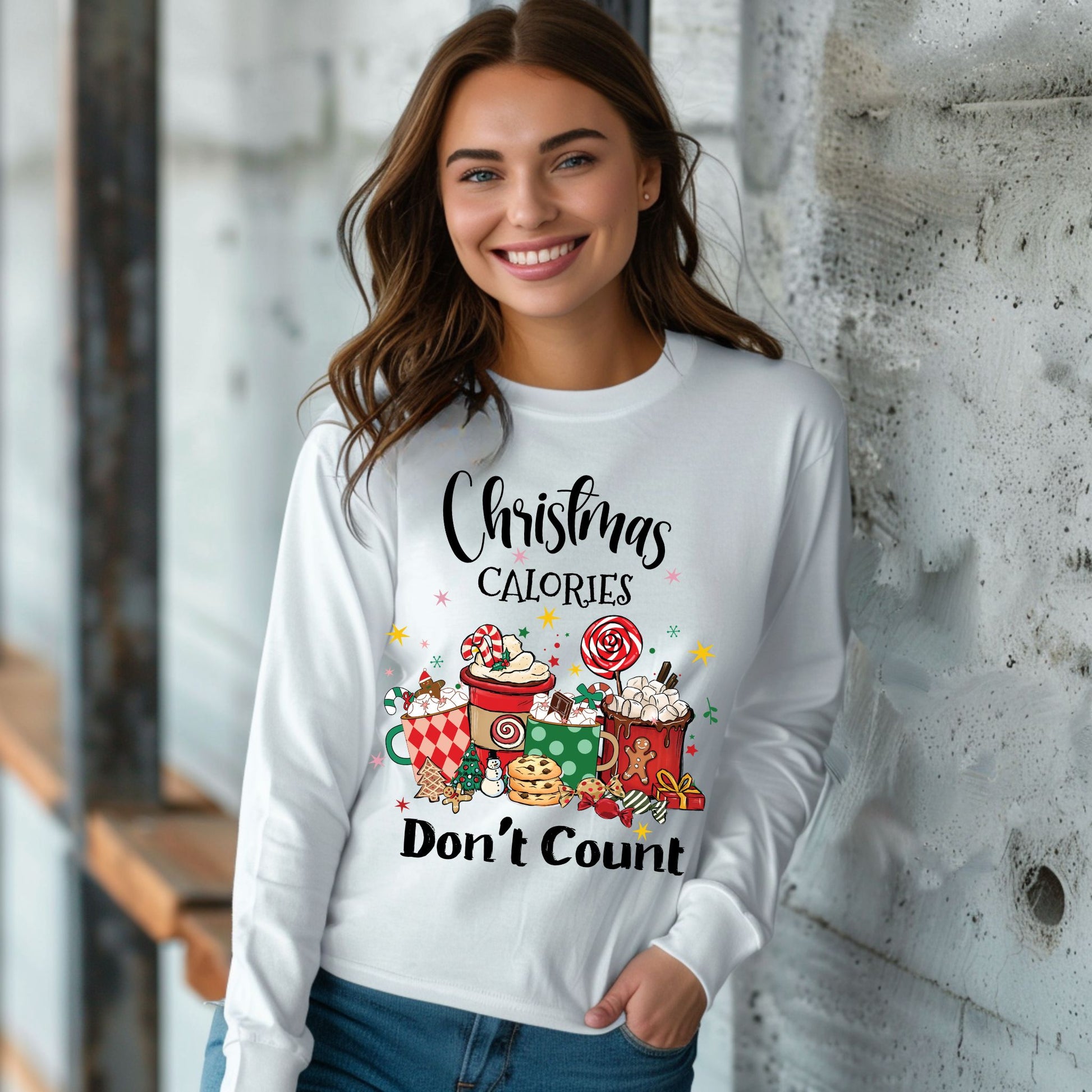 Christmas Calories Don't Count T-Shirt, Funny Christmas Tee Holiday Shirt Long Sleeve Tee