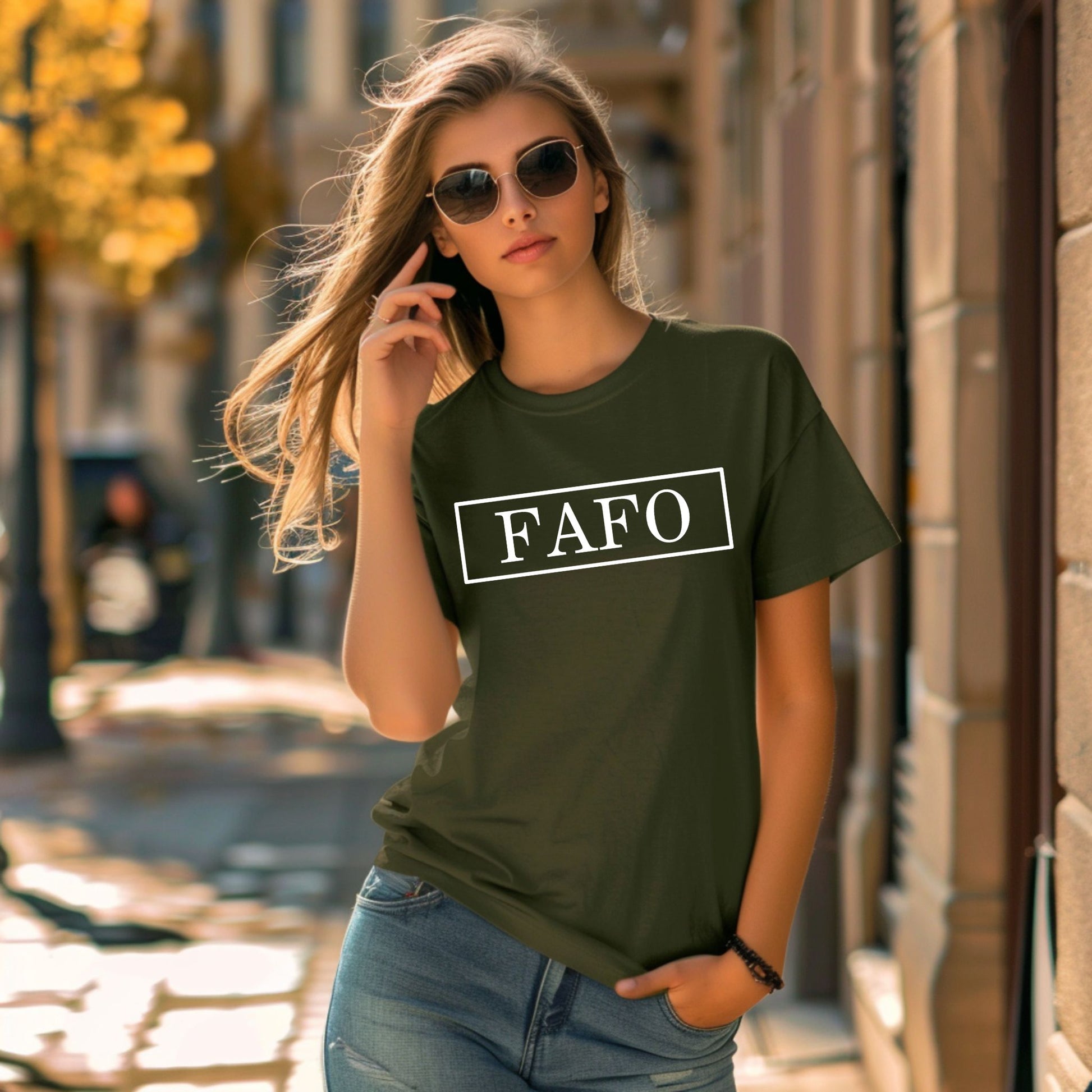 Make a fearless statement with the FAFO T-Shirt, featuring a bold rectangular graphic emblazoned with the powerful acronym "FAFO." Whether you’re expressing resilience, independence, or unapologetic confidence, this graphic tee lets you show your personality. Made from high-quality, soft cotton, this shirt is perfect for casual outings, social gatherings, or standing your ground.