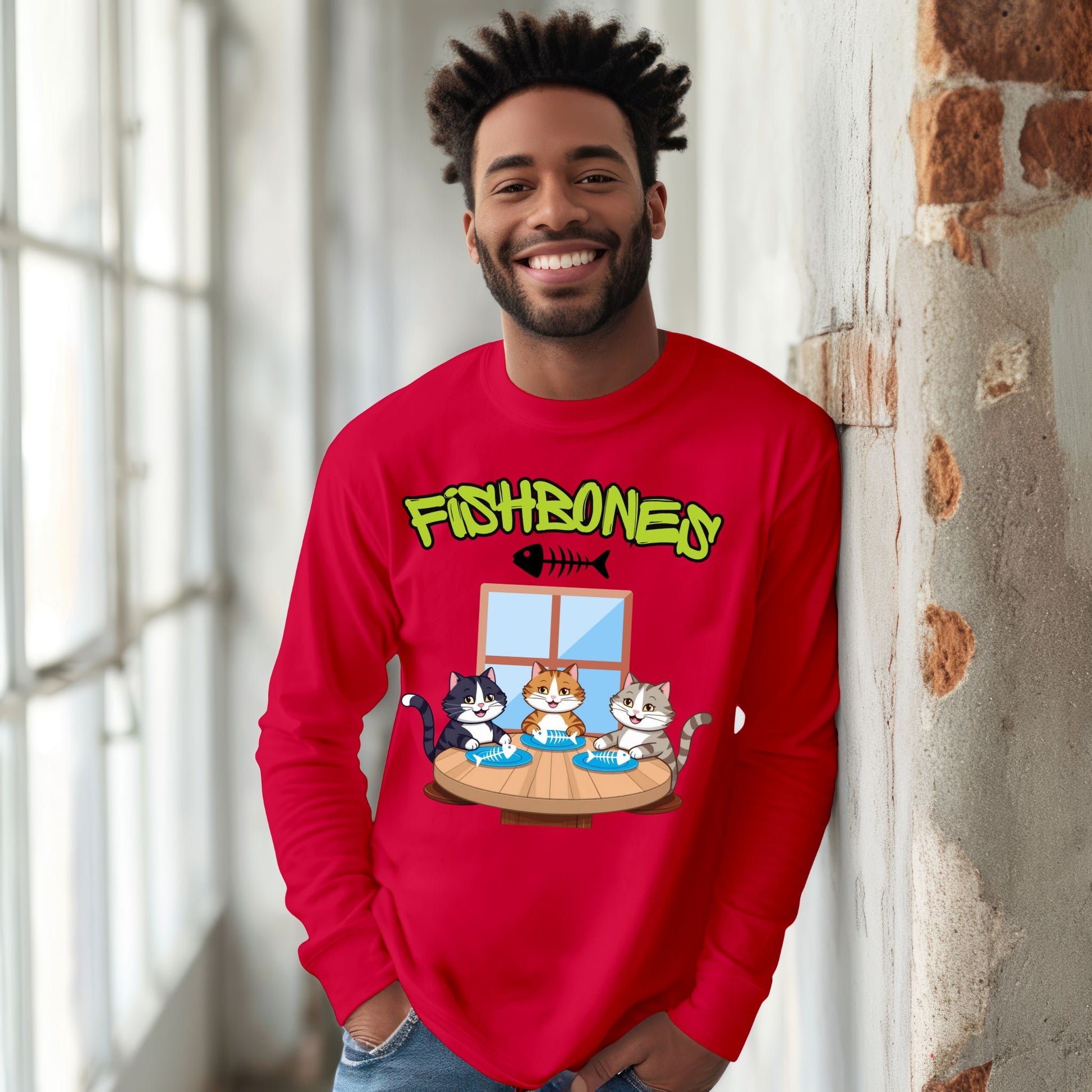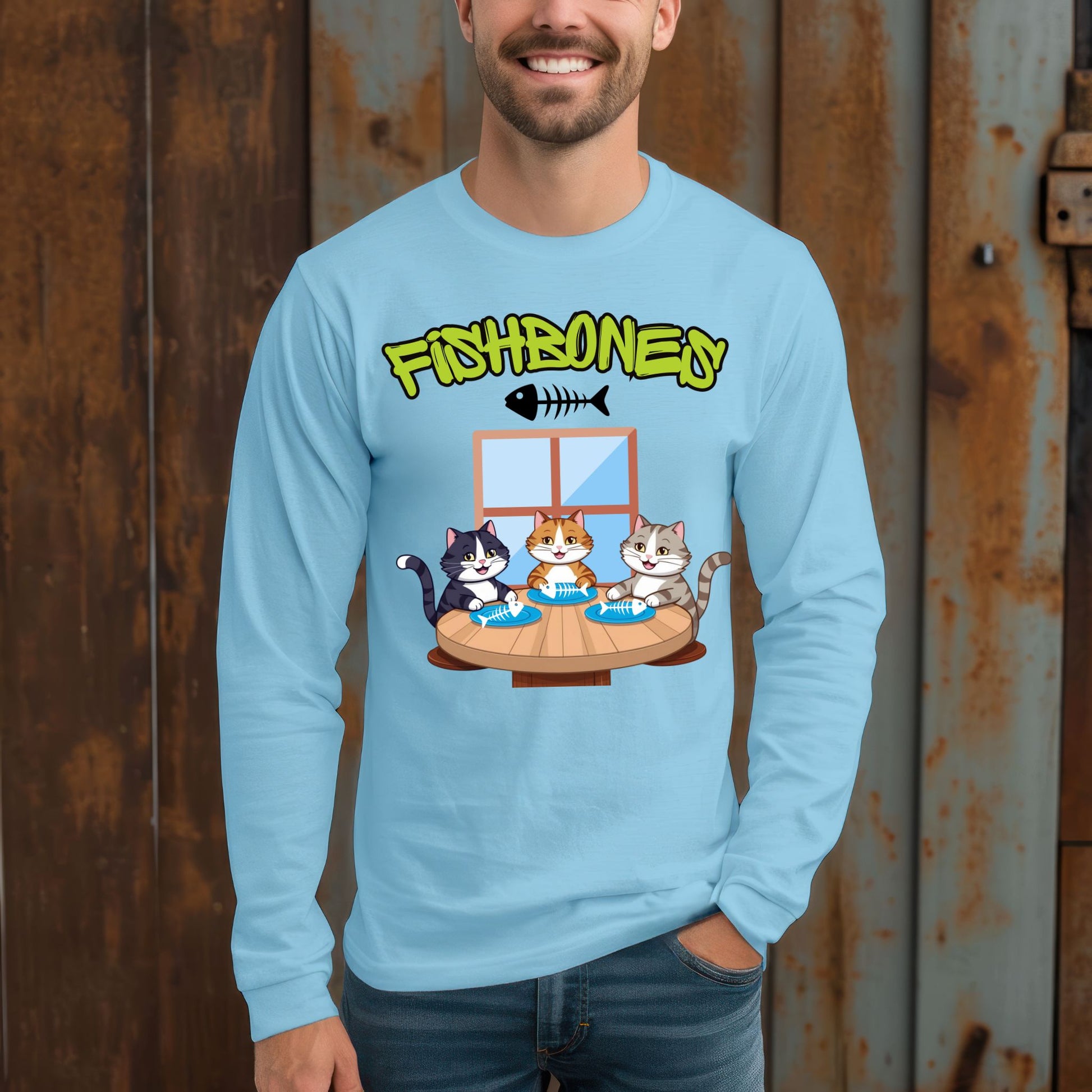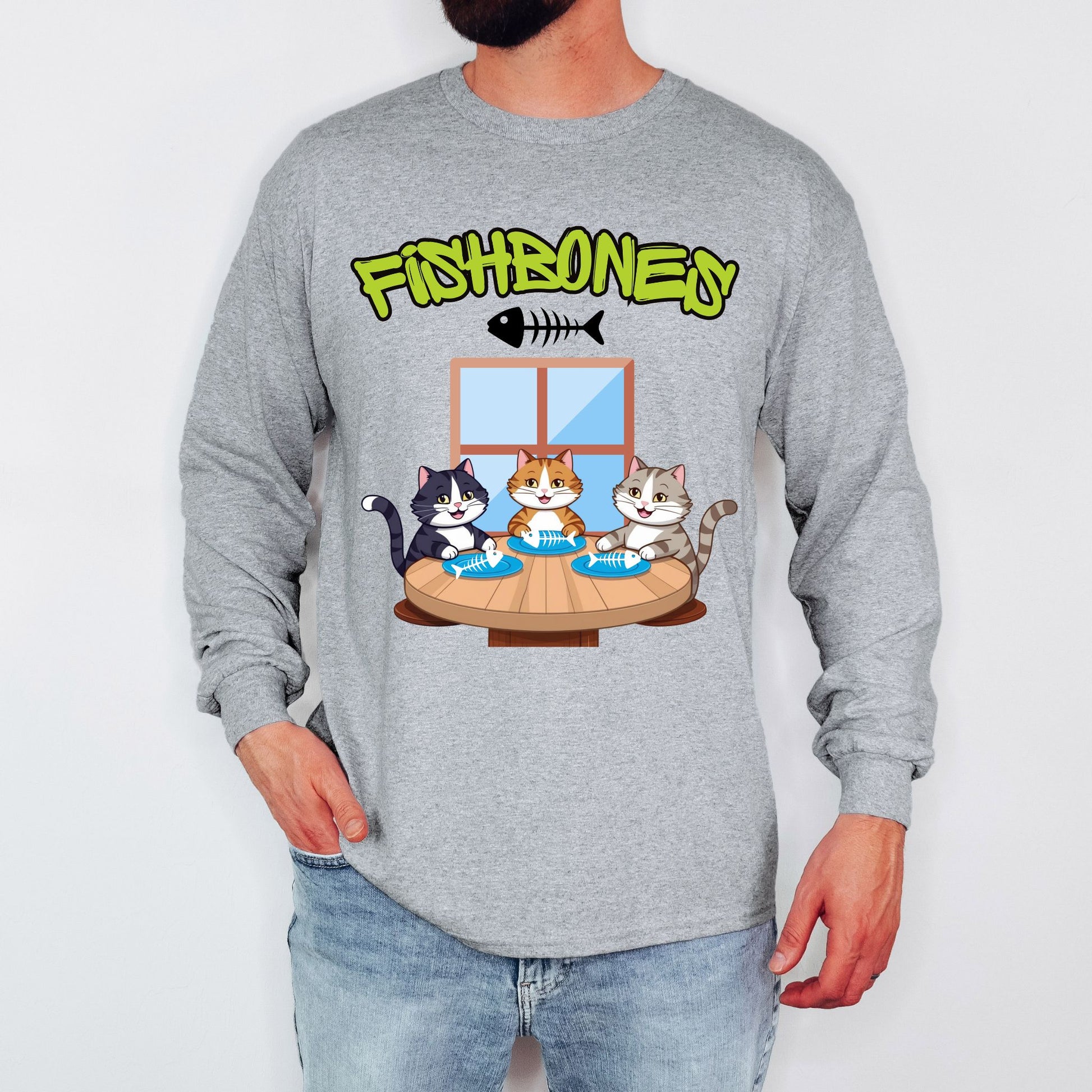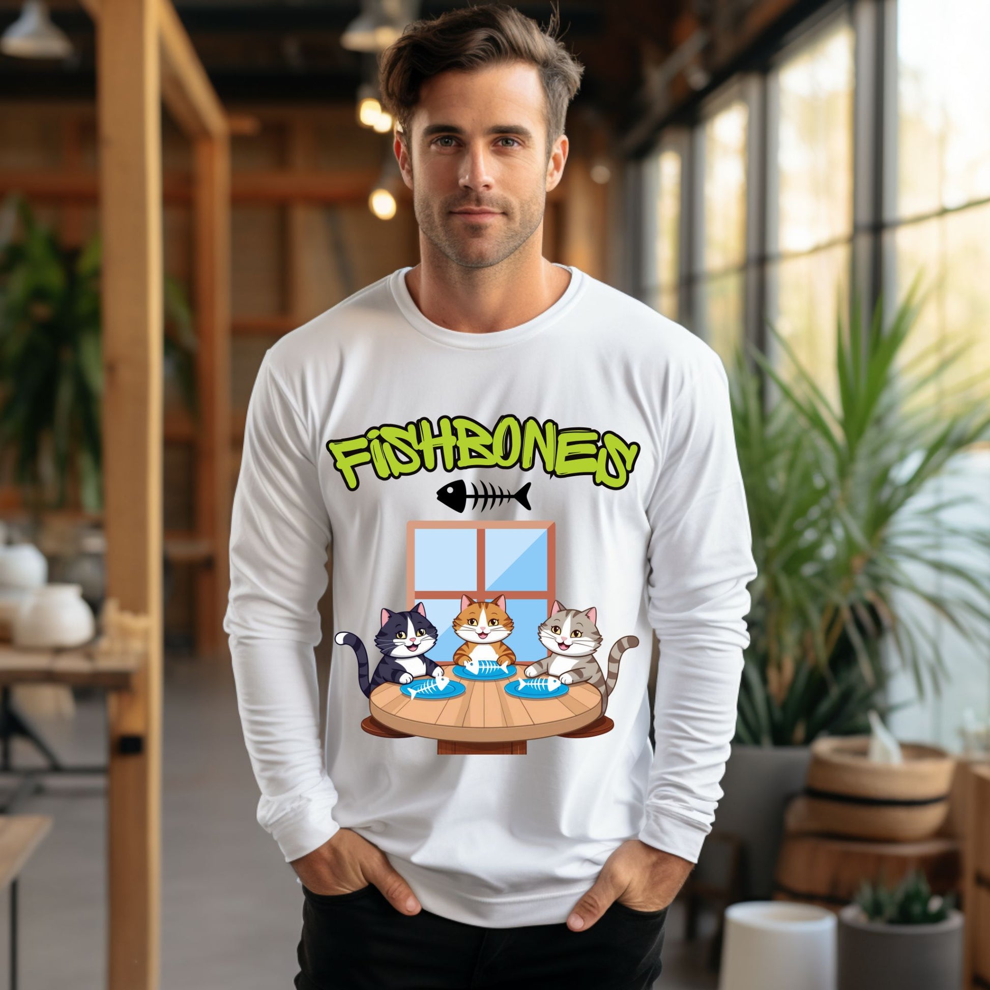 Fishbones Cat Diner T-Shirt Fun Graphic Tee for Cat Lovers & Foodies Long Sleeve Tee