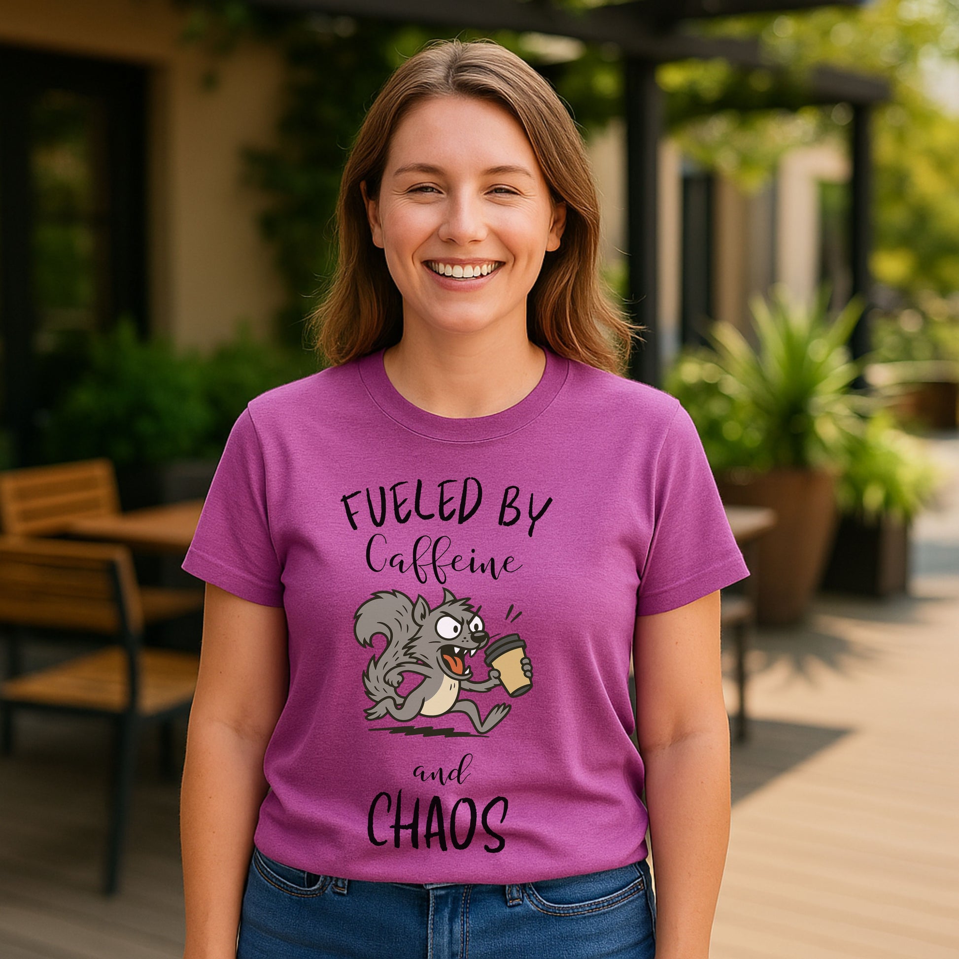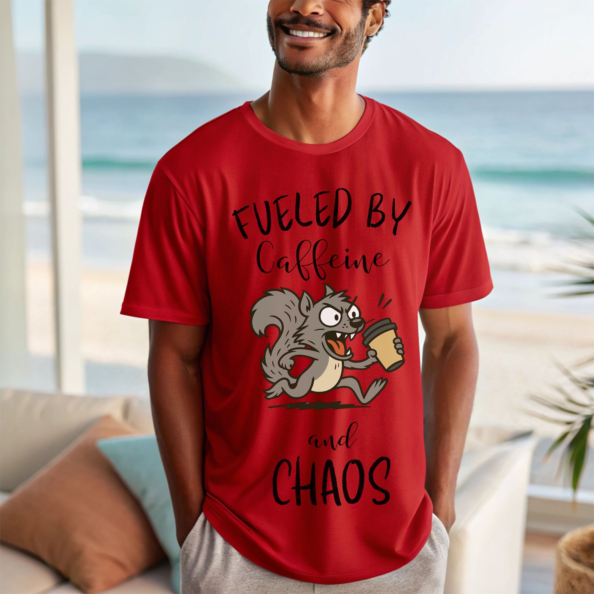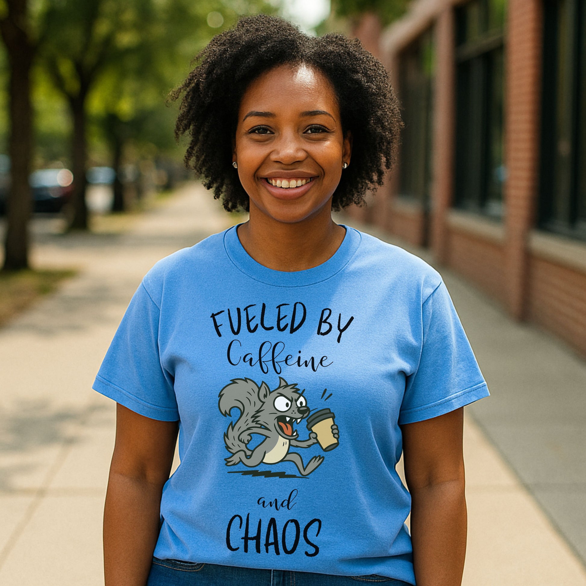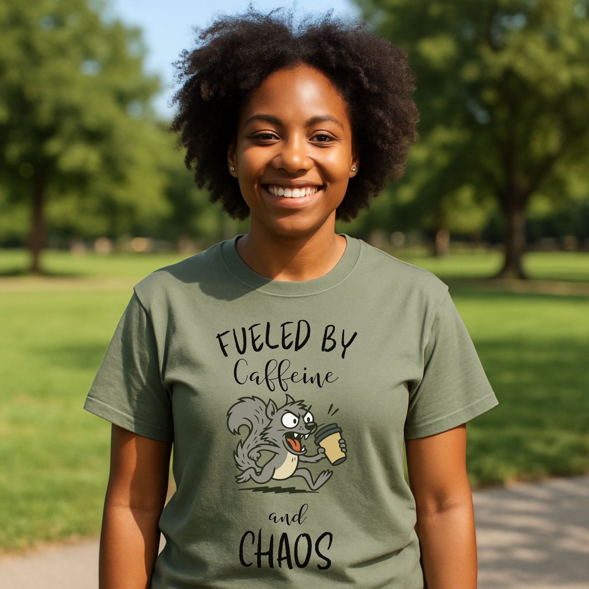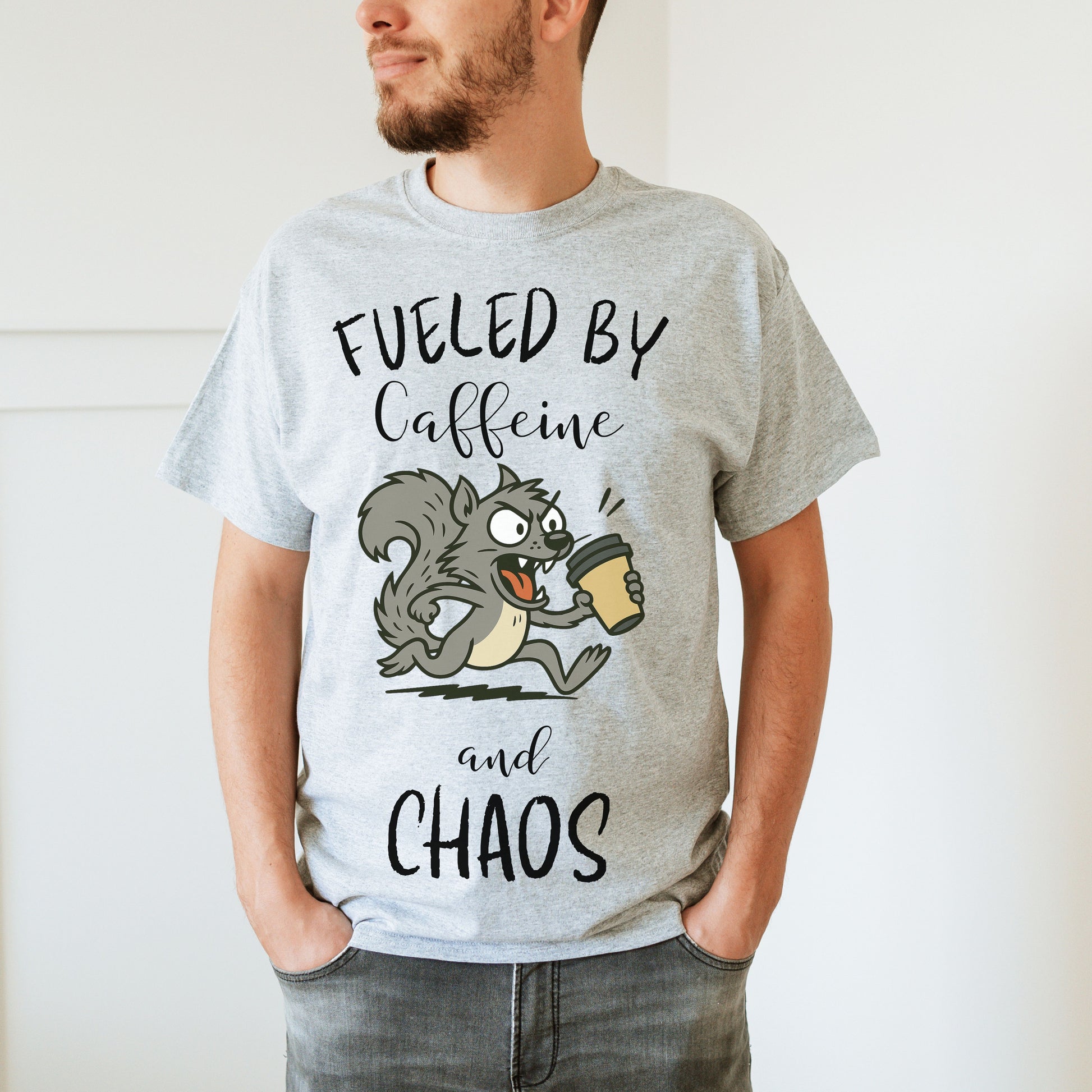 Fueled by Caffeine and Chaos Squirrel T-Shirt – Funny Coffee Animal Tee