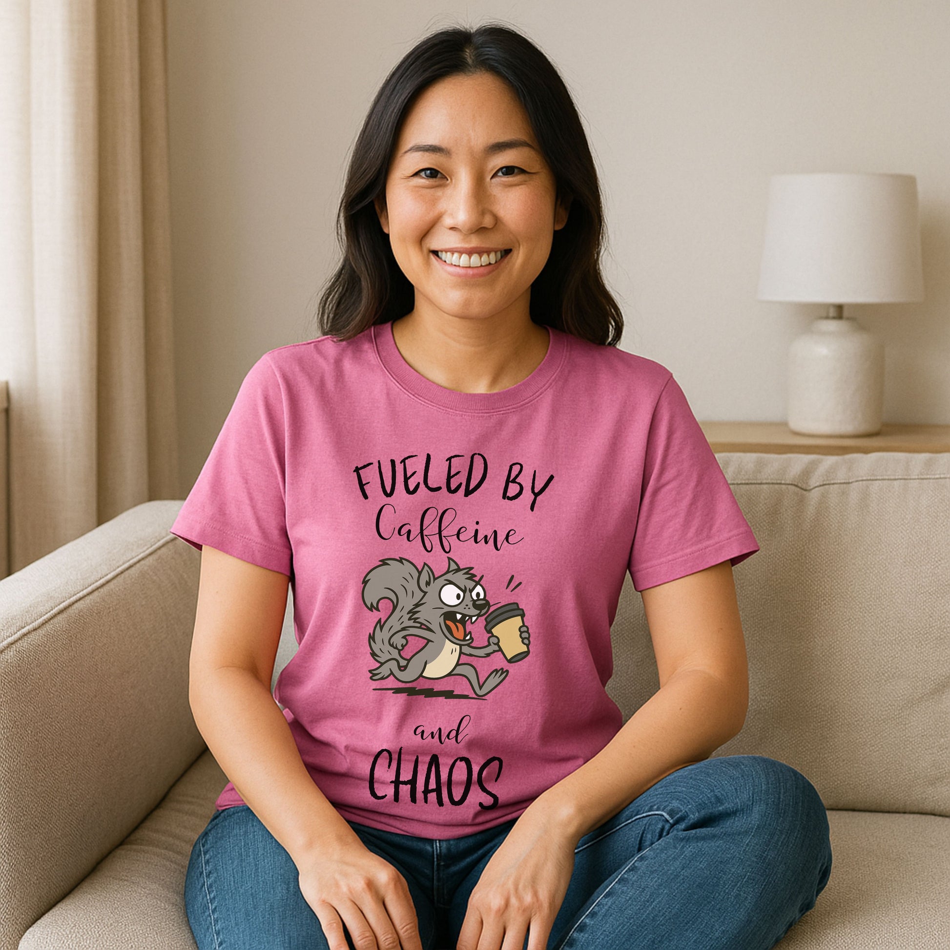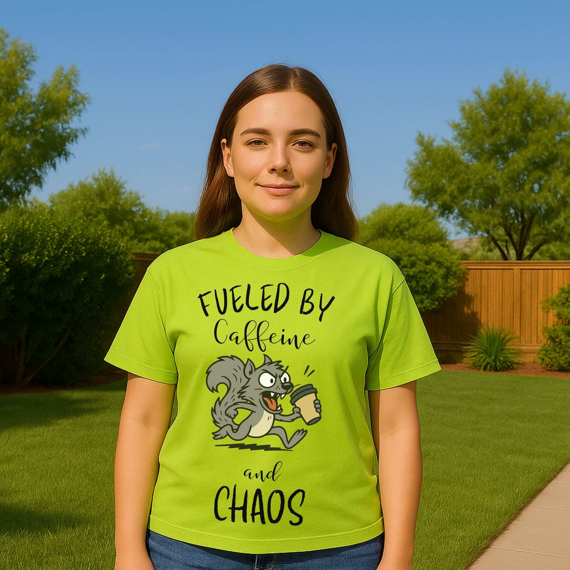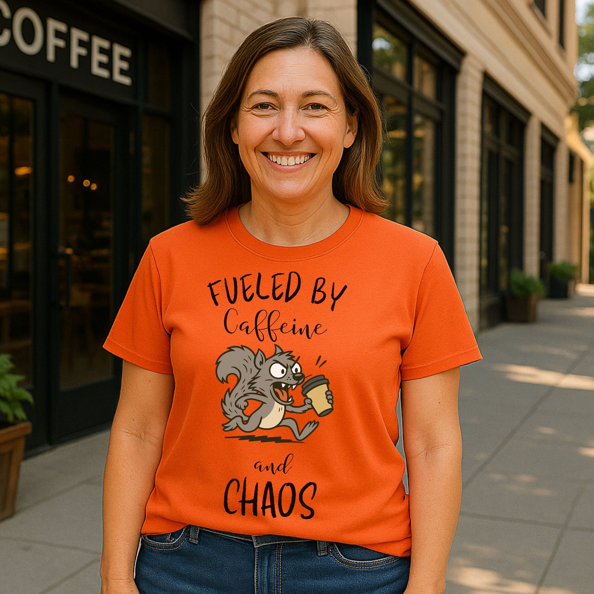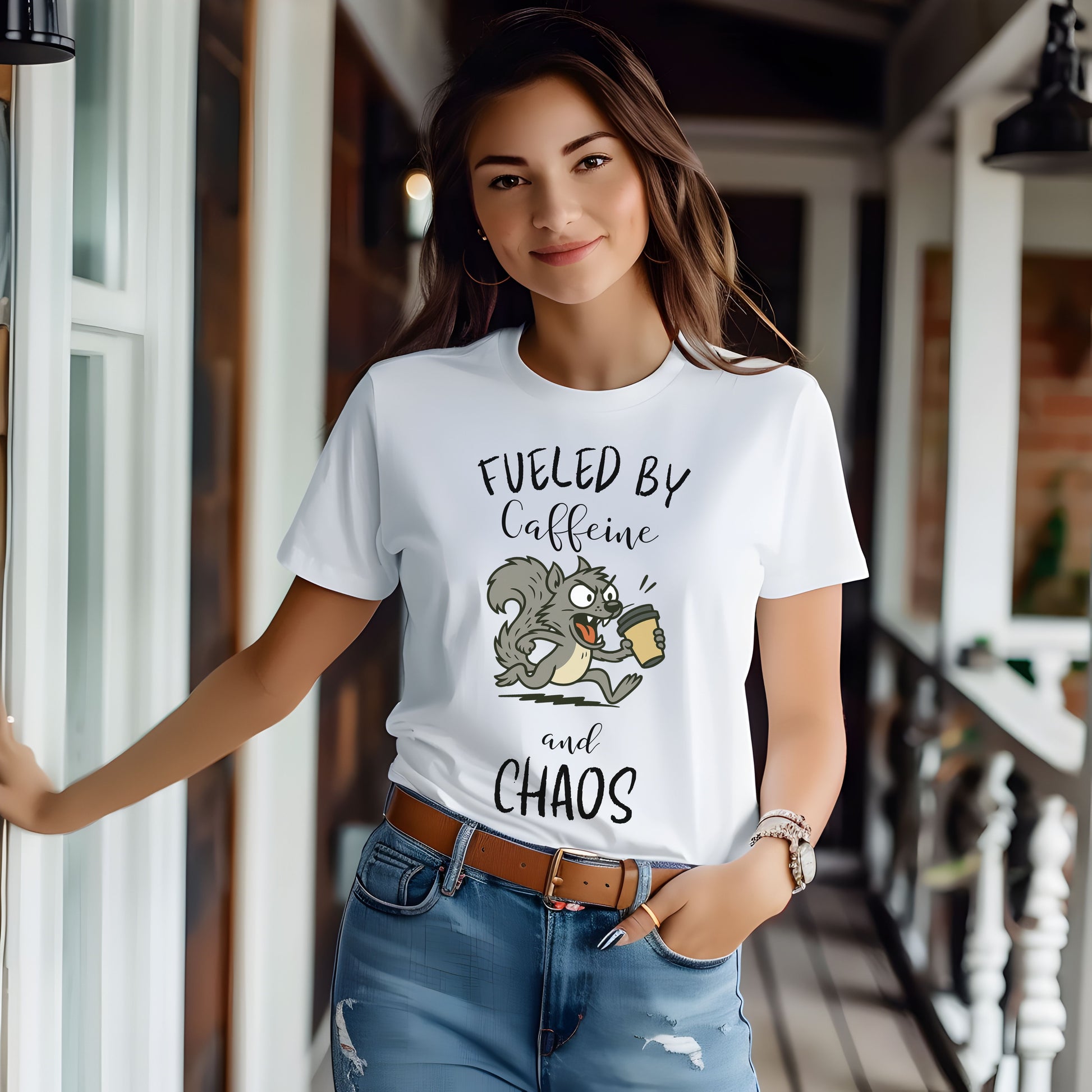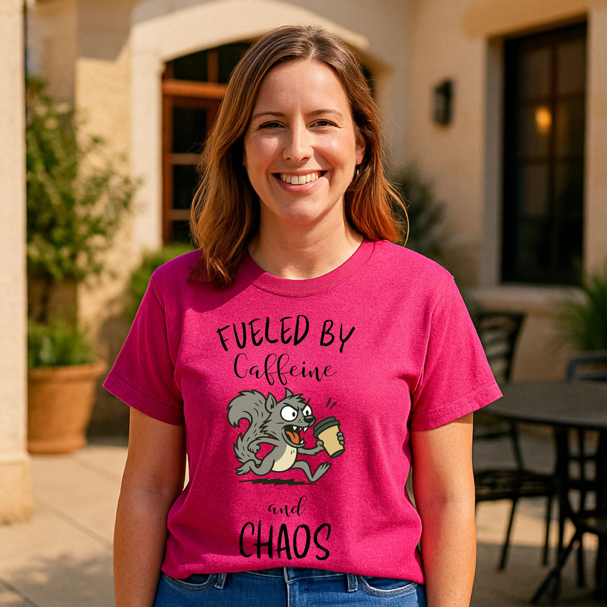 Fueled by Caffeine and Chaos Squirrel T-Shirt – Funny Coffee Animal Tee