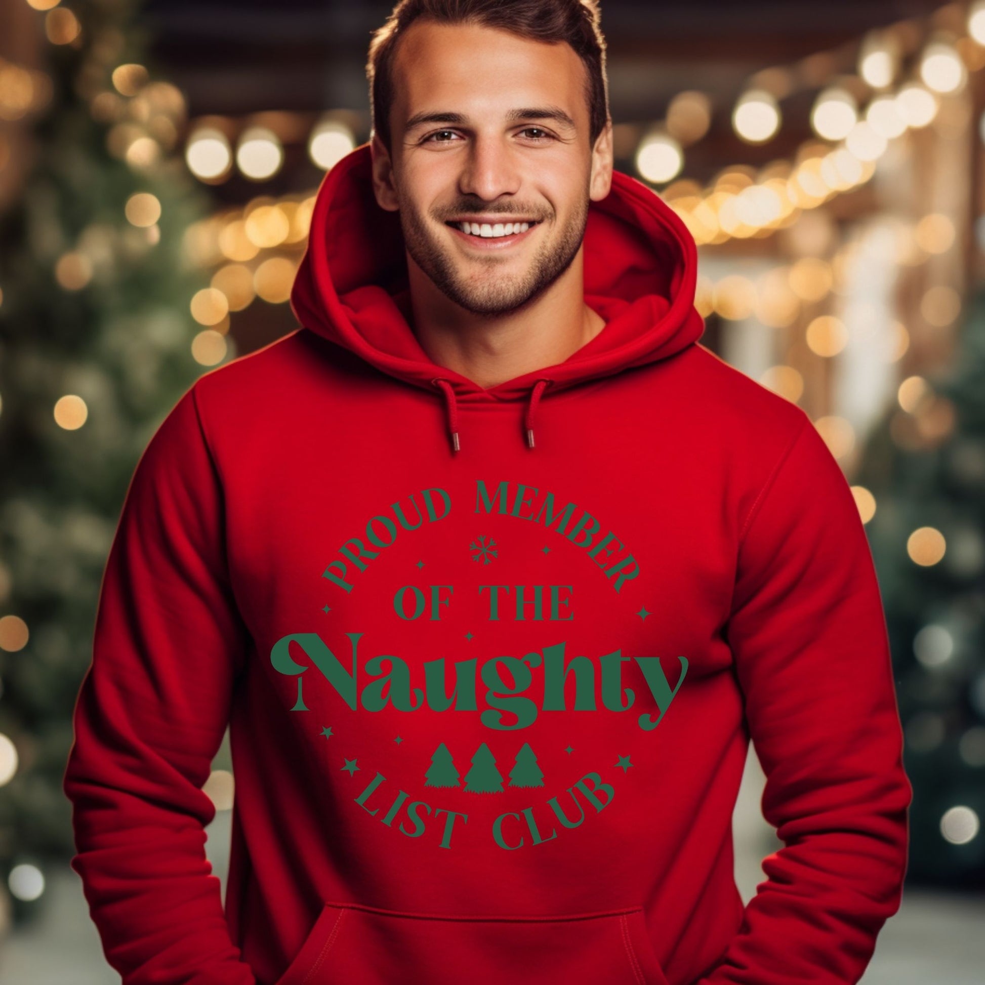 Get into the holiday spirit with our funny Christmas hoodie featuring the 'Proud Member of the Naughty List Club' design. Perfect for men and women, this cozy hoodie makes a festive gift or fun addition to your winter wardrobe. Shop now for holiday cheer and unique Christmas apparel.