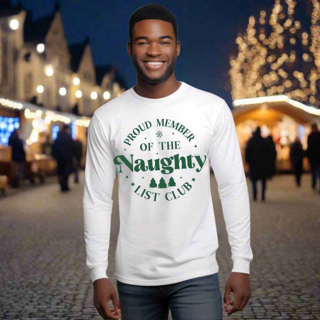 Funny Christmas TShirt Naughty List Club T-Shirt Holiday Tee Long Sleeve