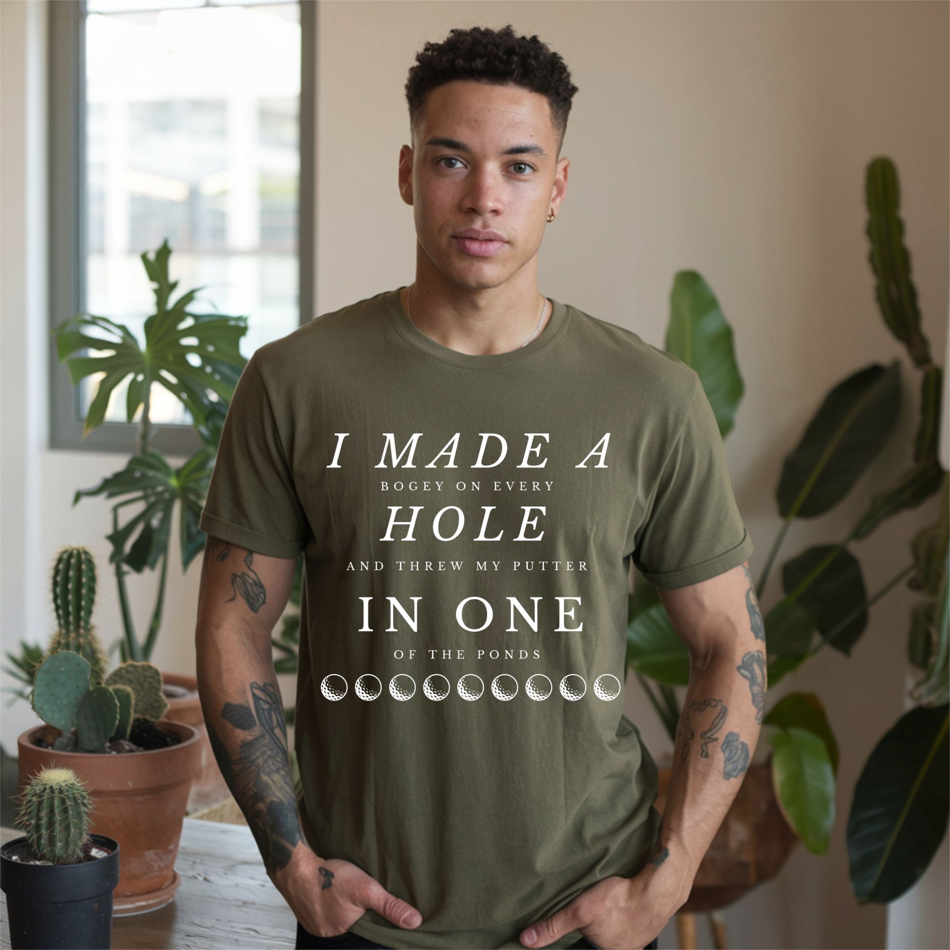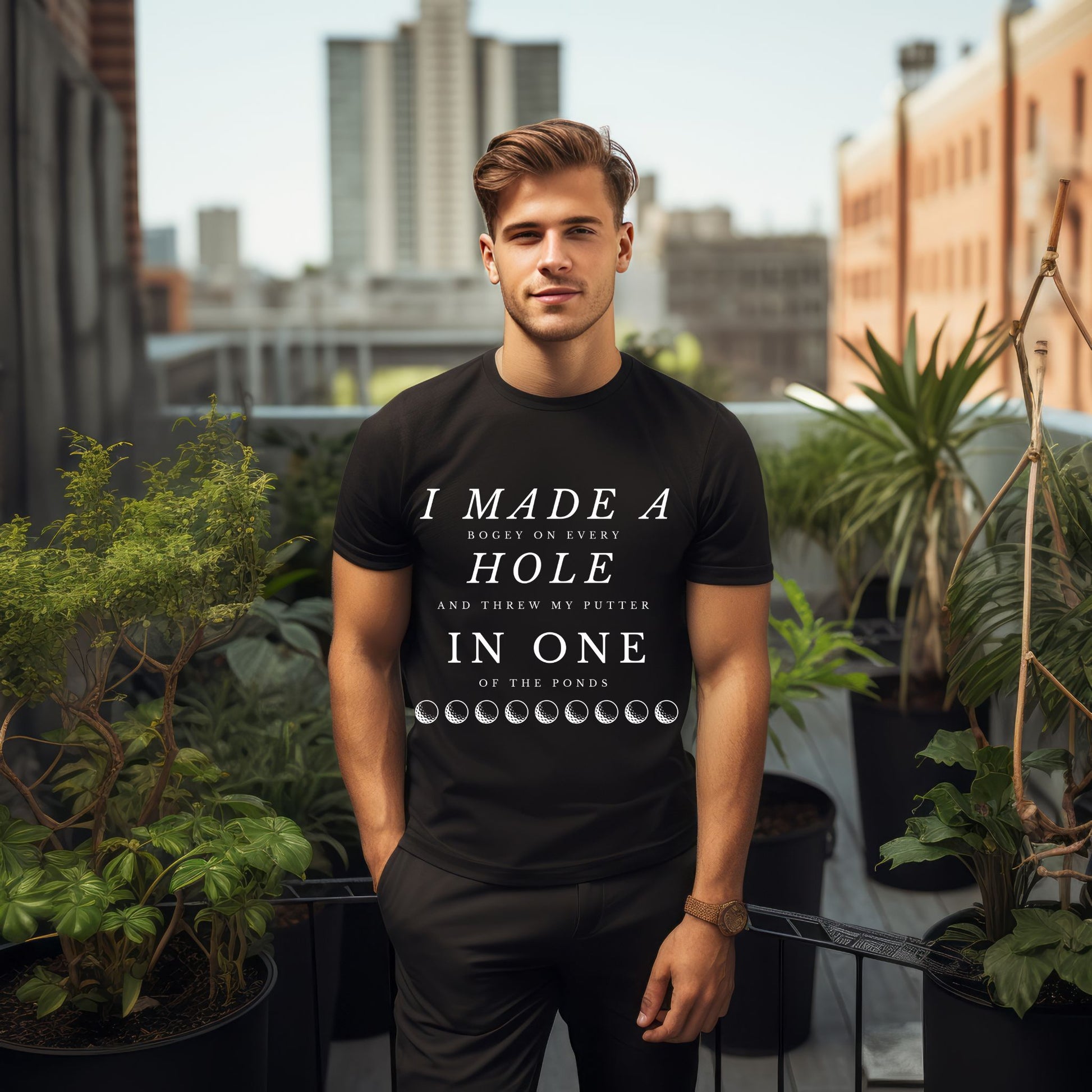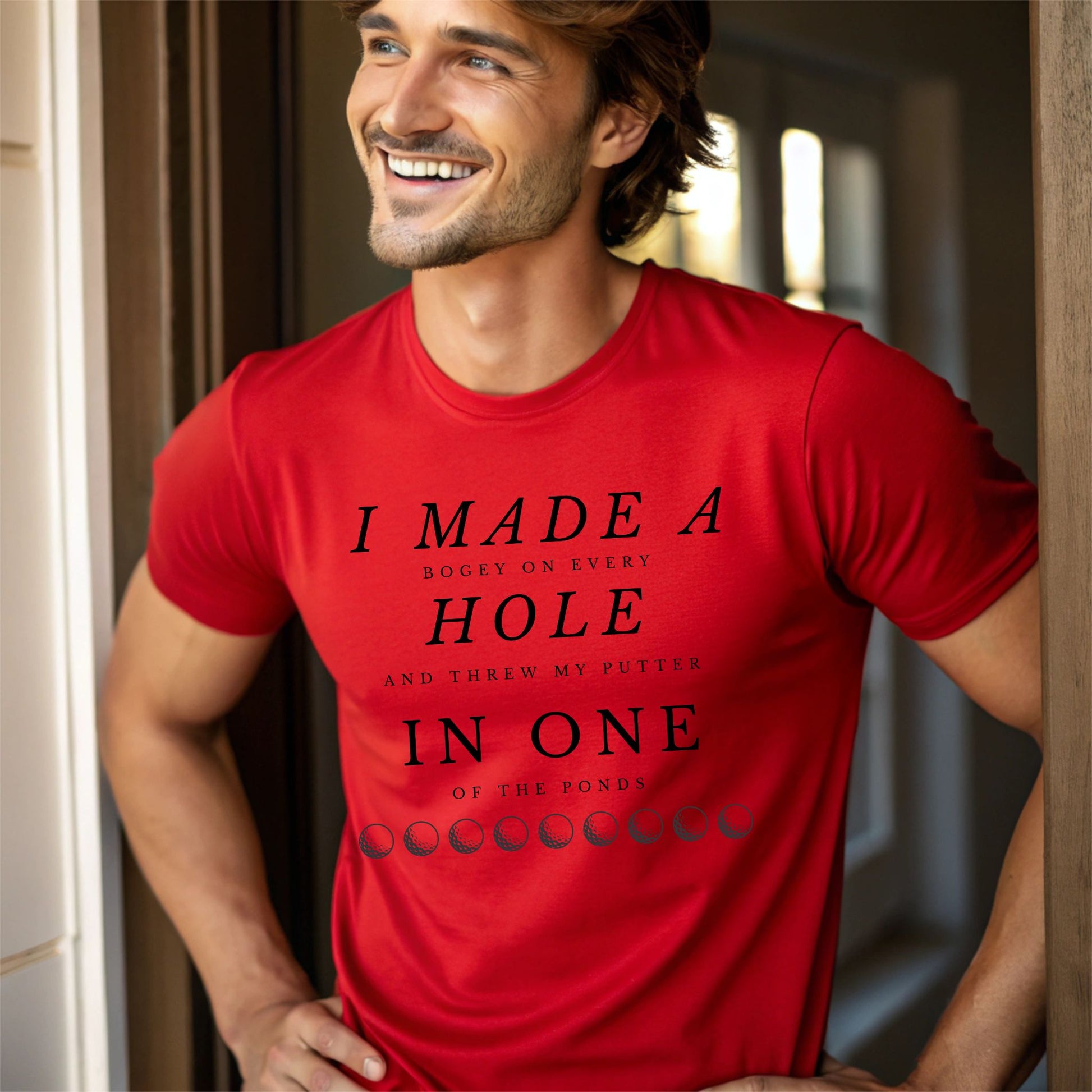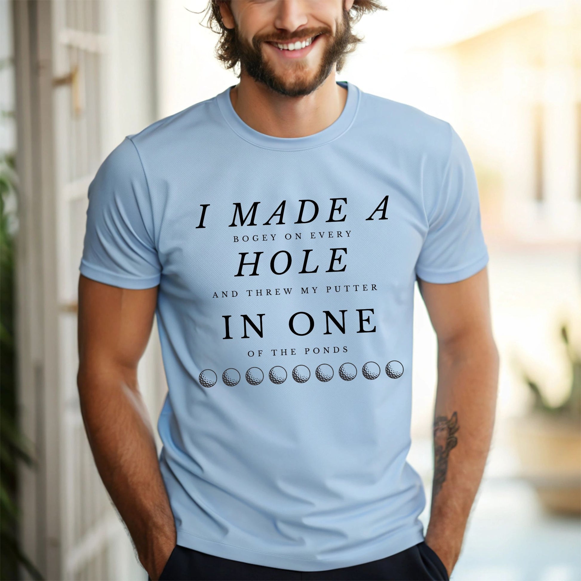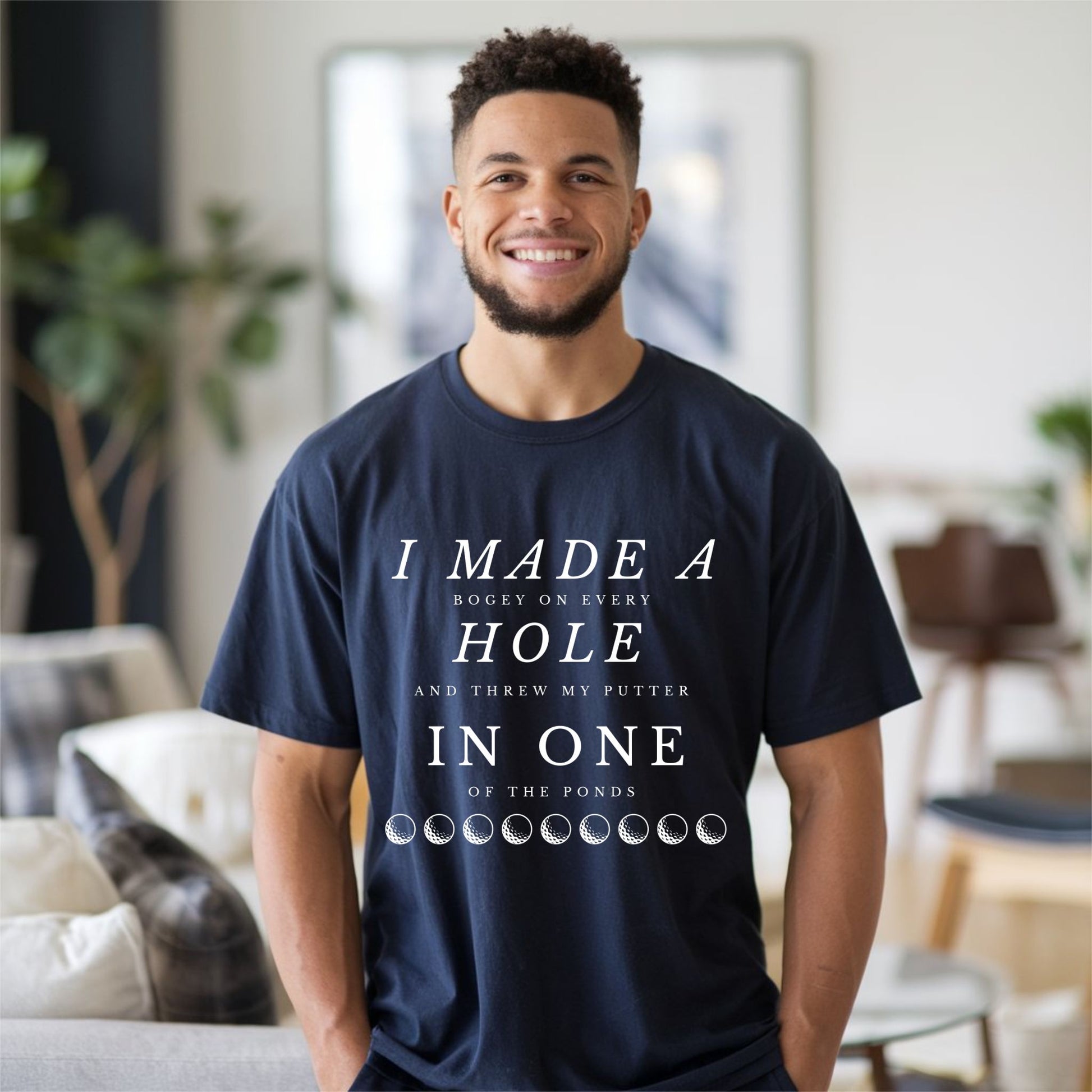Tee off with a laugh in this hilarious golf t-shirt that reads: "I Made a Bogey on Every Hole and Threw My Putter in One of the Ponds." Whether you're a weekend warrior or a seasoned slicer, this tee is perfect for golfers who know the struggle all too well. Ideal for casual rounds, clubhouse laughs, or as a funny gift for golf dads, buddies, or tournament prizes.