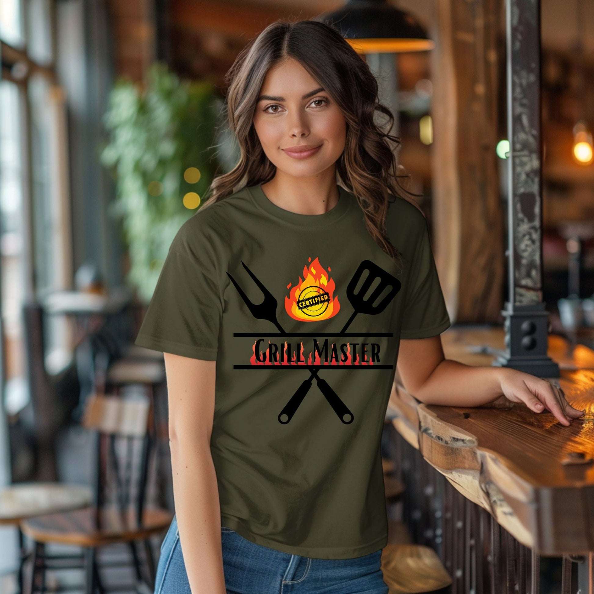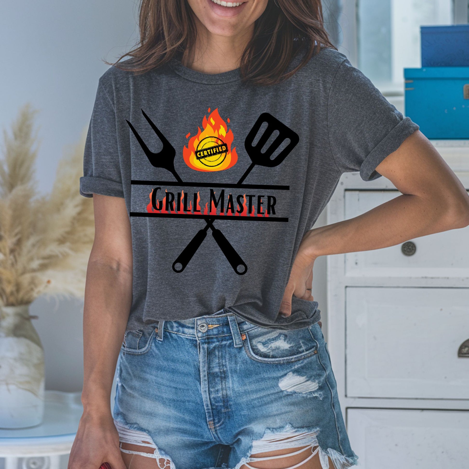 This T-Shirt featuring a graphic of flame with crossed grilling tools and the text Grillmaster exudes a fun and laid-back vibe, perfect for those who love grilling and BBQs. It is a great addition to a casual summer wardrobe and a must-have for backyard cookouts, Father's Day celebrations, and Fourth of July parties. Do you have a Certified Grillmaster in the family?? This would make the perfect gift!