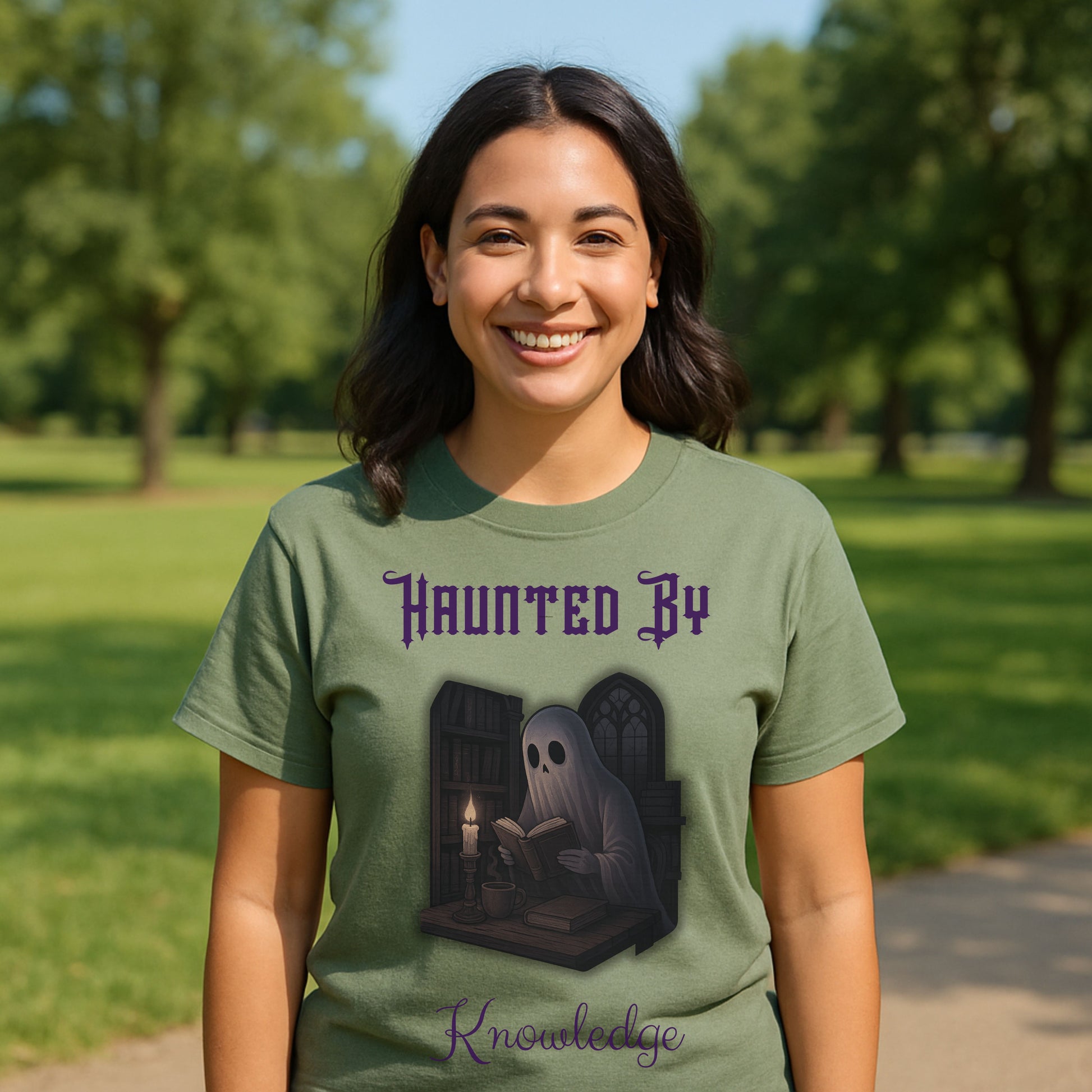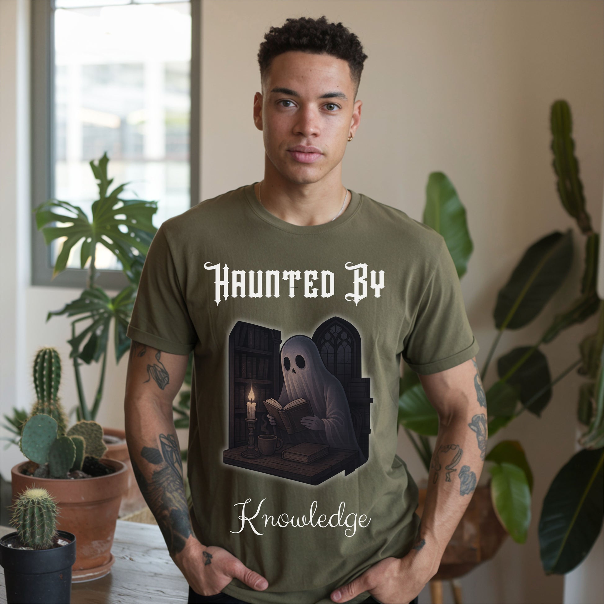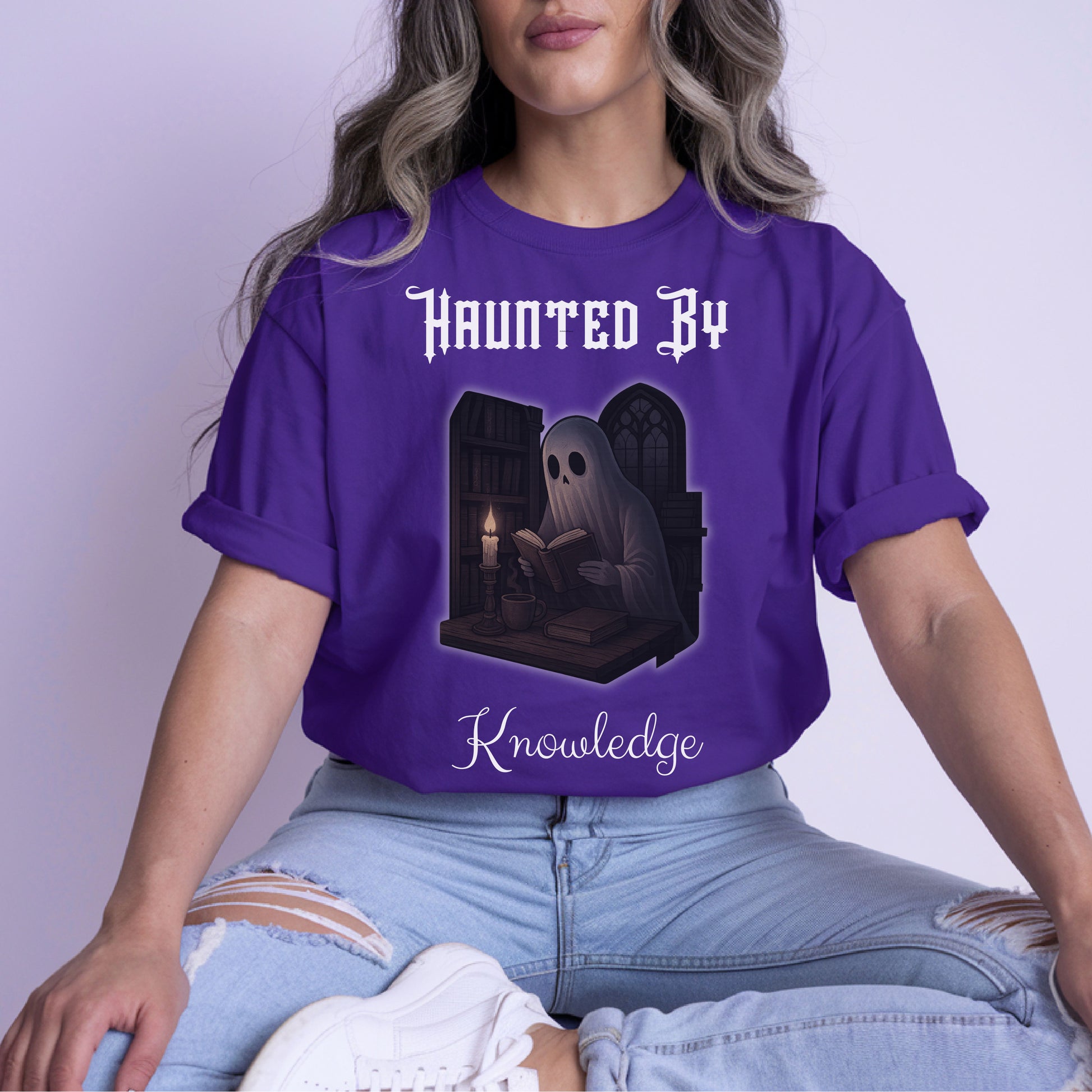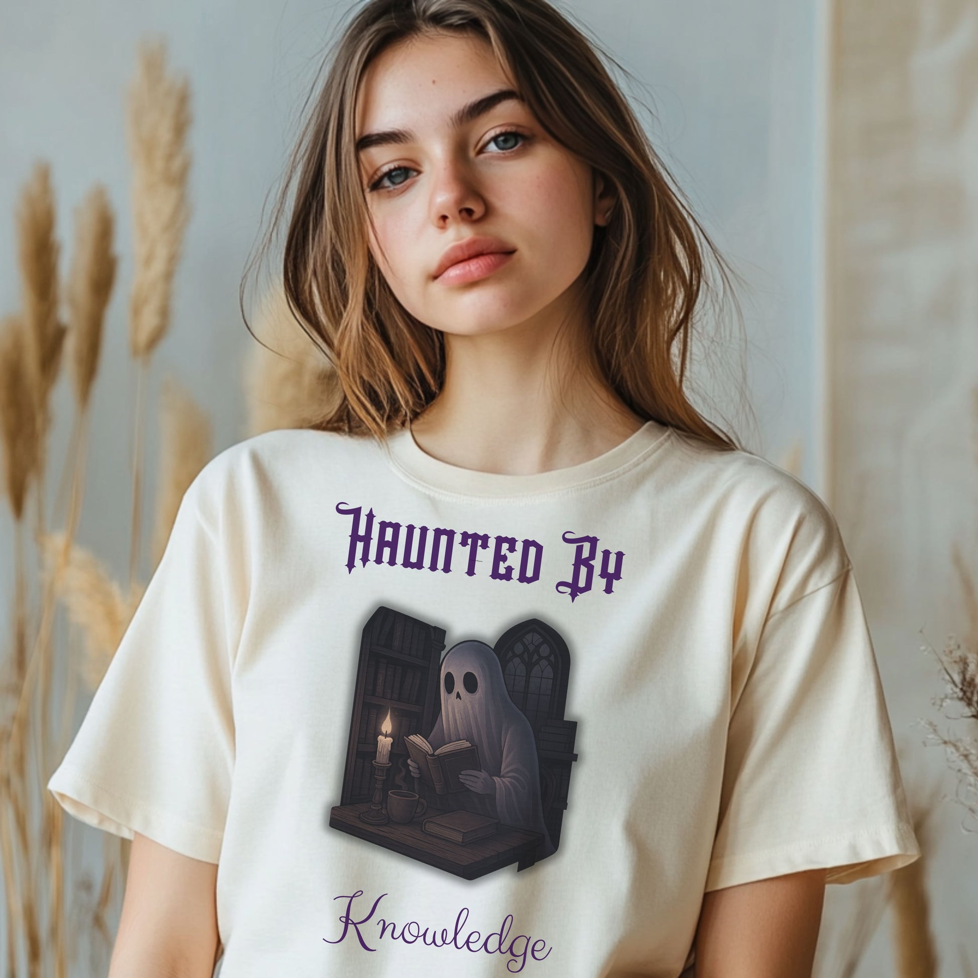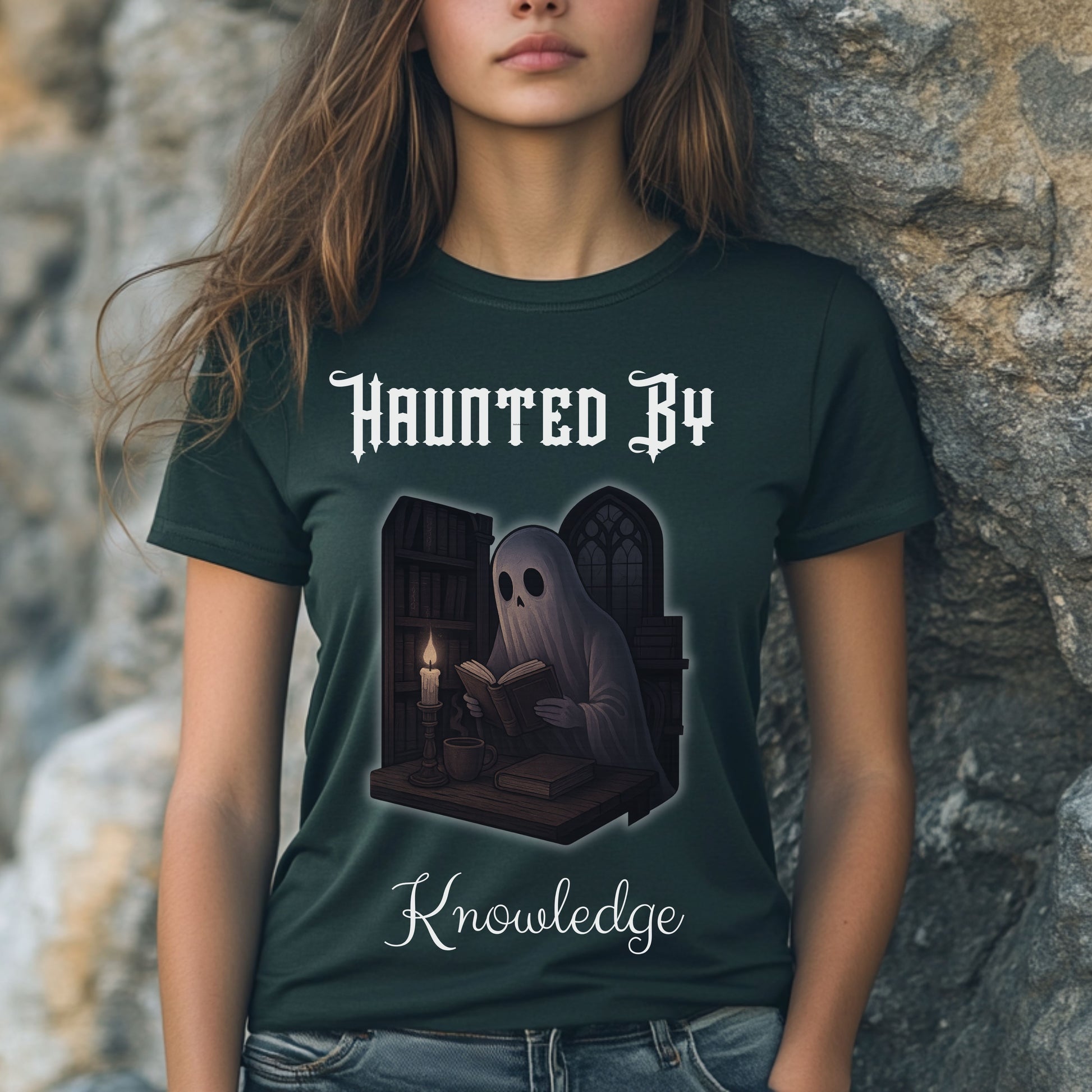 Haunted by Knowledge T-Shirt – Dark Academia Ghost Shirt for Book Lovers & Scholars