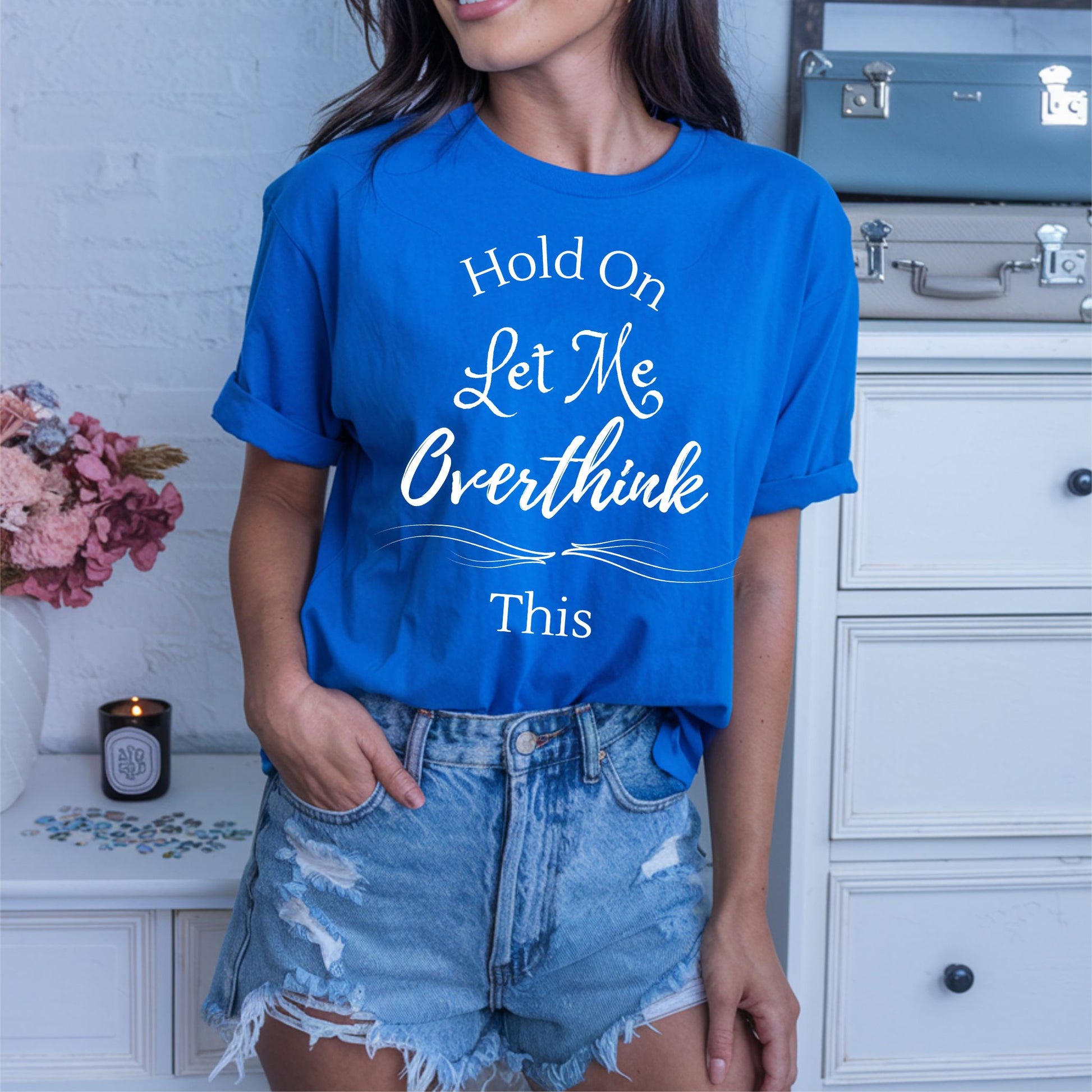 Do you have a wicked sense of humor? Then this funny shirt is just for you! It’s the perfect way to show off your wit and clever sarcasm. The text reads “Hold On let Me overthink this”, which is sure to draw attention and get a few laughs. This quirky and hilarious shirt will have everyone asking where you got it. This witty shirt is perfect for any situation – whether you’re out with friends or at home watching a movie. No matter where you’re headed and what you’re doing, this overthinker shirt has got you covered. This Hilarious Shirt makes a great sarcastic gift or gift for anyone. Let your personality shine through with this funny shirt. You’ll look great in this humorous shirt that is sure to become one of your favorite items in your wardrobe. So if you’re looking for a unique and hilarious shirt that will never go out of style, then this is it!