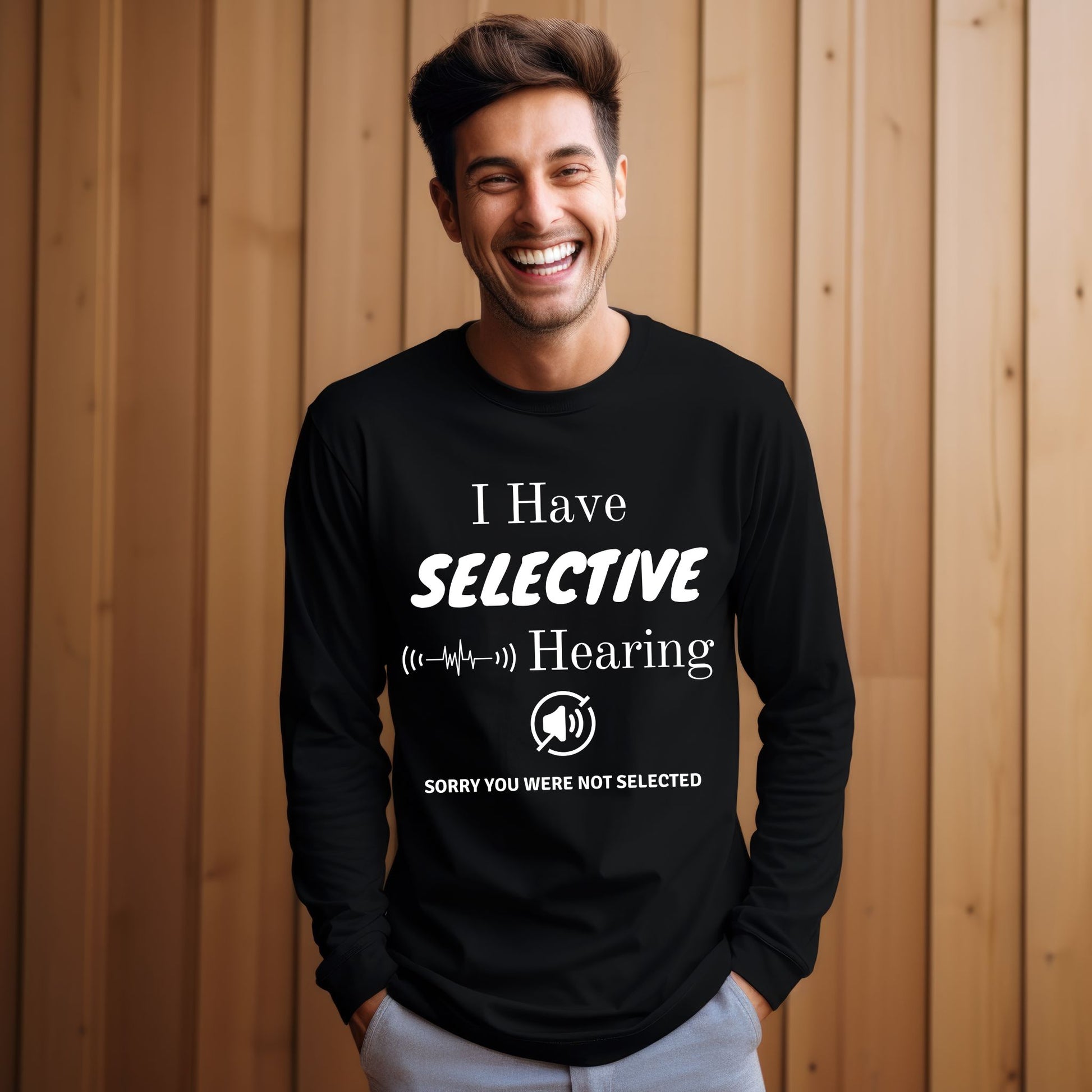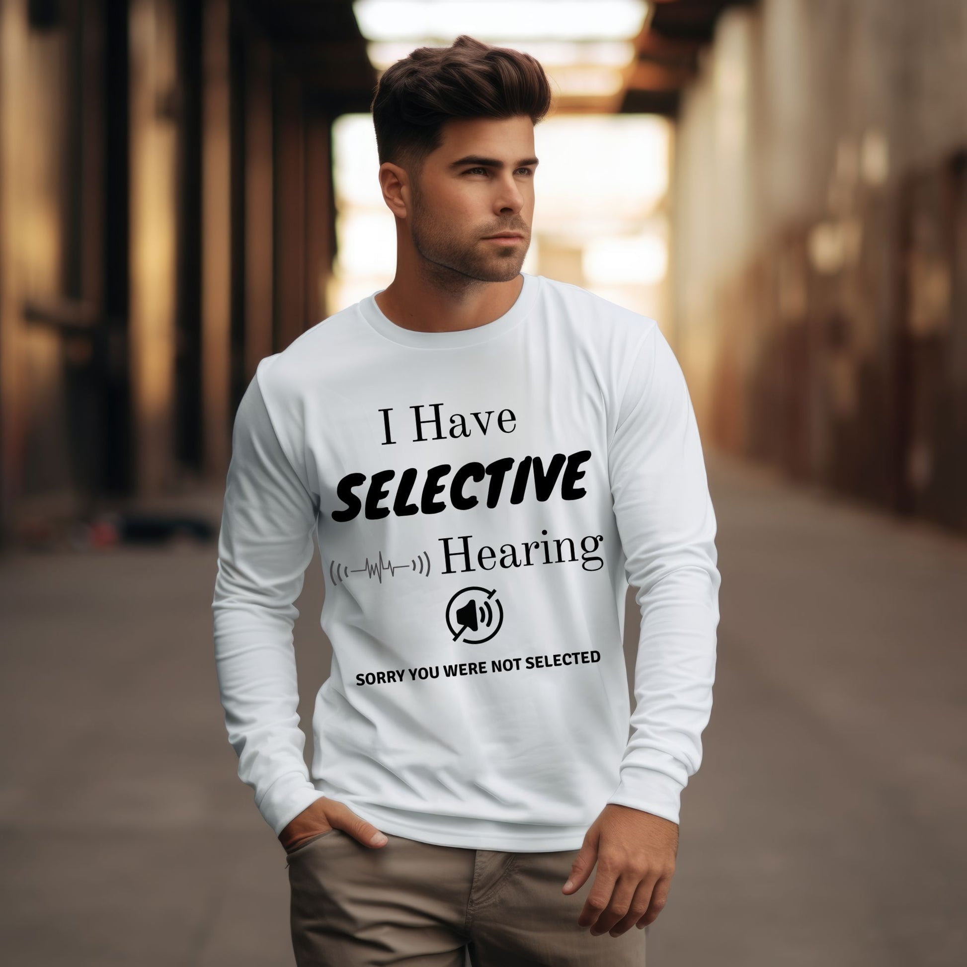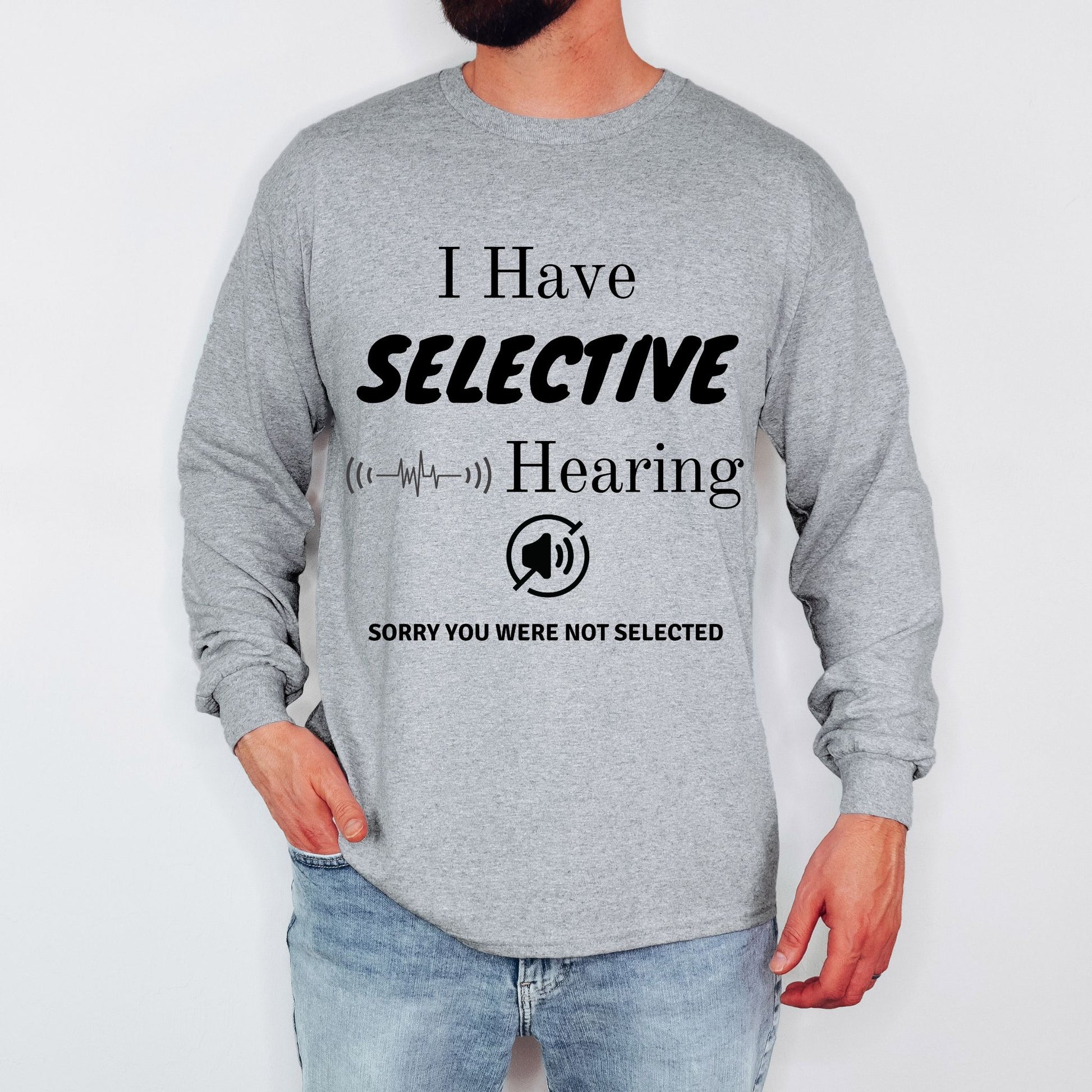 I Have Selective Hearing T-Shirt, Funny Sarcastic Quote Tee for Men & Women, Humorous Shirt, Sarcastic Shirt Funny TShirt Long Sleeve Tee