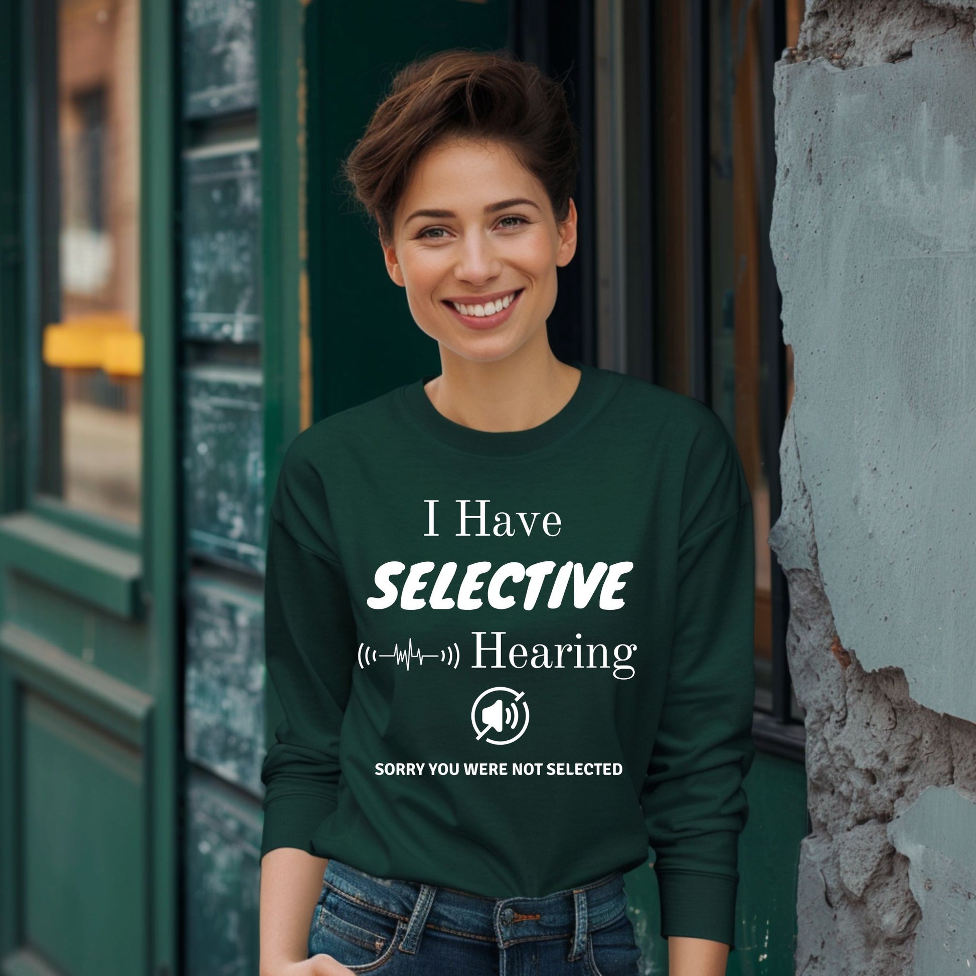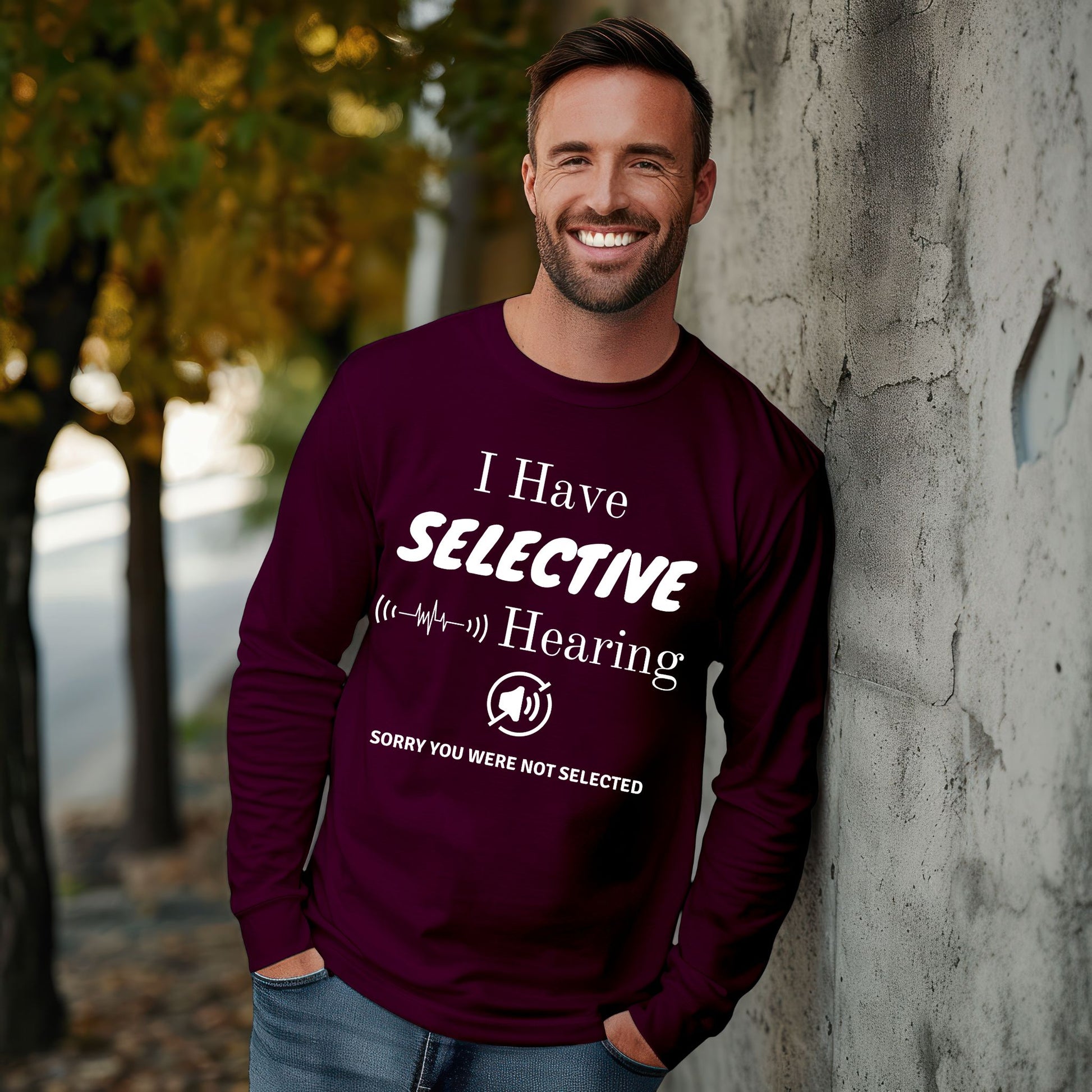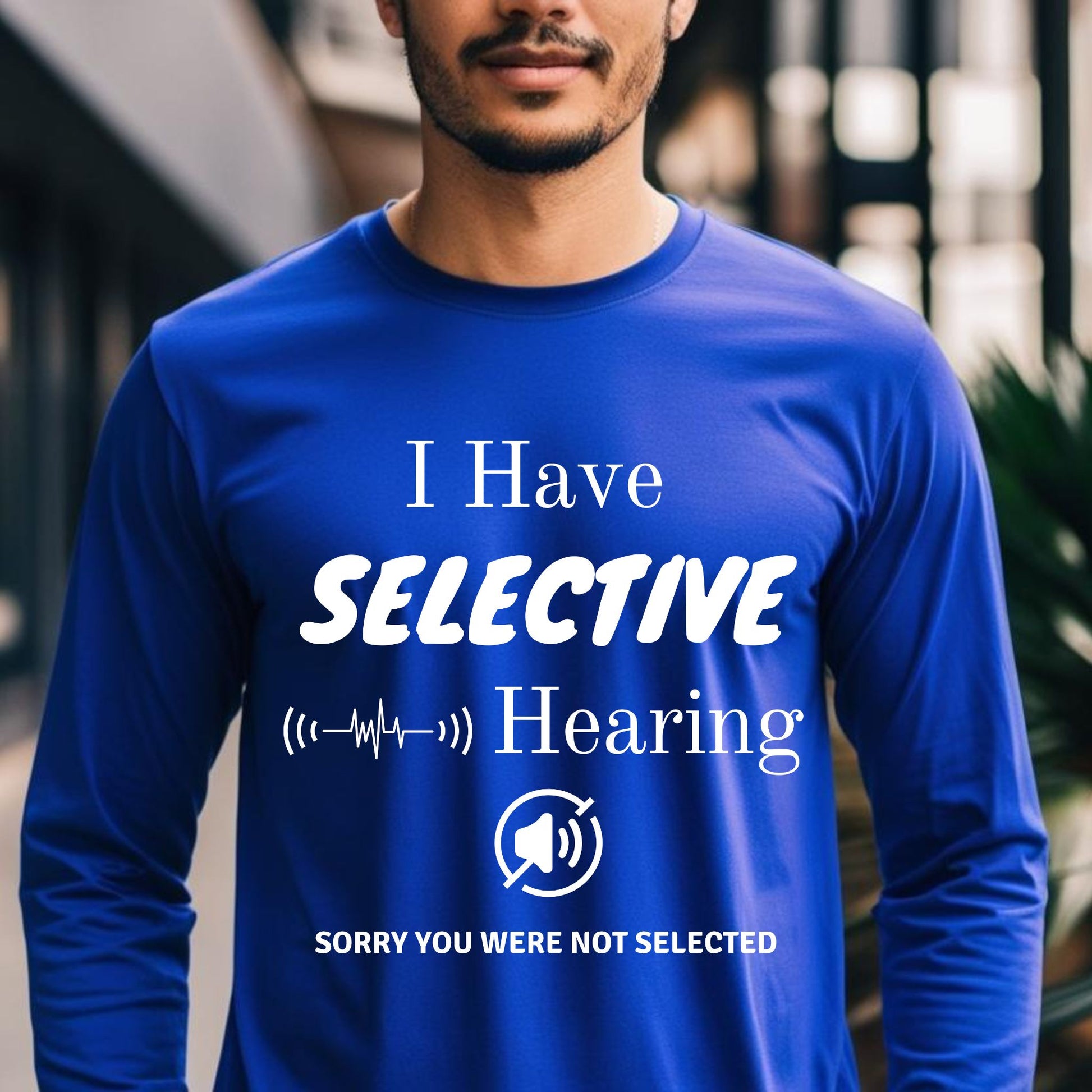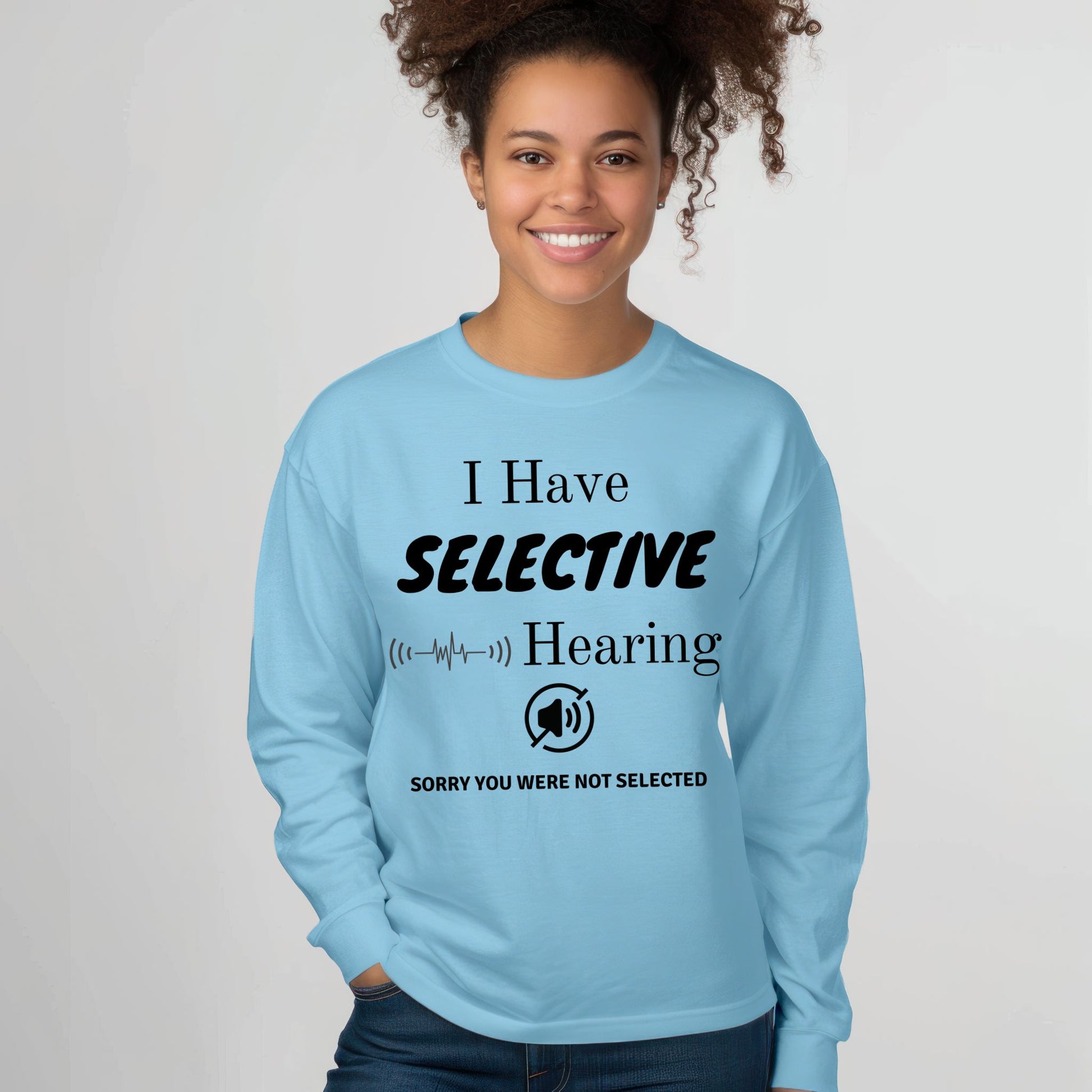 I Have Selective Hearing T-Shirt, Funny Sarcastic Quote Tee for Men & Women, Humorous Shirt, Sarcastic Shirt Funny TShirt Long Sleeve Tee