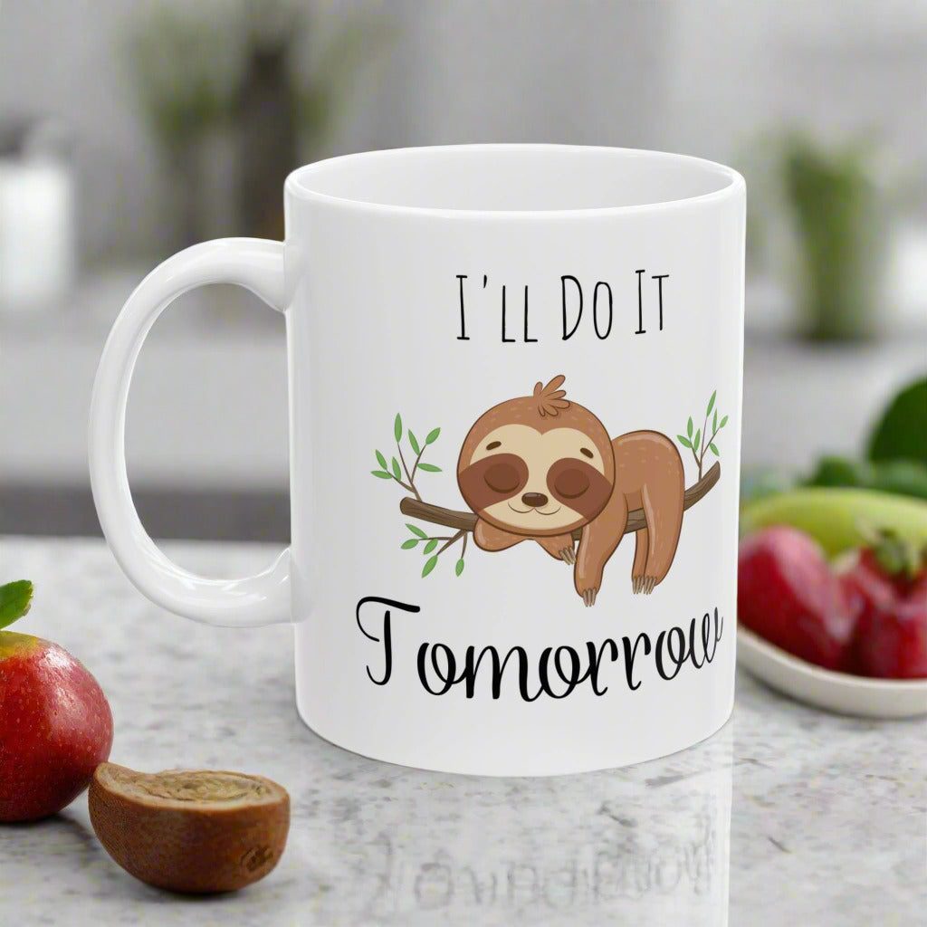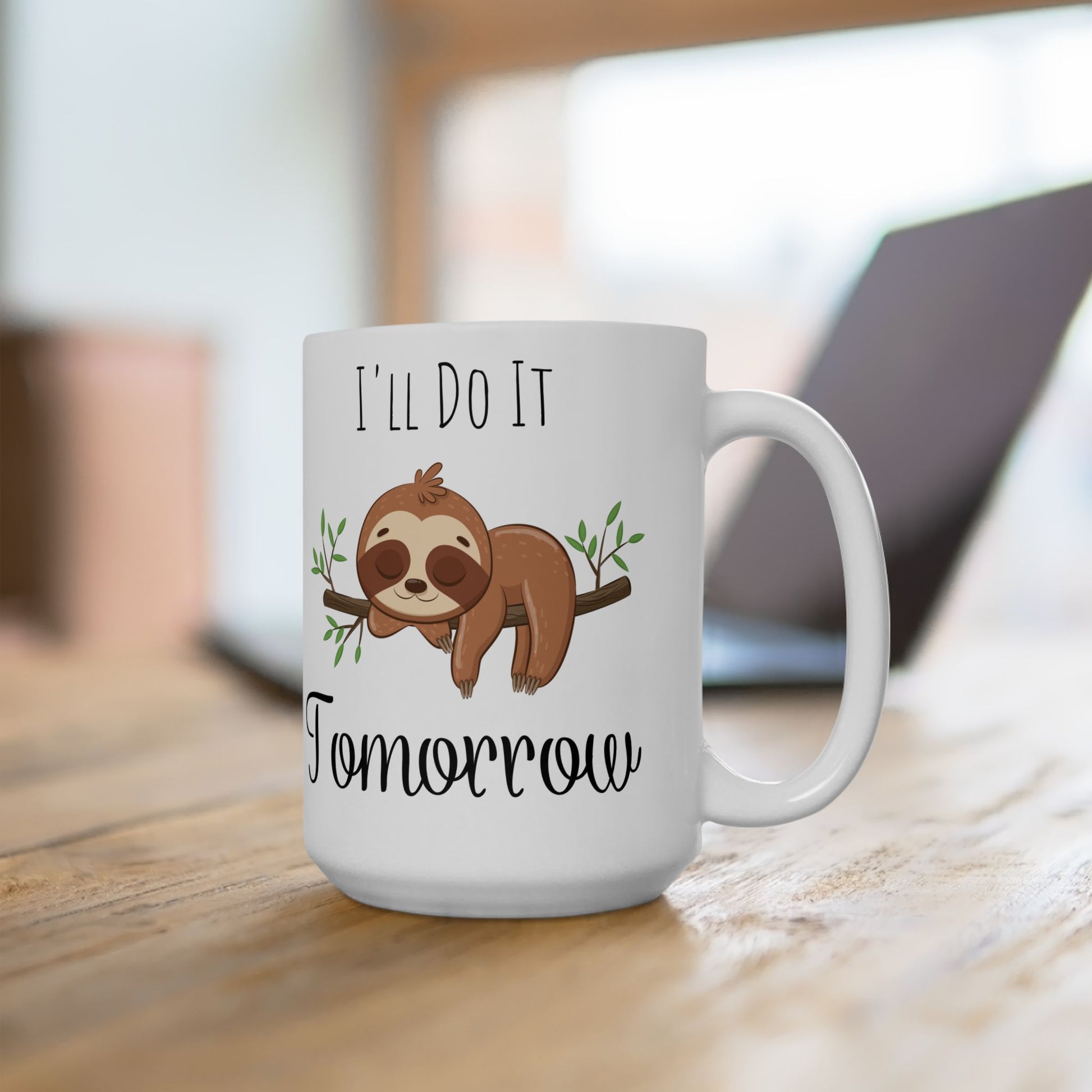 “I’ll Do It Tomorrow” Sloth Coffee Mug – Funny Lazy Sloth Ceramic Cup for Procrastinators