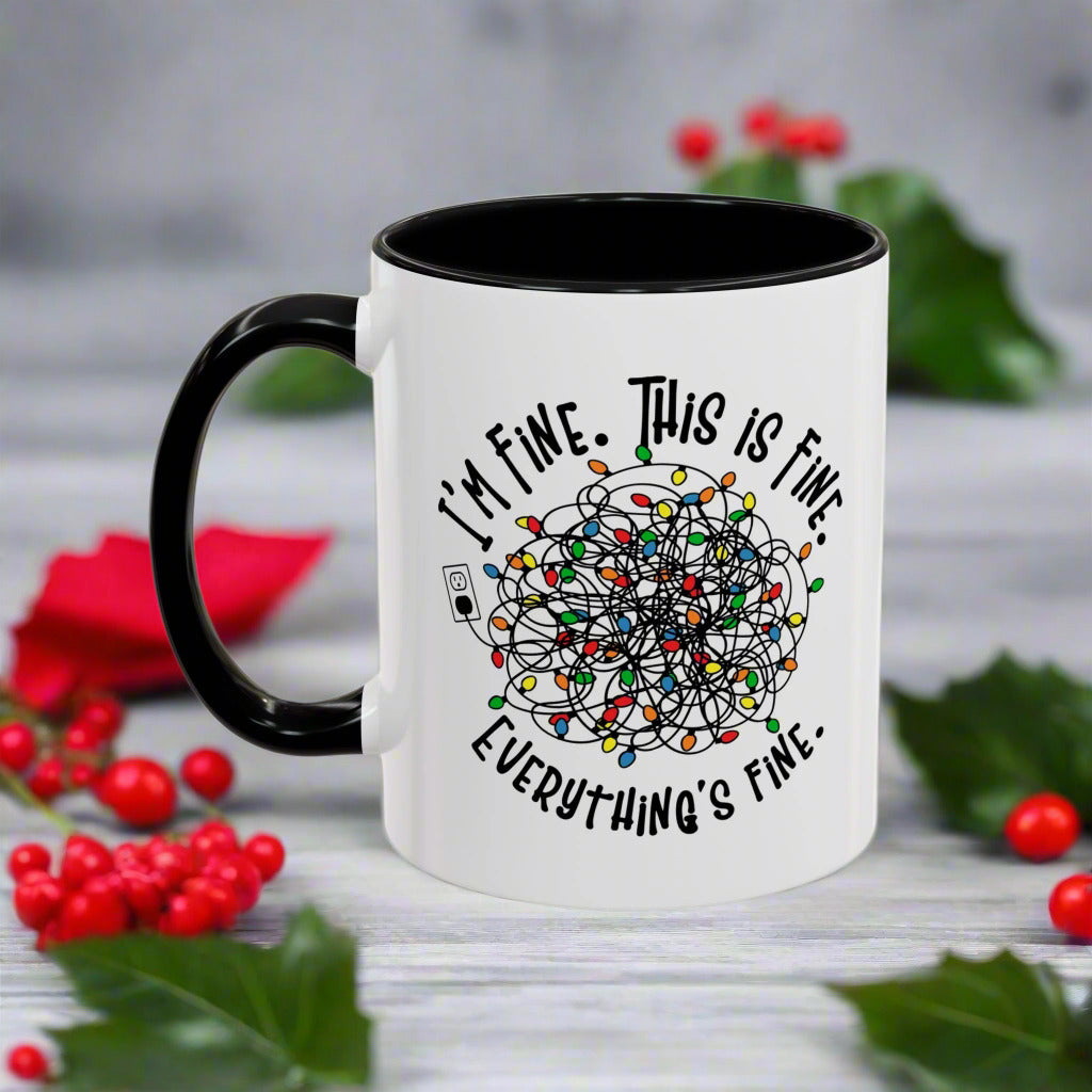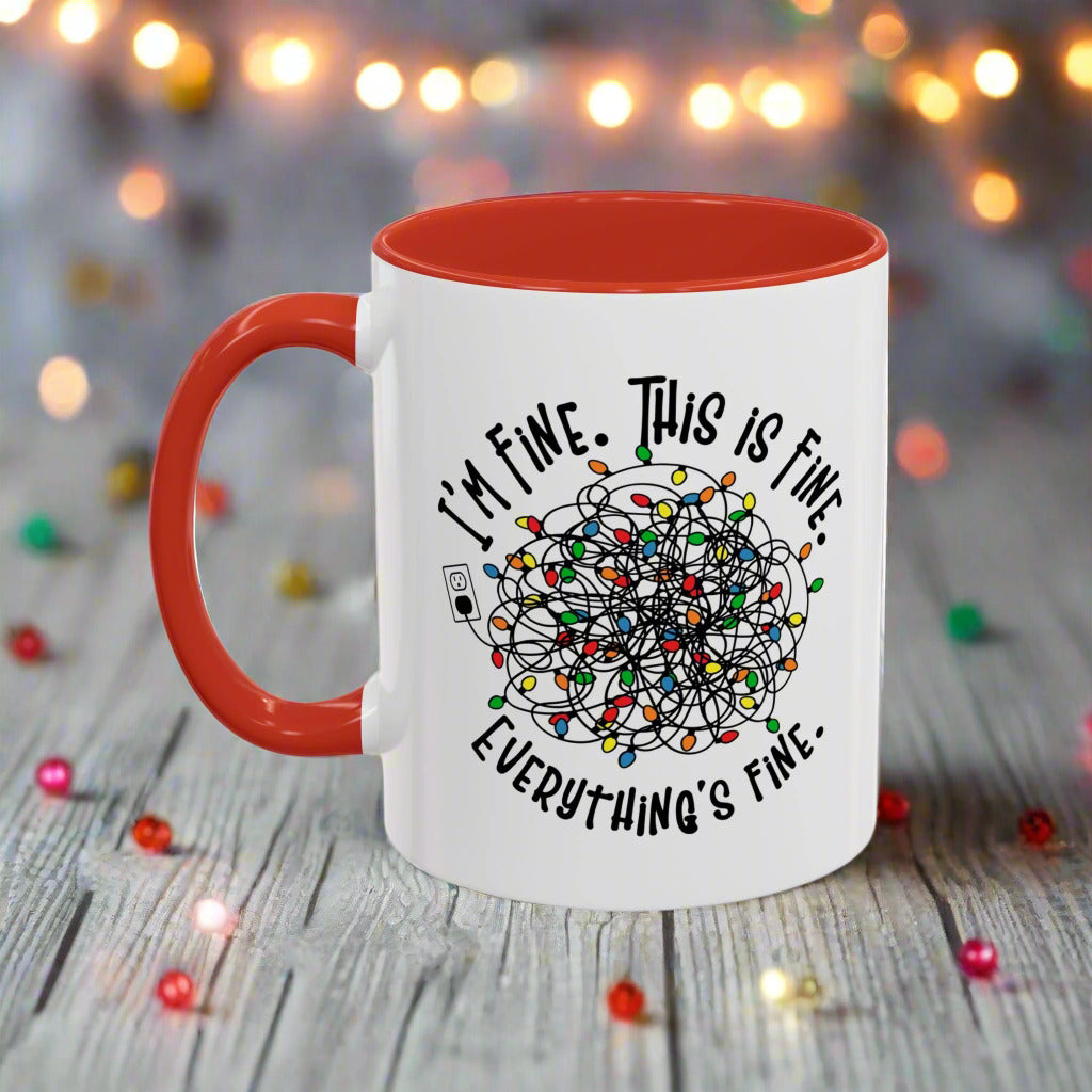 Funny Christmas Accent Mug - "I'm Fine. This Is Fine. Everything's Fine." - Holiday Coffee Cup for Stress Relief
