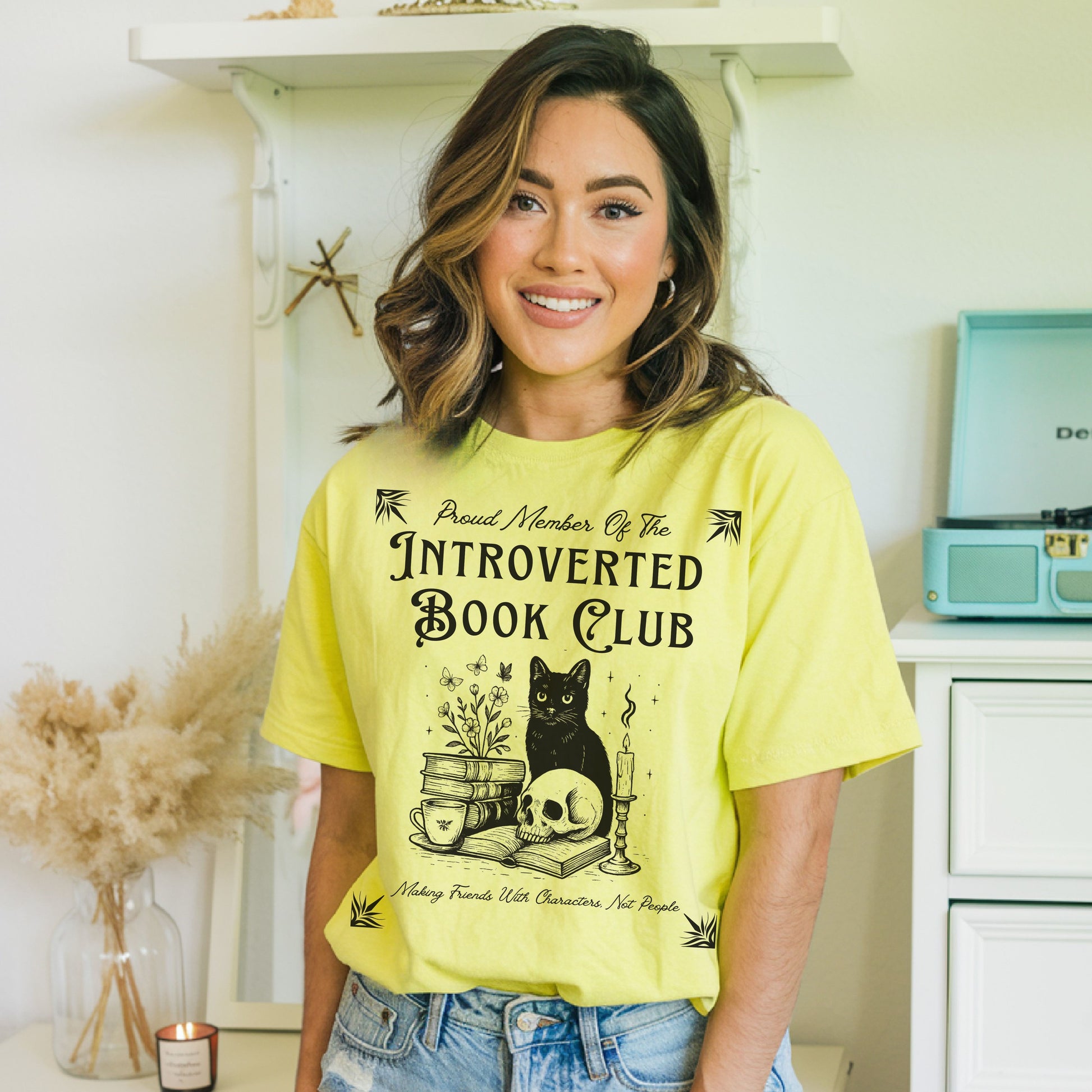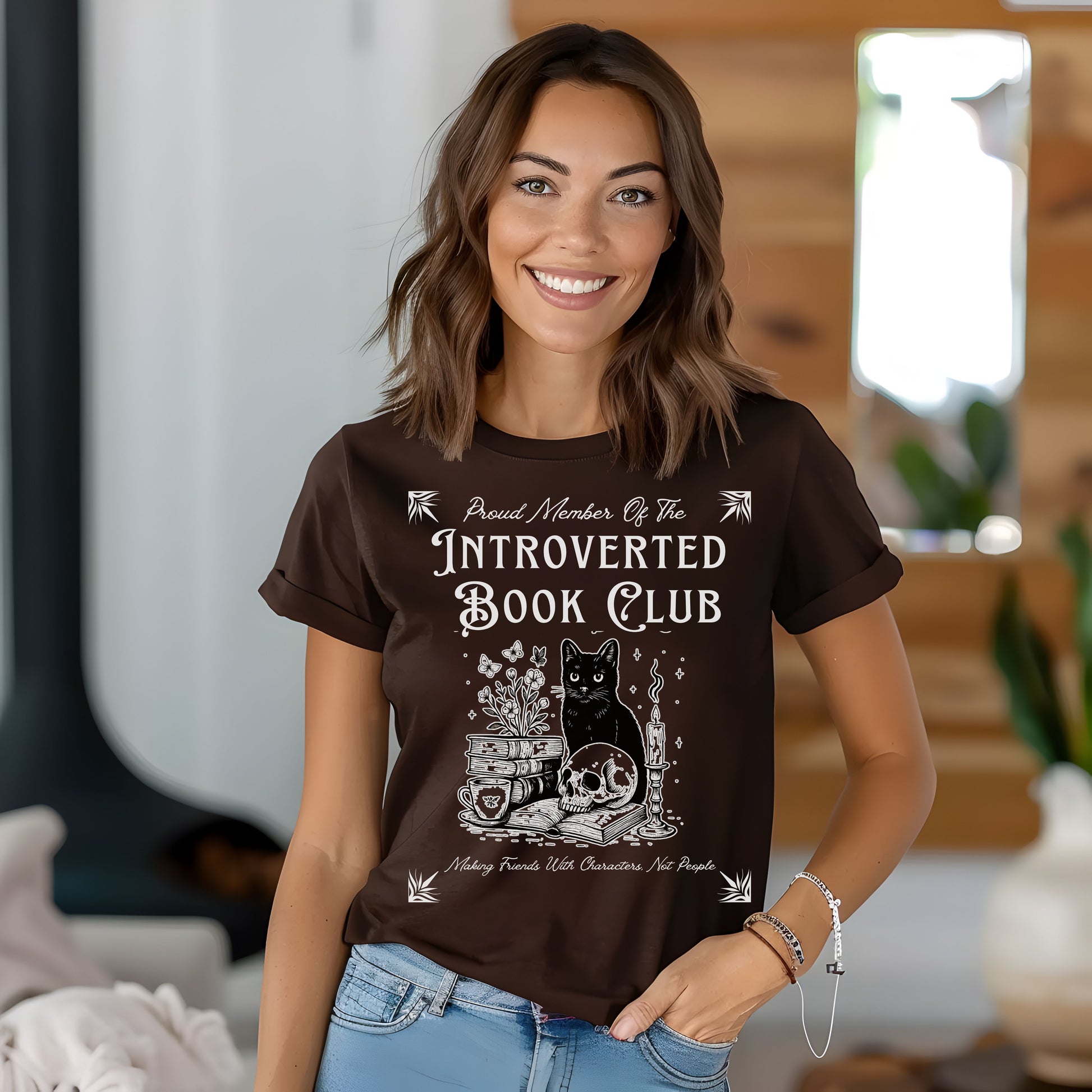 Text reads: “Proud Member of the Introverted Book Club – Making Friends With Characters, Not People”