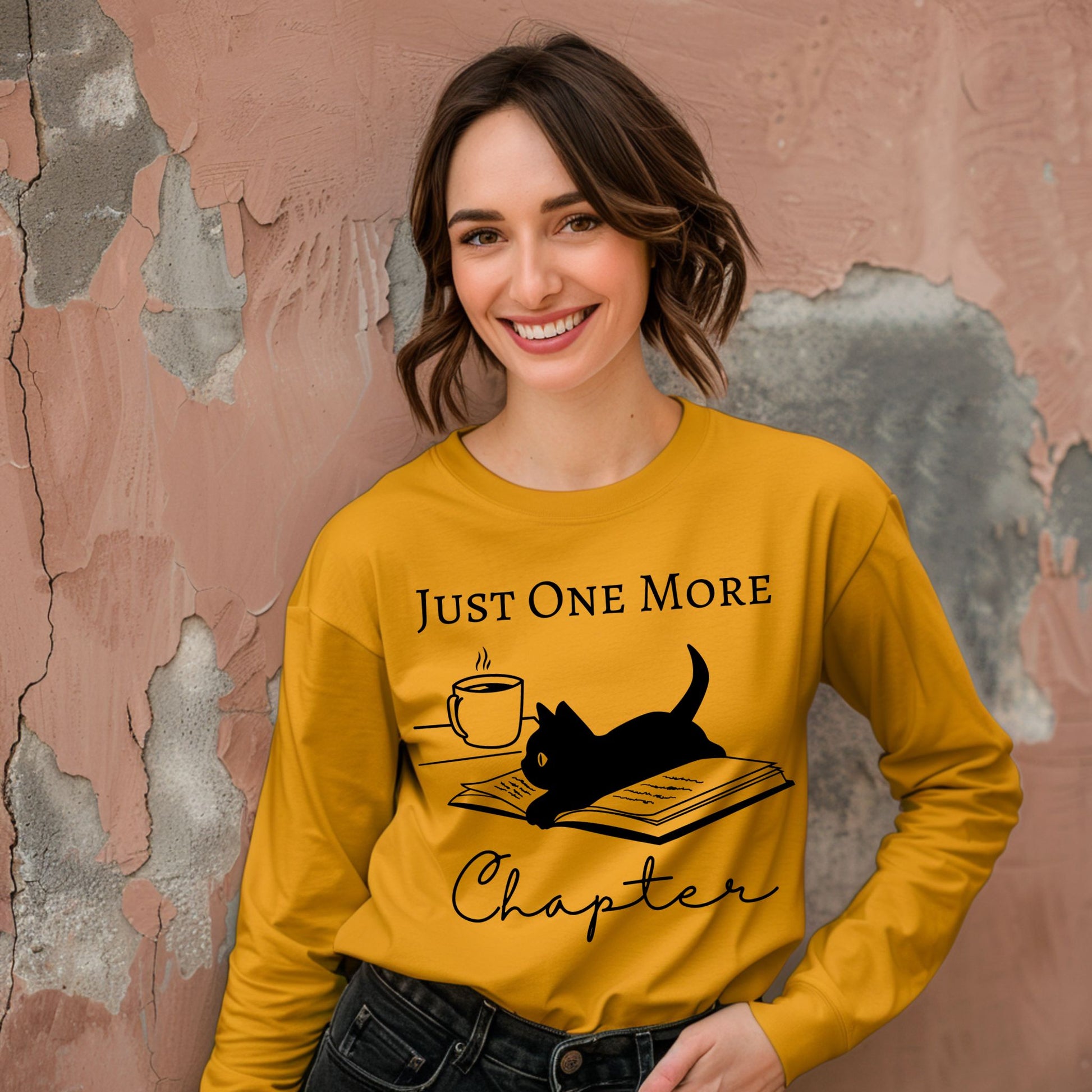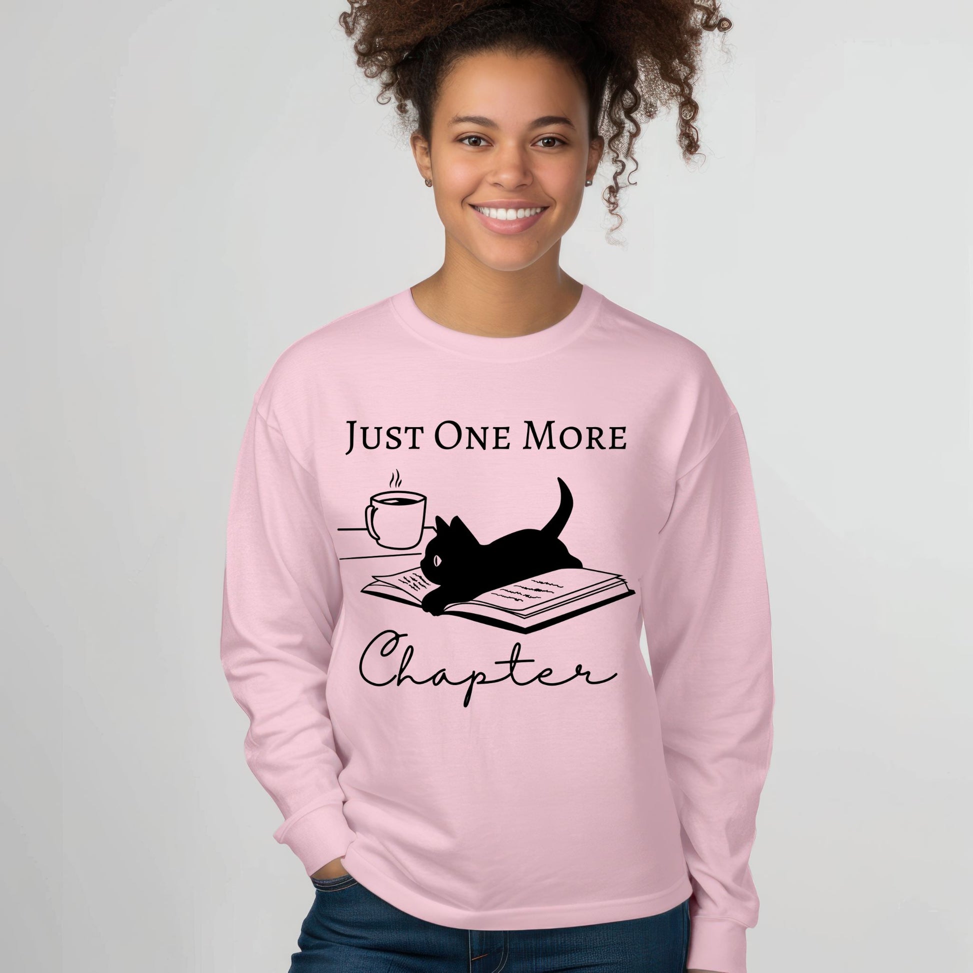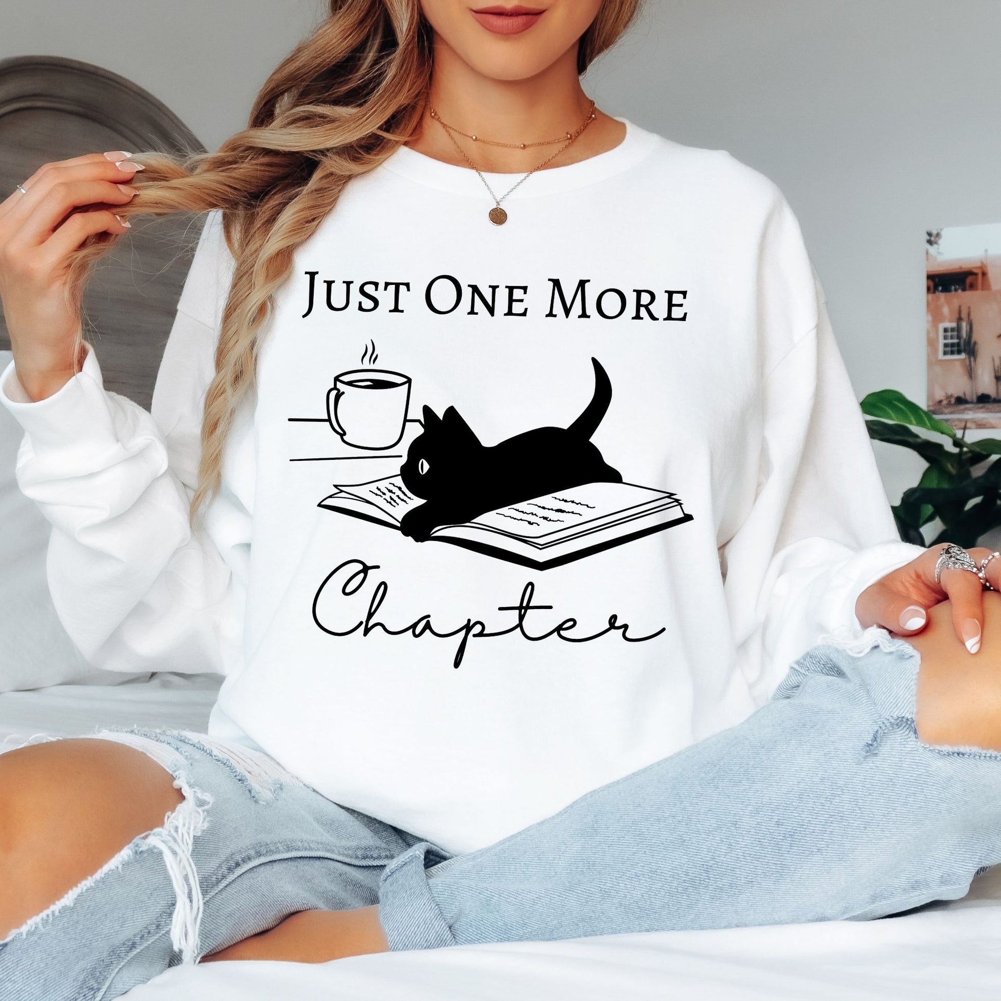 Just One More Chapter Tshirt Reading Shirt For Book Lover Gifts Bookish Gifts Cat Lover Tee Black Cat Gifts Long Sleeve Tee