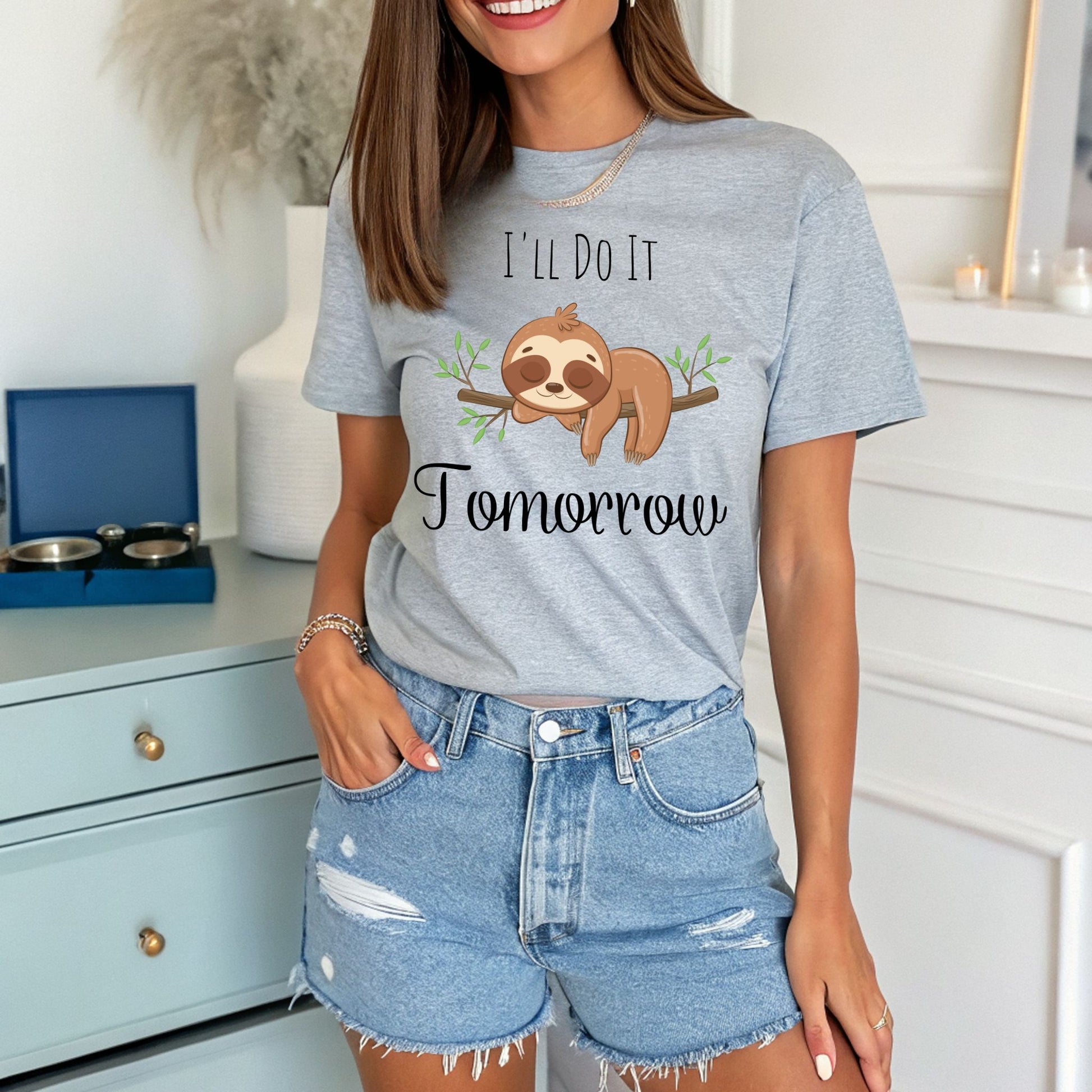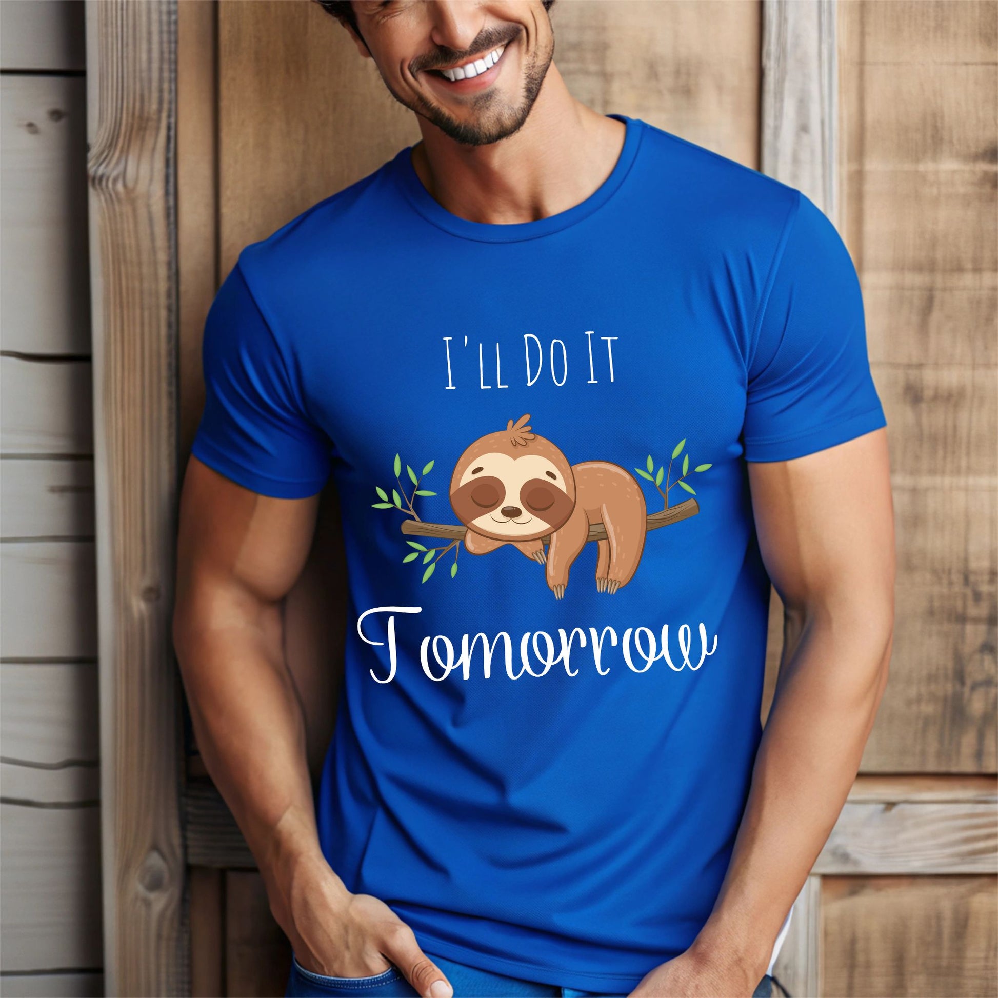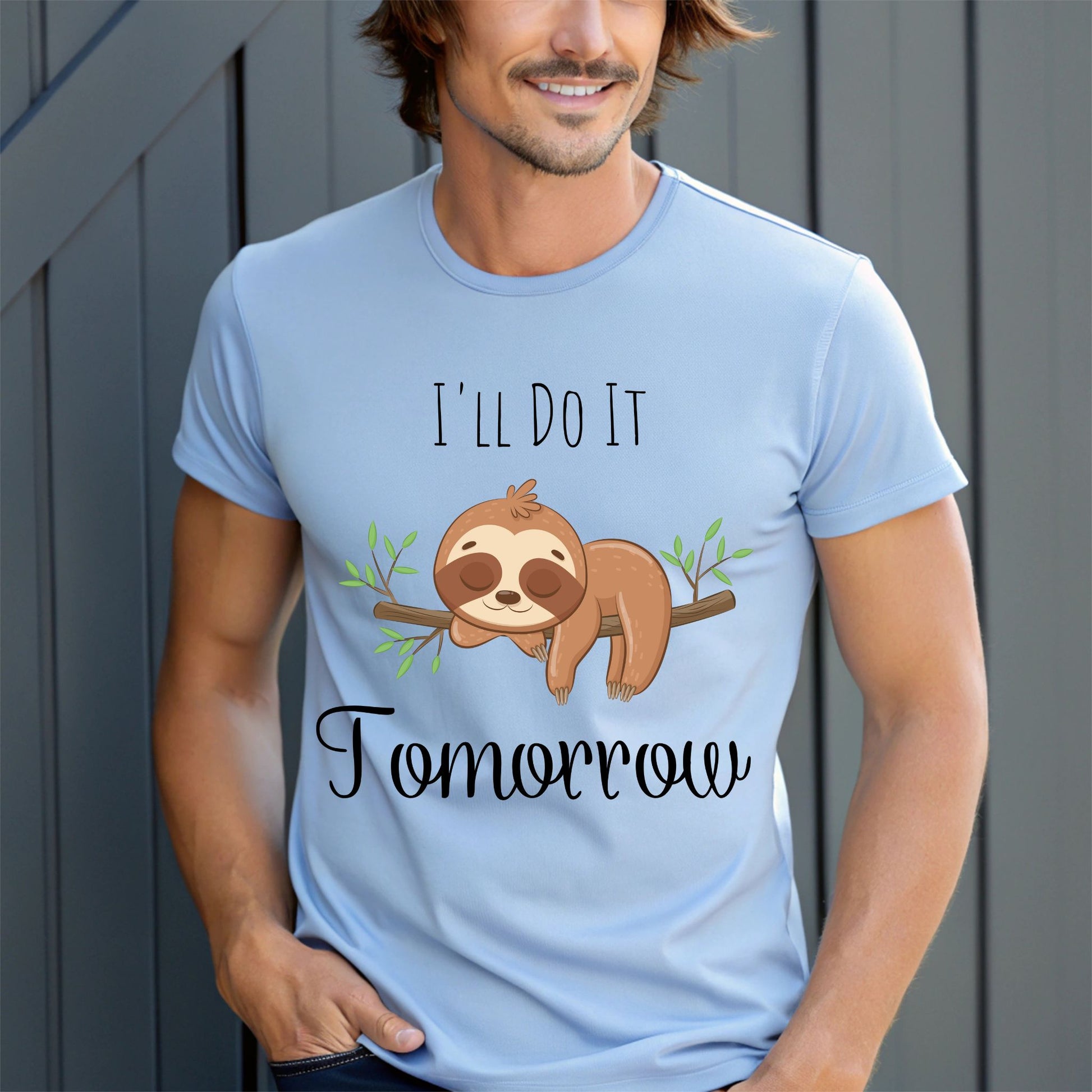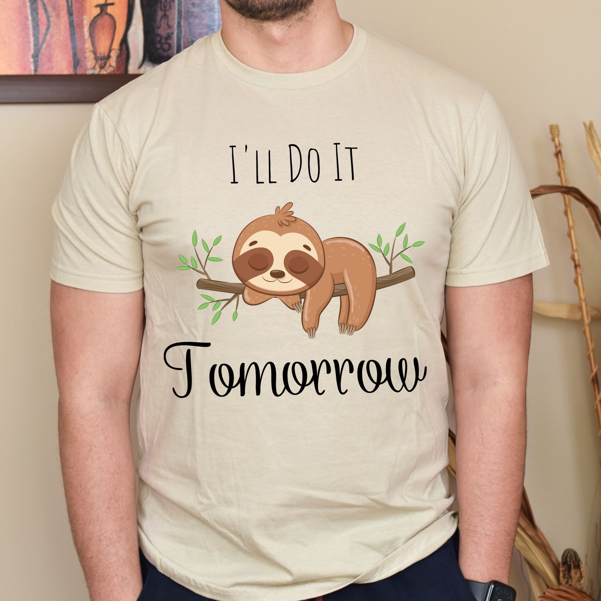 Lazy Baby Sloth "I'll Do It Tomorrow" T-Shirt Funny Cute Graphic Tee Procrastination Shirt Funny Shirt Procrastinator Gift Sarcastic Gift