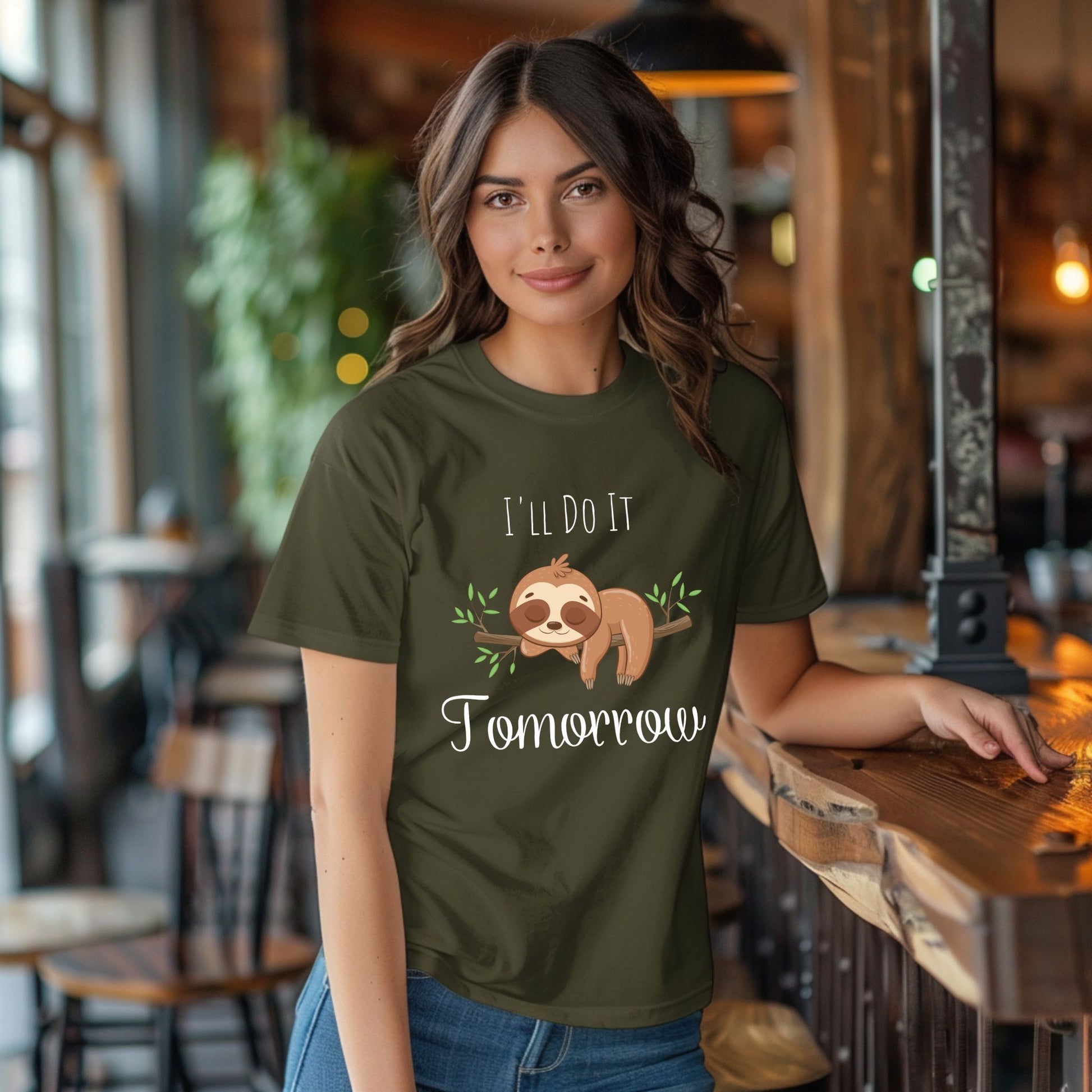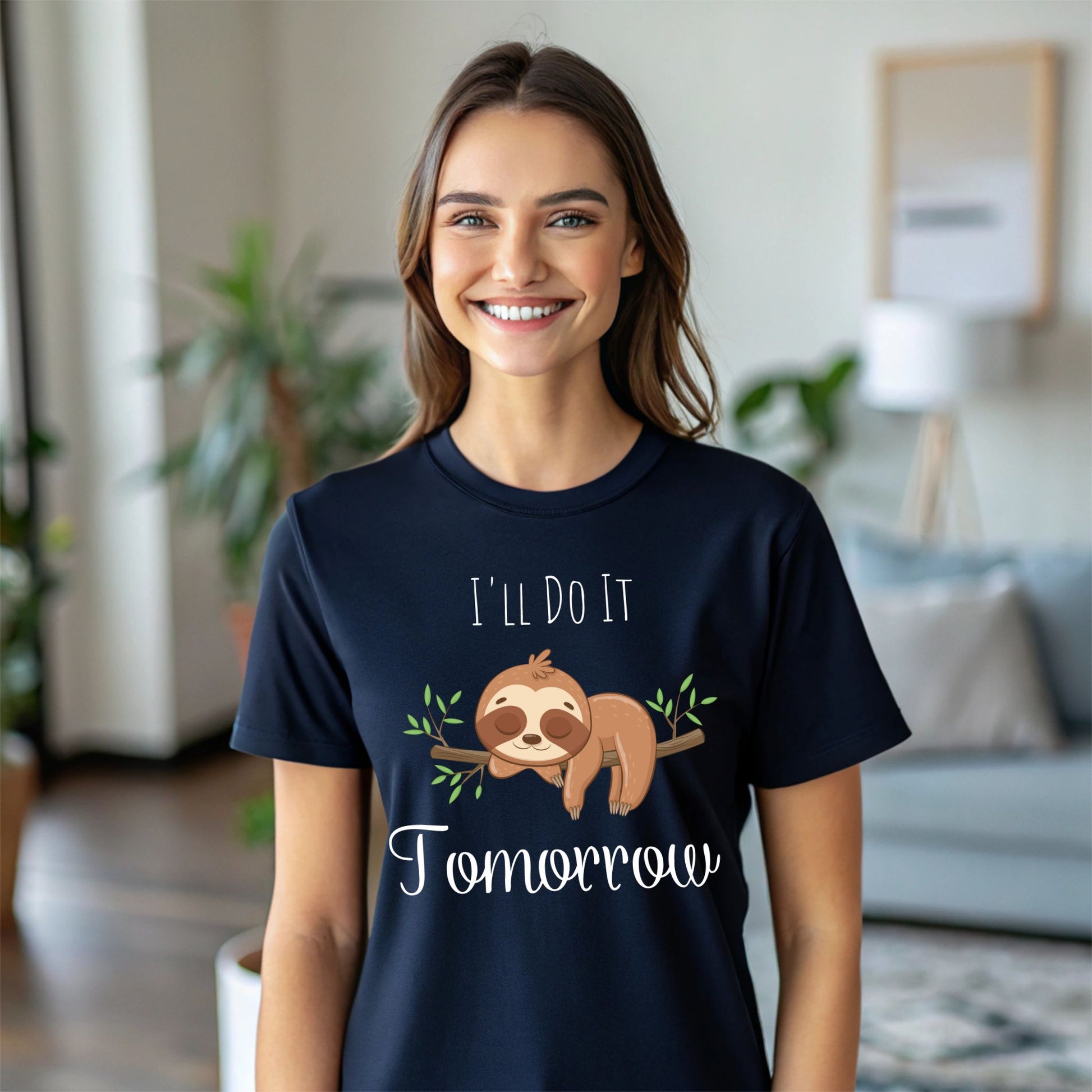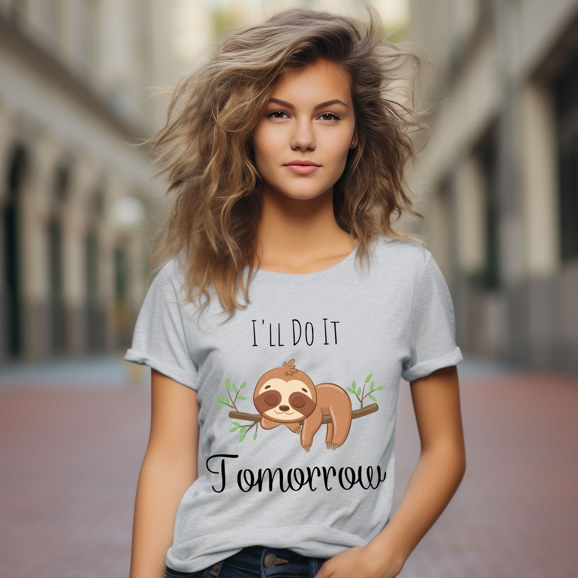 Lazy Baby Sloth "I'll Do It Tomorrow" T-Shirt Funny Cute Graphic Tee Procrastination Shirt Funny Shirt Procrastinator Gift Sarcastic Gift