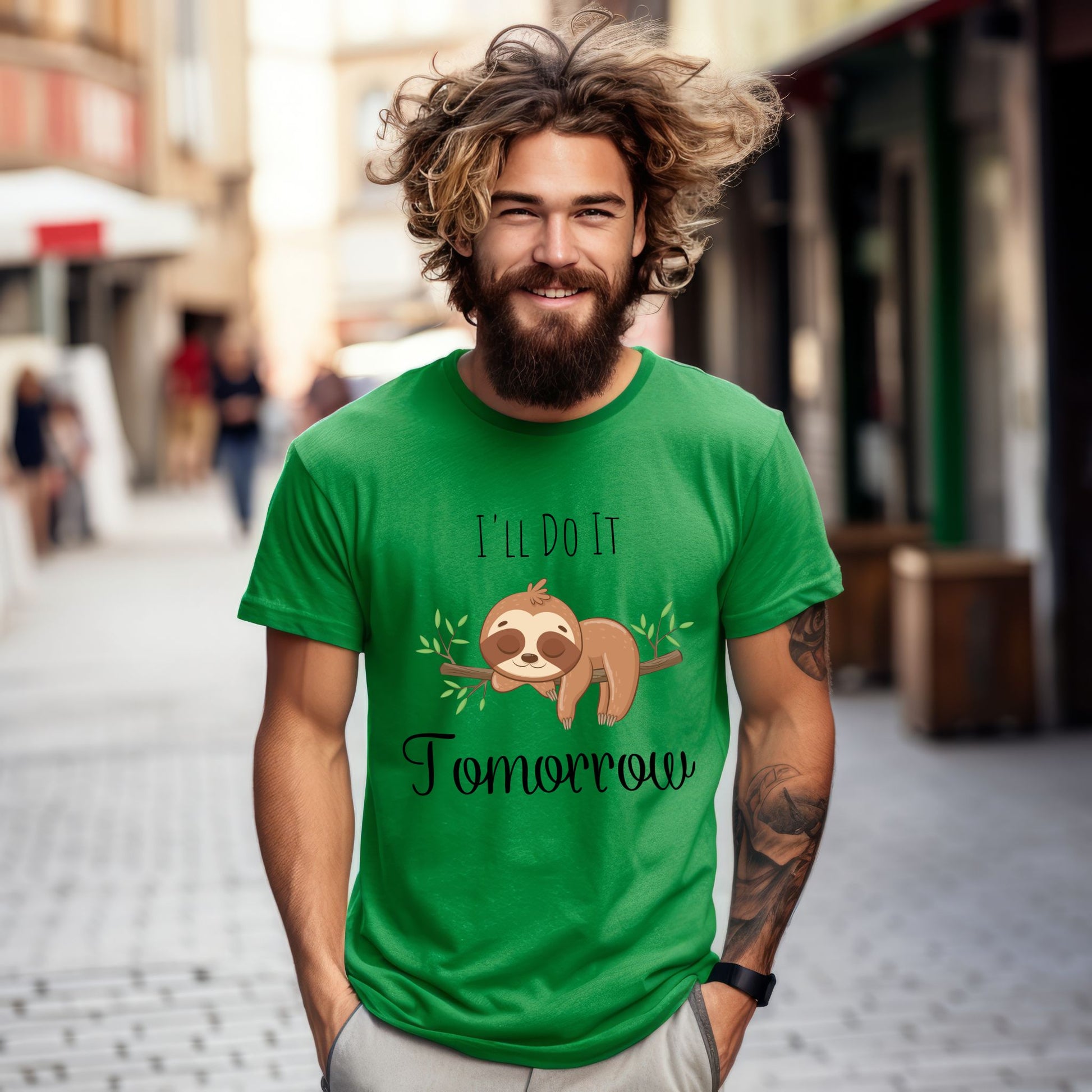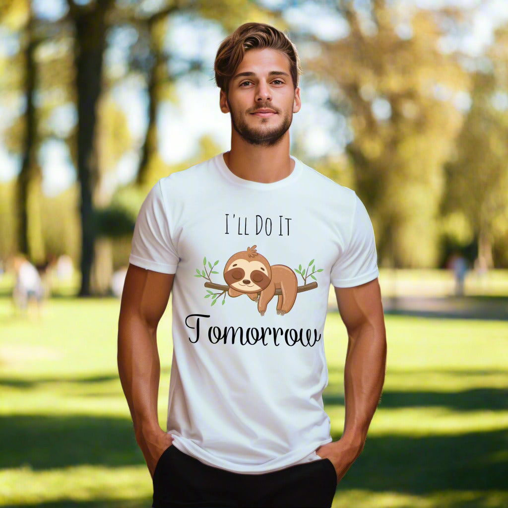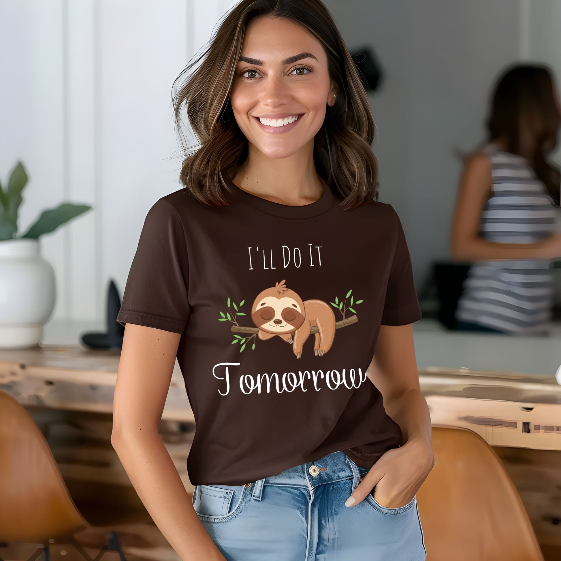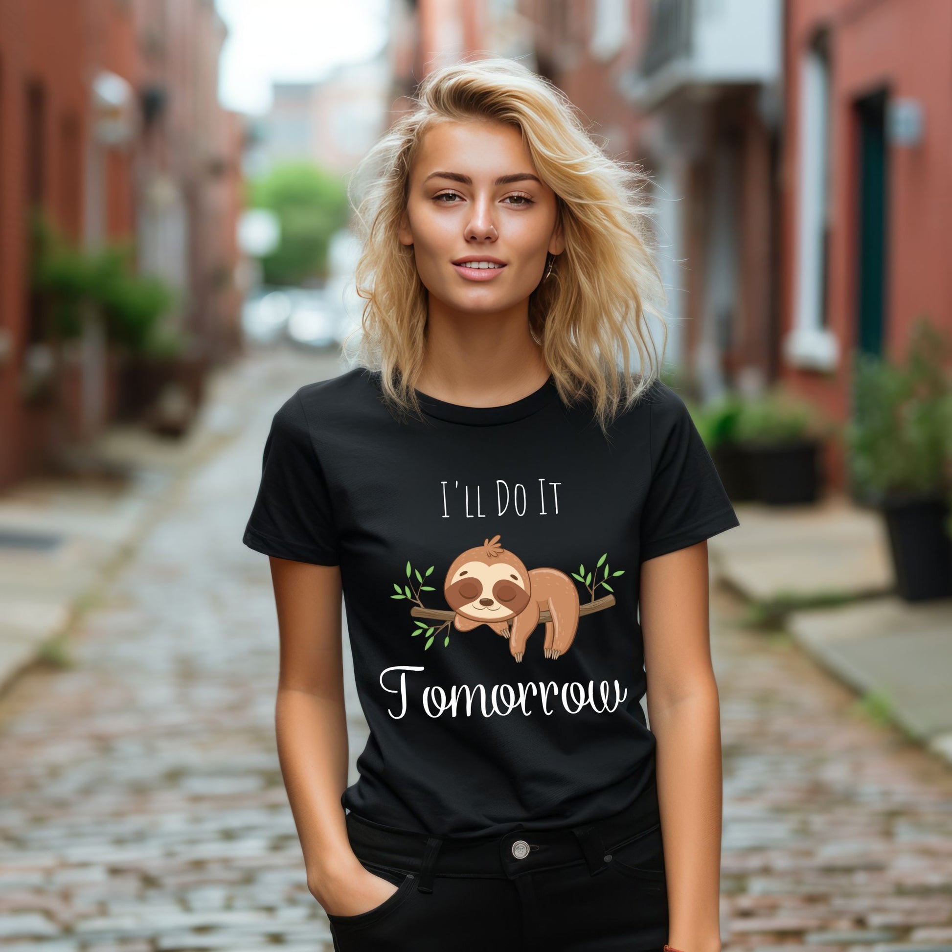 Lazy Baby Sloth "I'll Do It Tomorrow" T-Shirt Funny Cute Graphic Tee Procrastination Shirt Funny Shirt Procrastinator Gift Sarcastic Gift