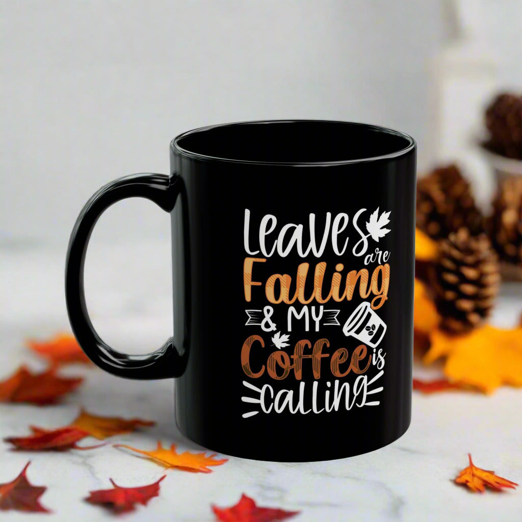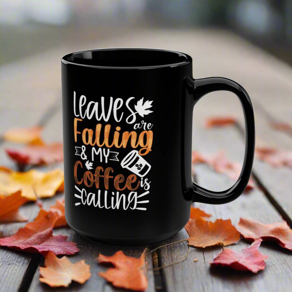 Celebrate the cozy season with this charming black ceramic mug featuring the playful phrase, "Leaves Are Falling & My Coffee Is Calling." Perfect for enjoying your favorite hot beverages during autumn, this fall-themed coffee cup is an ideal gift for coffee enthusiasts, fall lovers, or anyone who loves the crisp air and colorful leaves. Made from durable ceramic, dishwasher safe, and great for home or office use. Bring a touch of autumn charm to your daily routine!
