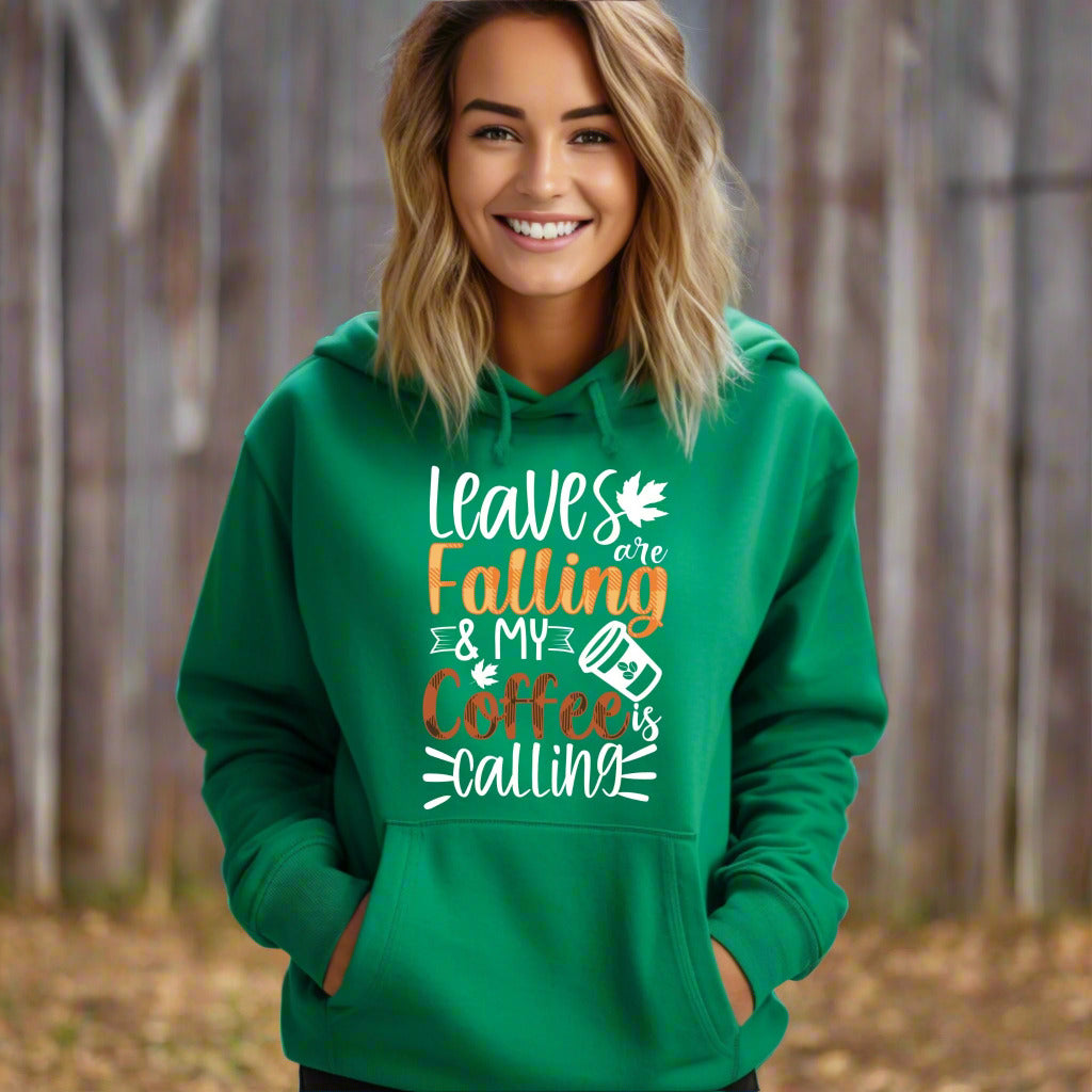 Celebrate your love for cozy fall mornings with our Leaves Are Falling and My Coffee Is Calling Hoodie! Featuring a playful autumn-themed graphic with warm fall colors, coffee cup illustration, and festive leaves, this comfy sweatshirt is perfect for coffee lovers who can't wait for sweater weather. Ideal for trips to the pumpkin patch, sipping lattes, or enjoying crisp autumn days, this fall coffee hoodie is a must-have for your seasonal wardrobe. Great gift idea for coffee enthusiasts, fall lovers, and anyone who lives for cozy autumn vibes!