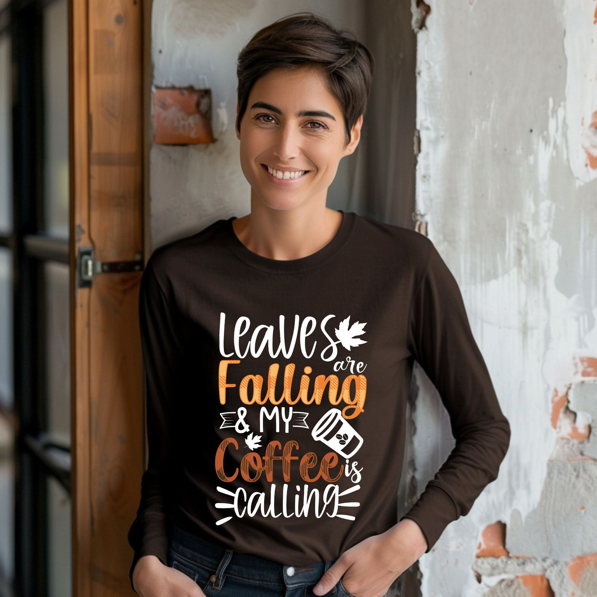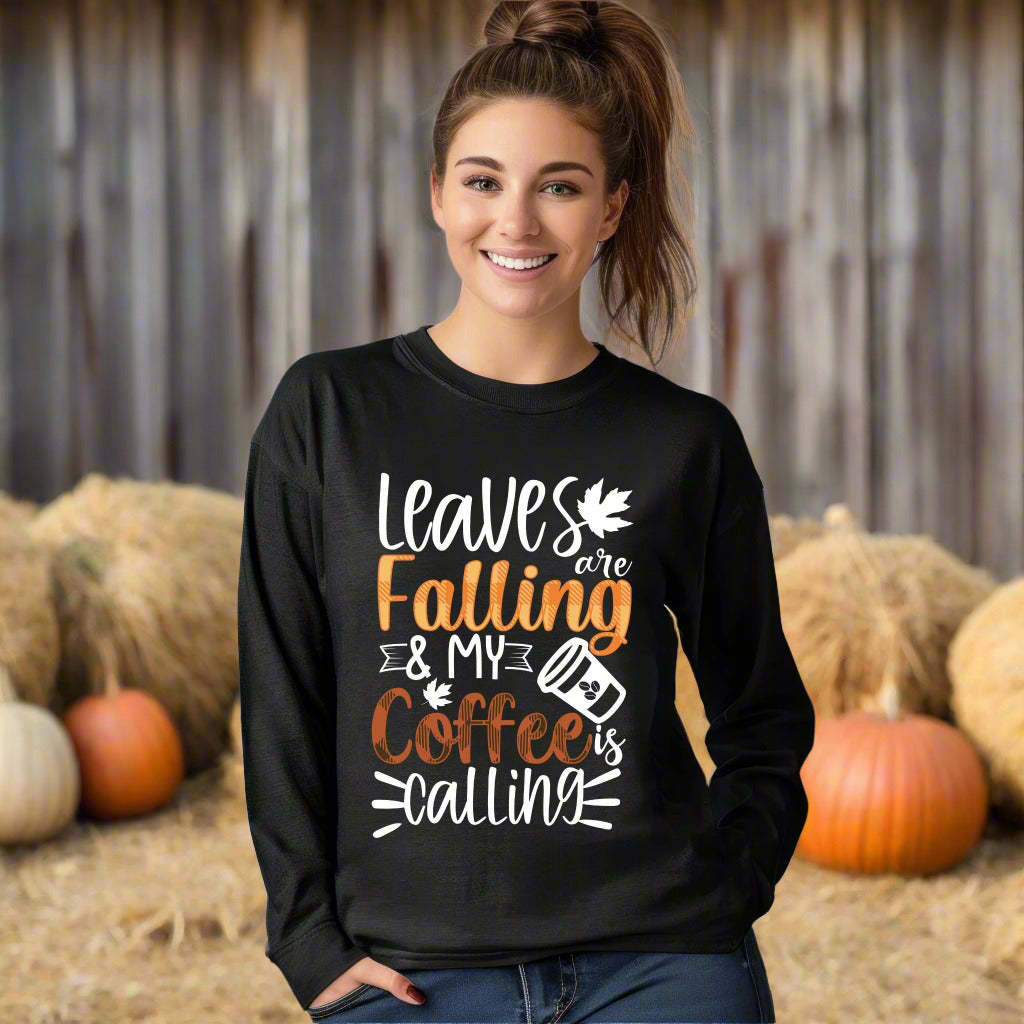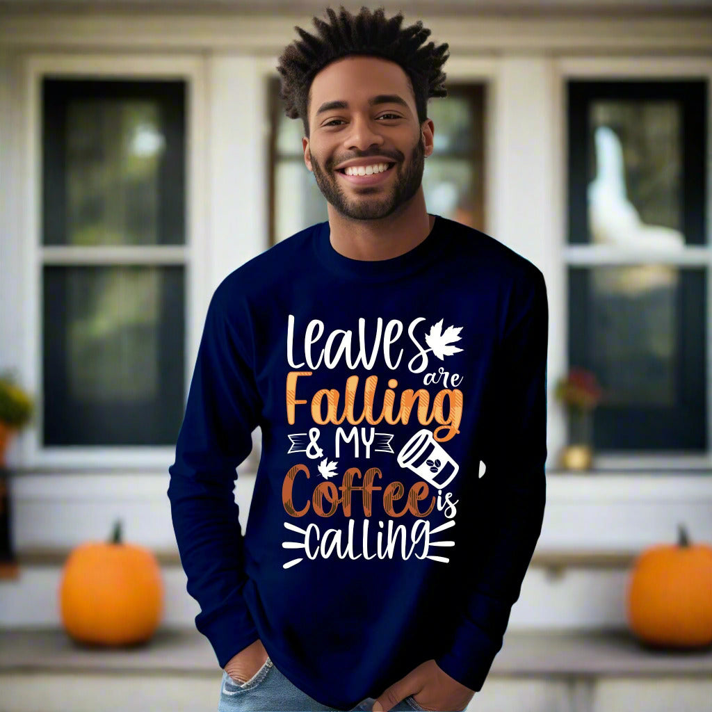 Leaves Are Falling and My Coffee Is Calling T-Shirt – Fall Coffee Lover Autumn Tee Fall Vibes Shirt Long Sleeve Tee
