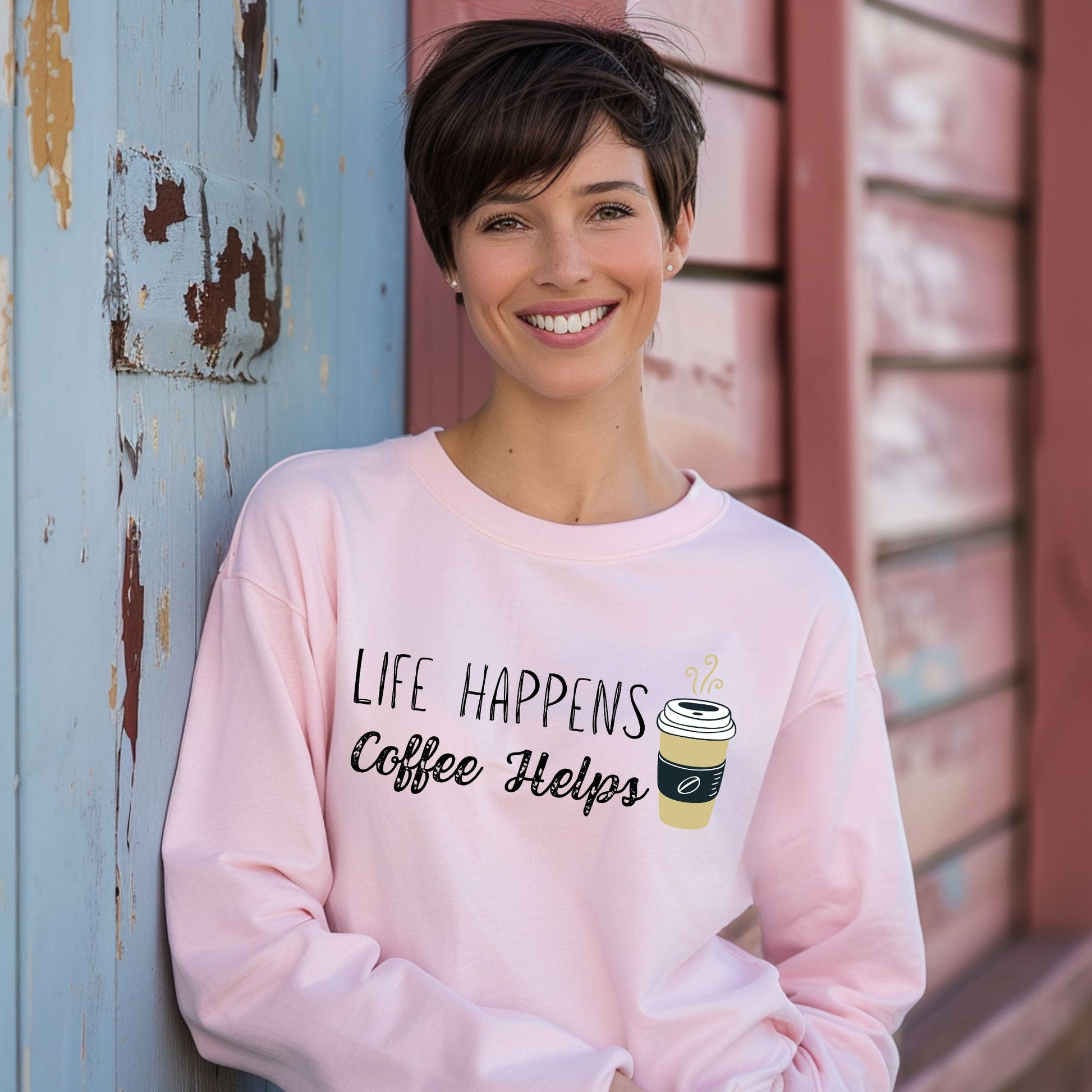 Start your day strong with our Life Happens, Coffee Helps T-Shirt! Featuring a cute coffee cup graphic with rising steam and bold, relatable text, this tee is perfect for coffee lovers who run on caffeine and a sense of humor. Whether you're heading to work, lounging at home, or grabbing your favorite brew, this soft and comfy shirt adds a touch of java-inspired charm to any outfit. Great for baristas, busy moms, students, or anyone who knows coffee is life. Makes a fun and thoughtful gift for birthdays, holidays, or just because!