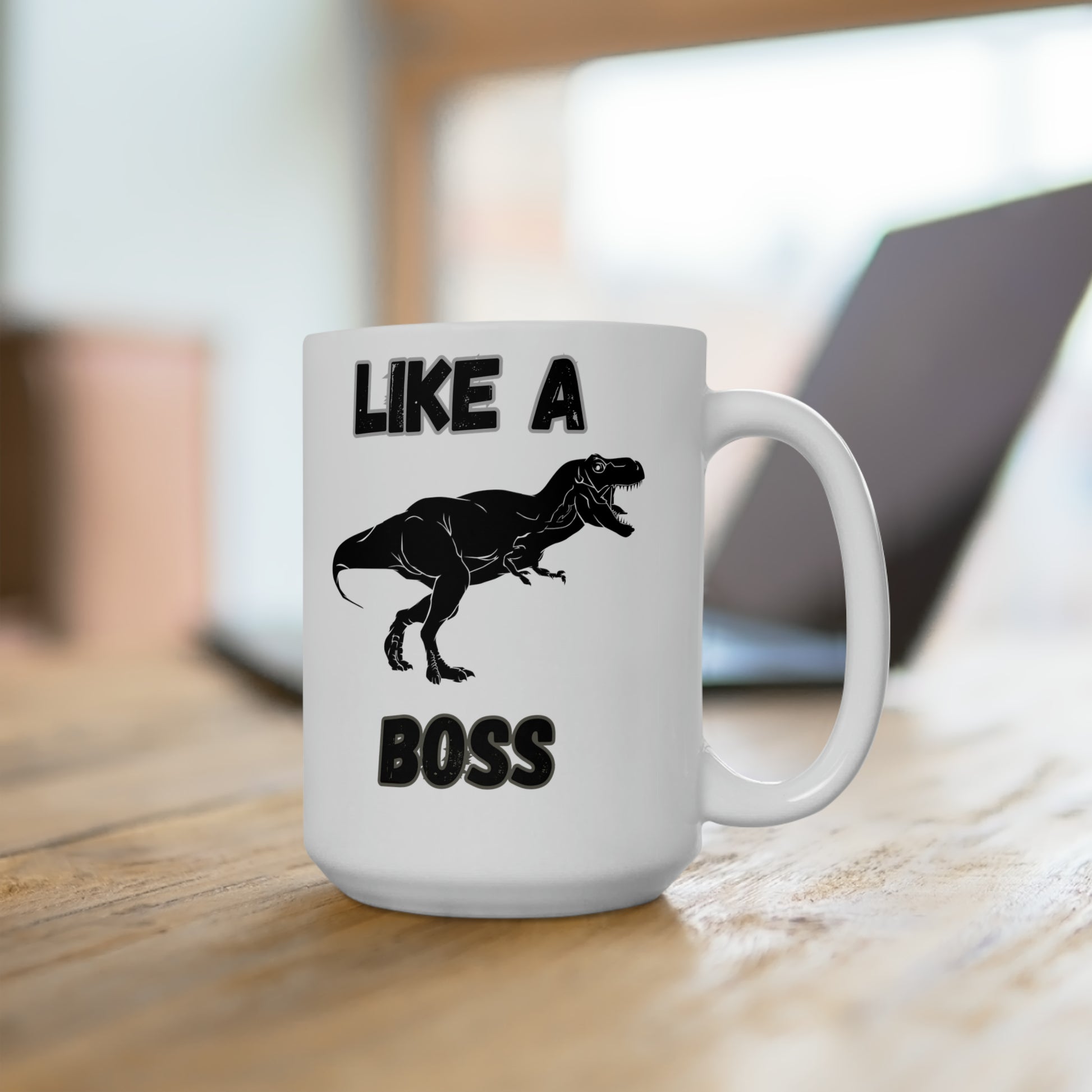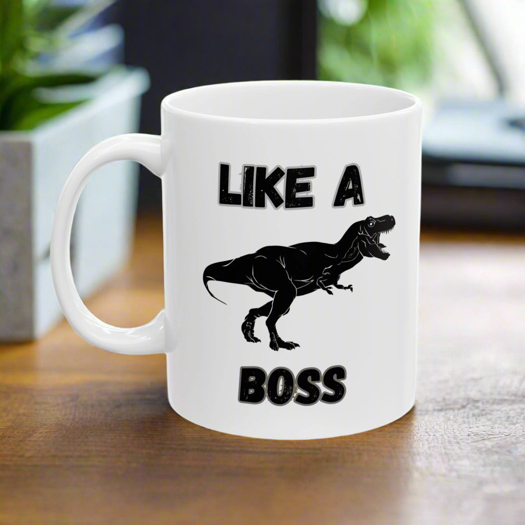 “Like A Boss” T-Rex Ceramic Coffee Mug – Funny Dinosaur Mug for Jurassic Lovers