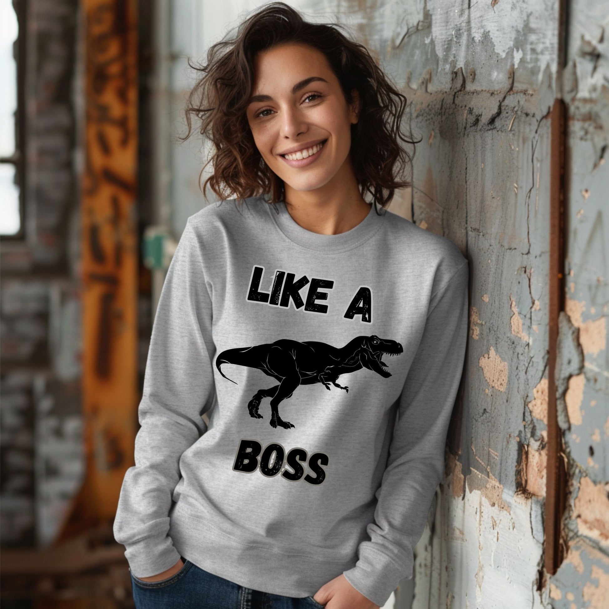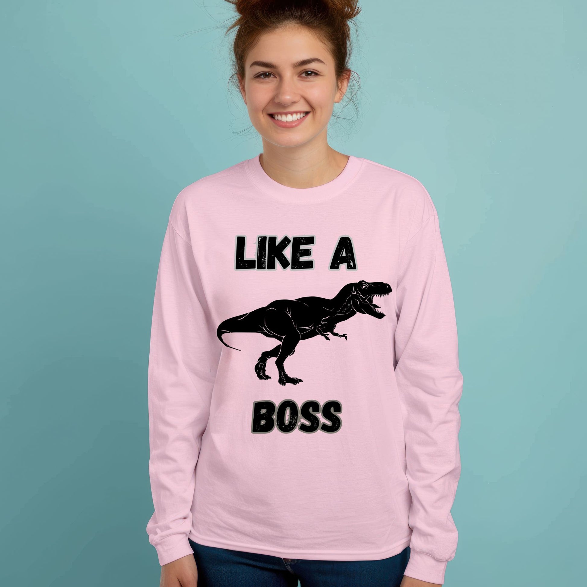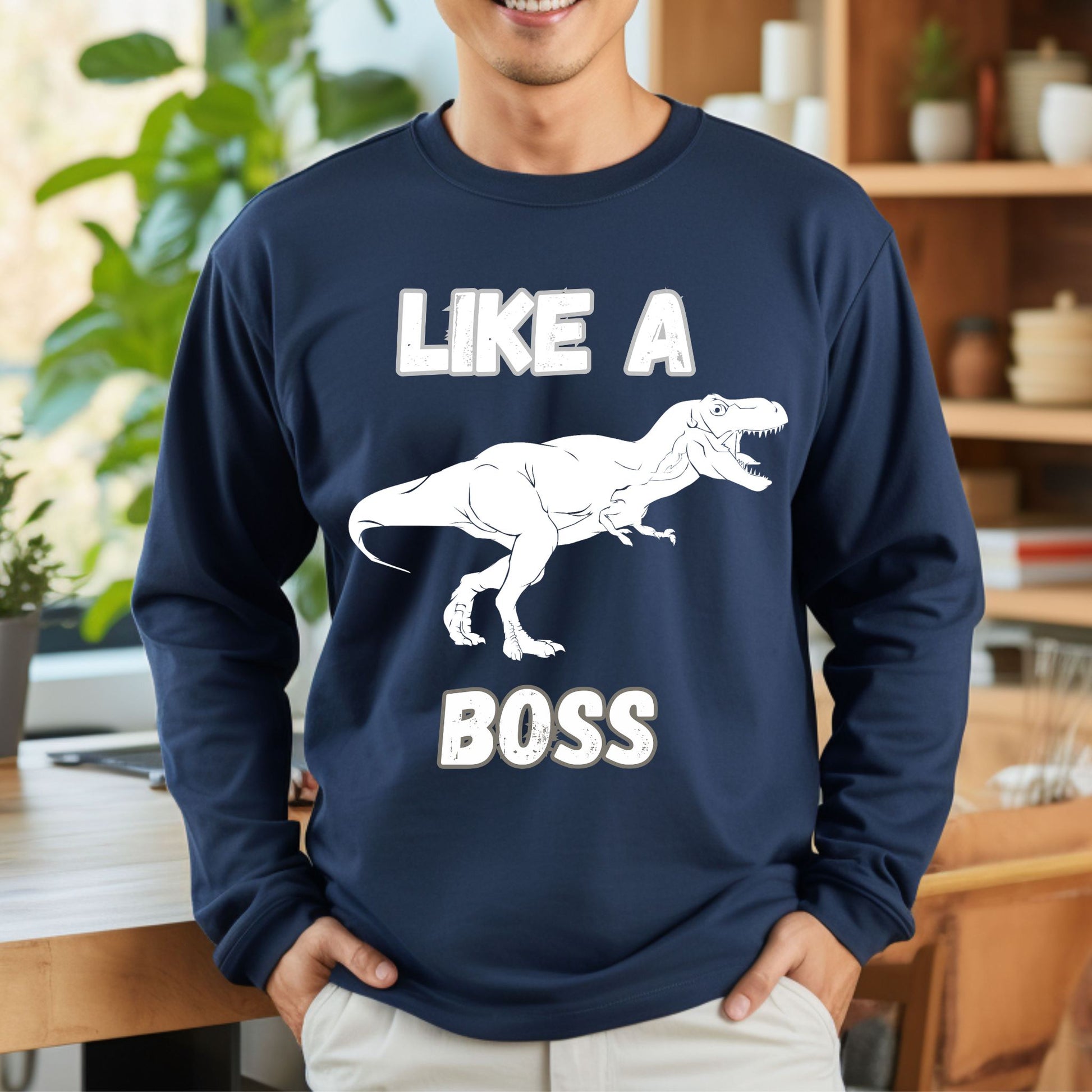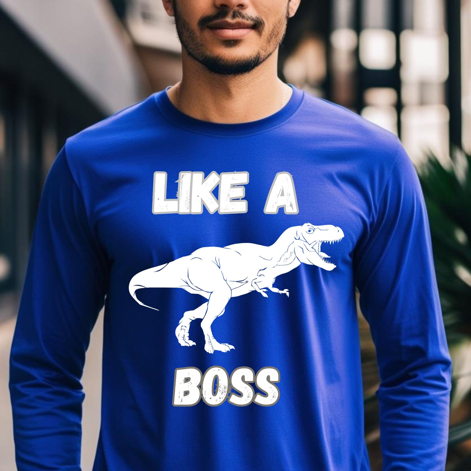 Like a Boss T-Rex T-Shirt – Funny Tyrannosaurus Rex Dinosaur Graphic Tee Long Sleeve Tee