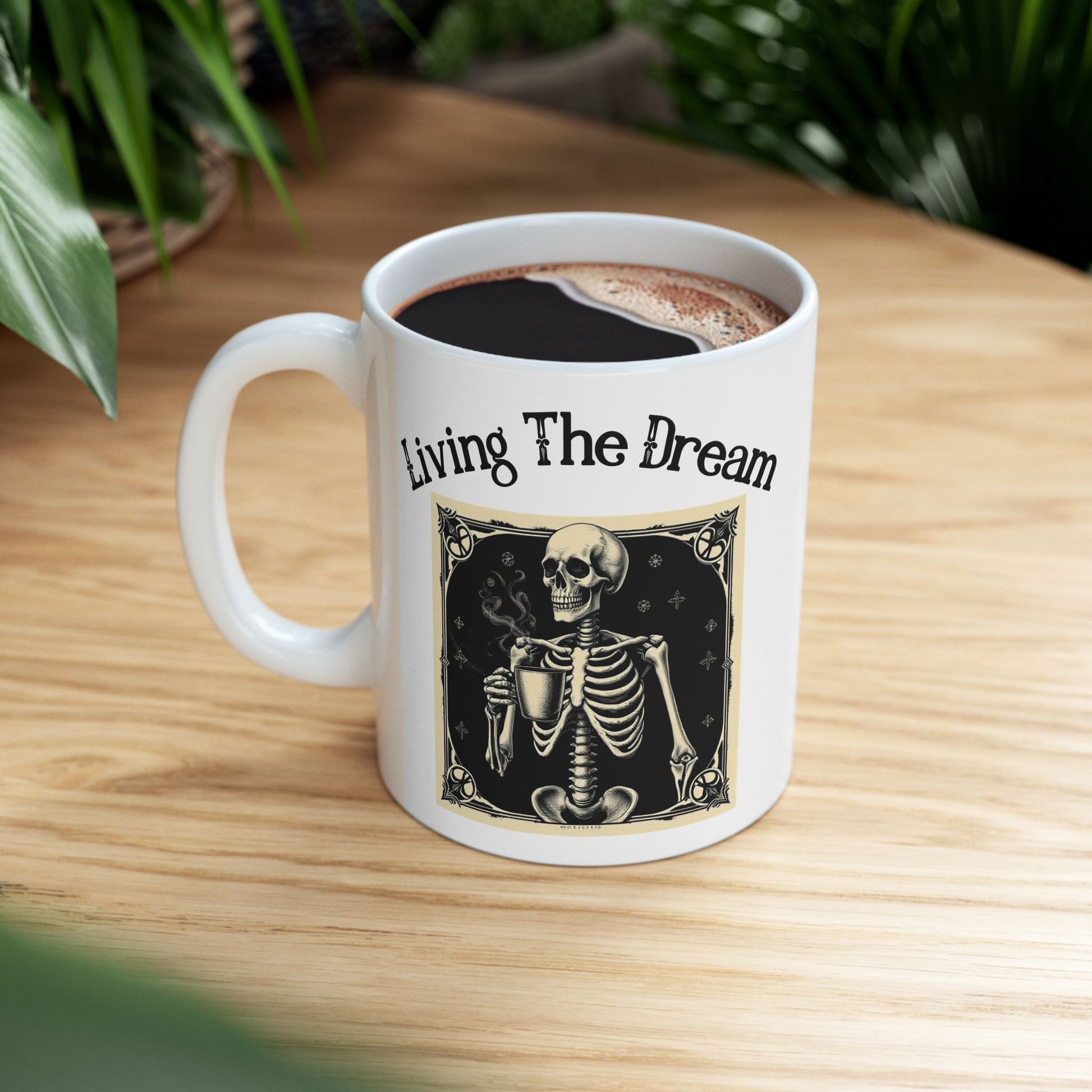 Living the Dream Mug Skeleton Graphic Mug Coffee Lover Gift