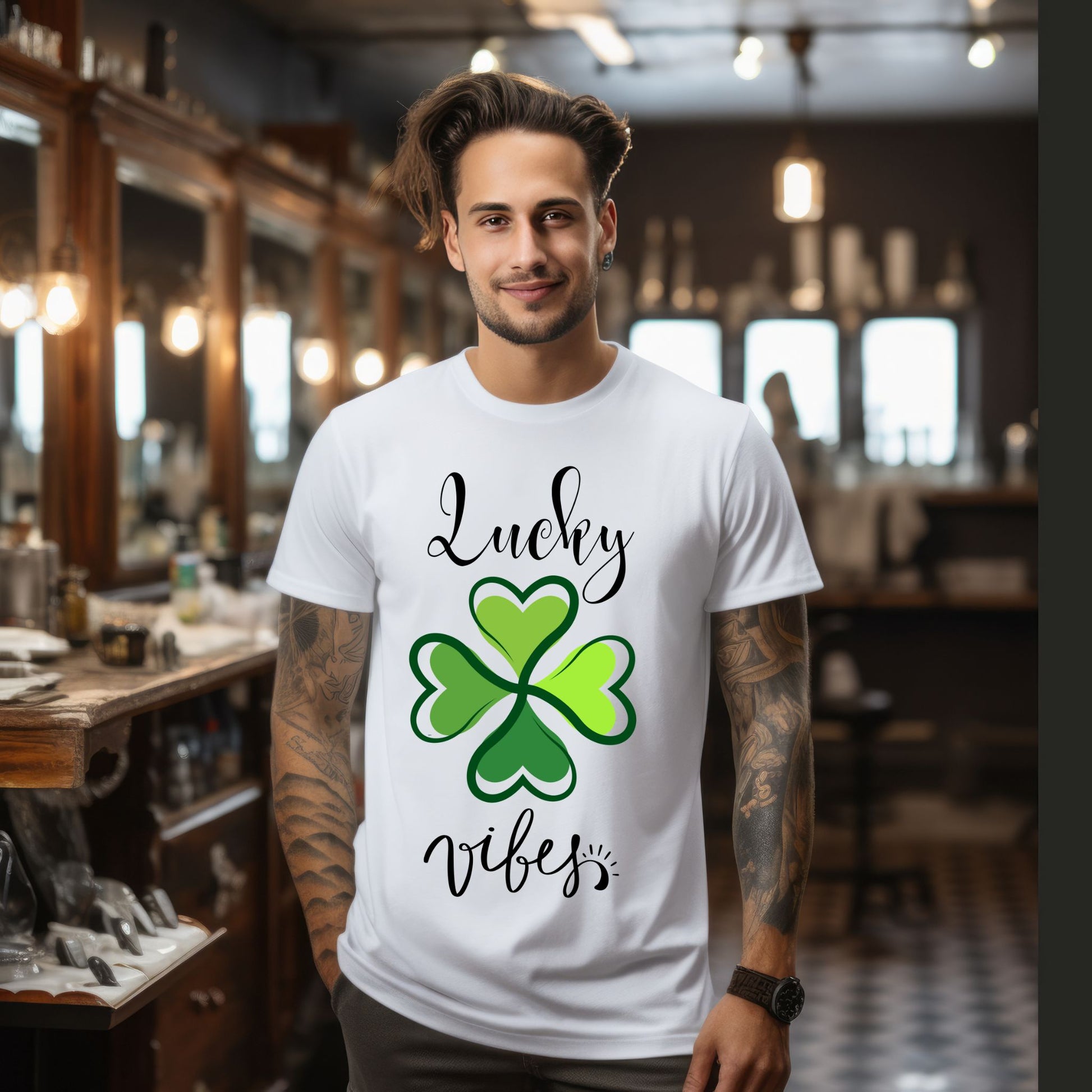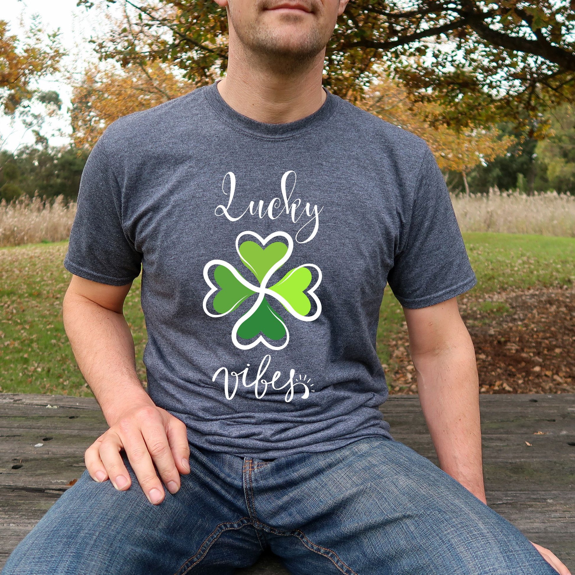 Lucky Vibes T-Shirt Heart Shamrock St. Patrick’s Day T-Shirt Cute Lucky Clover Graphic Tee