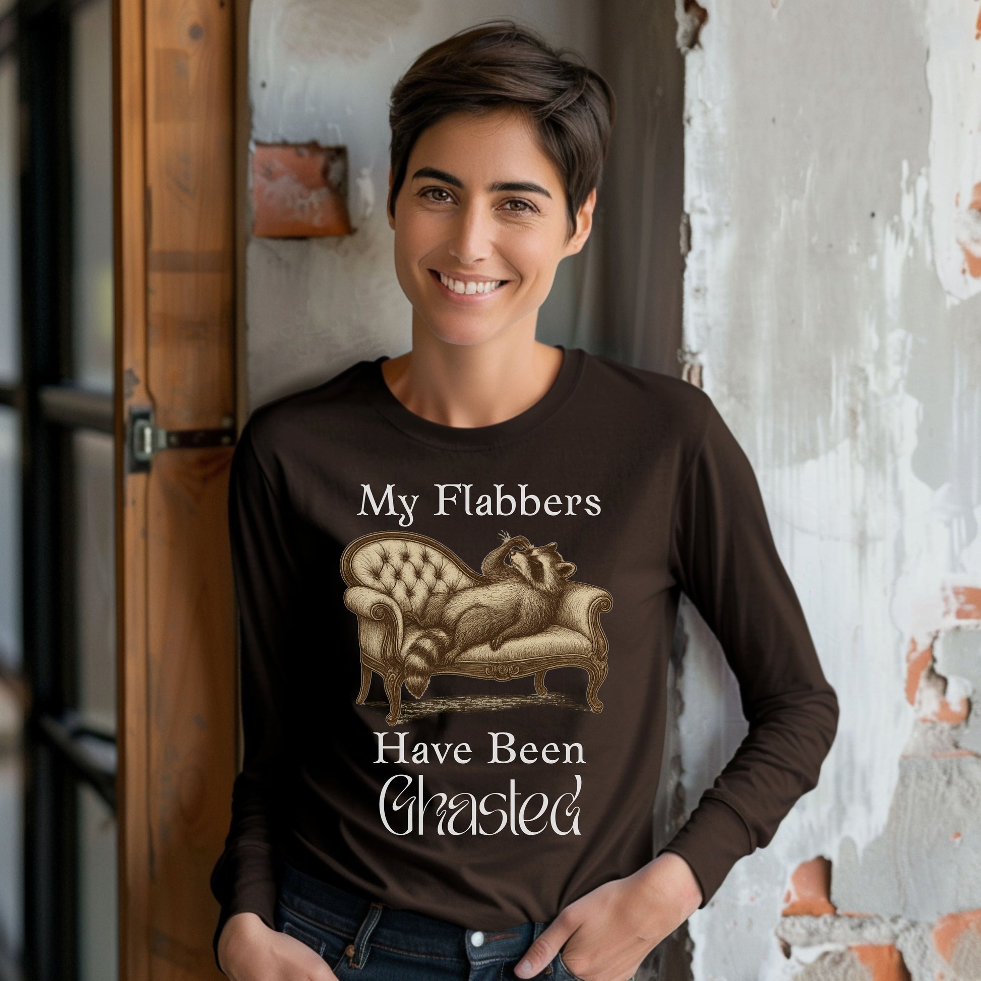 My Flabbers Have Been Ghasted Raccoon Long Sleeve T-Shirt – Funny Vintage-Style Animal Tee, Sarcastic Retro Shirt for Introverts & Humor Lovers