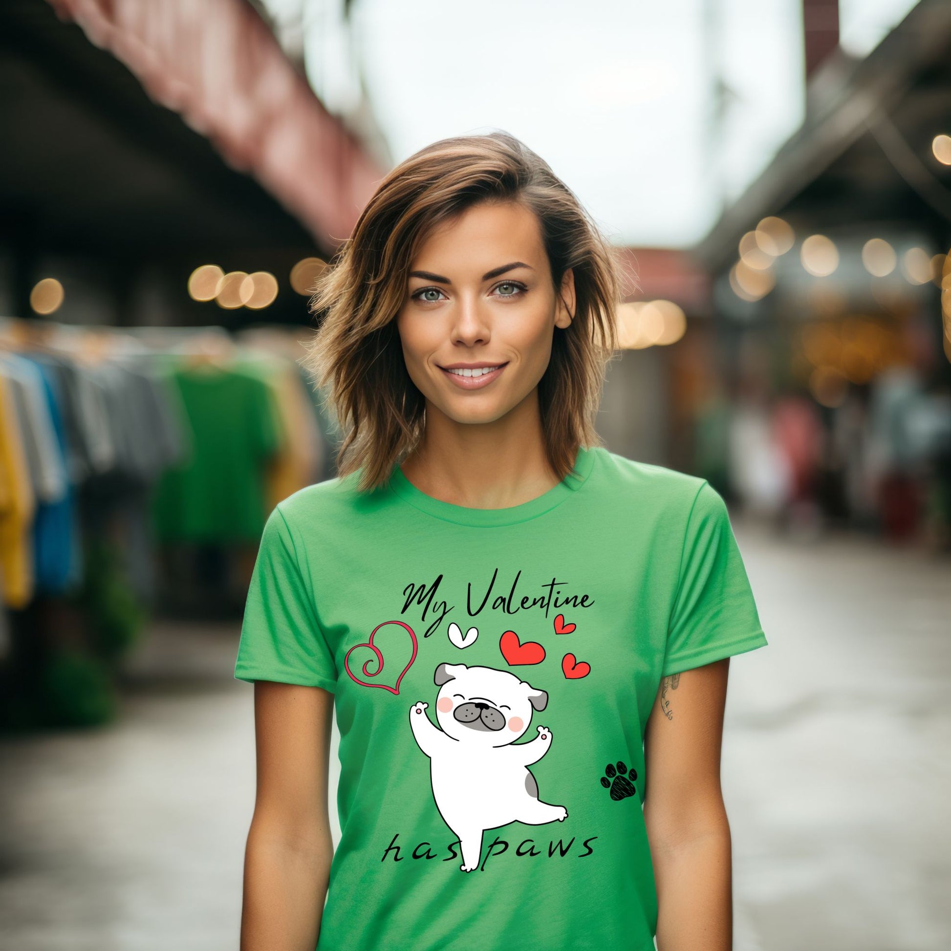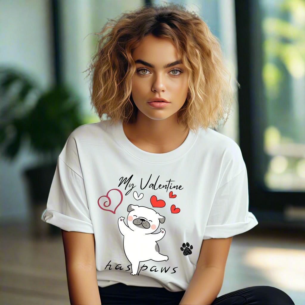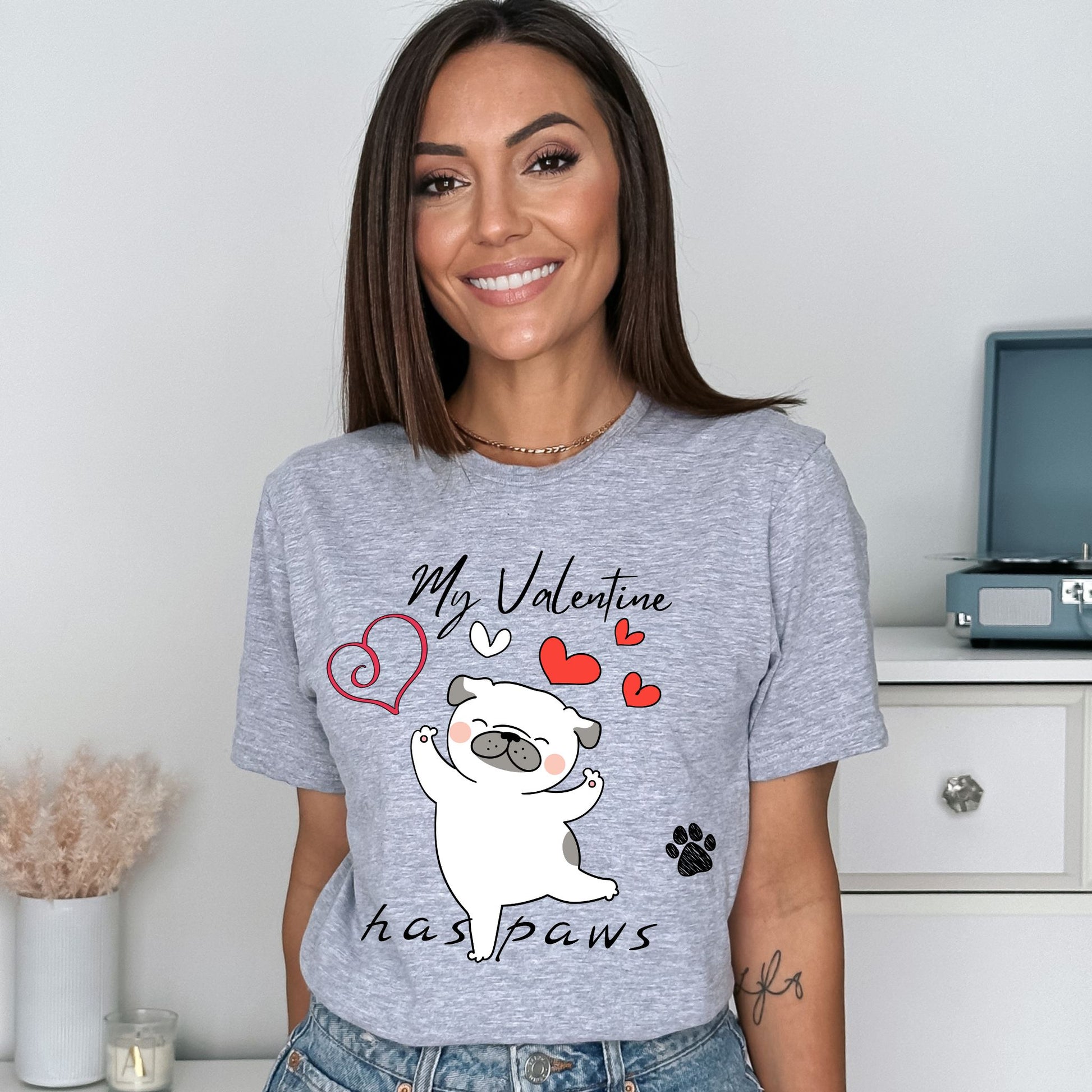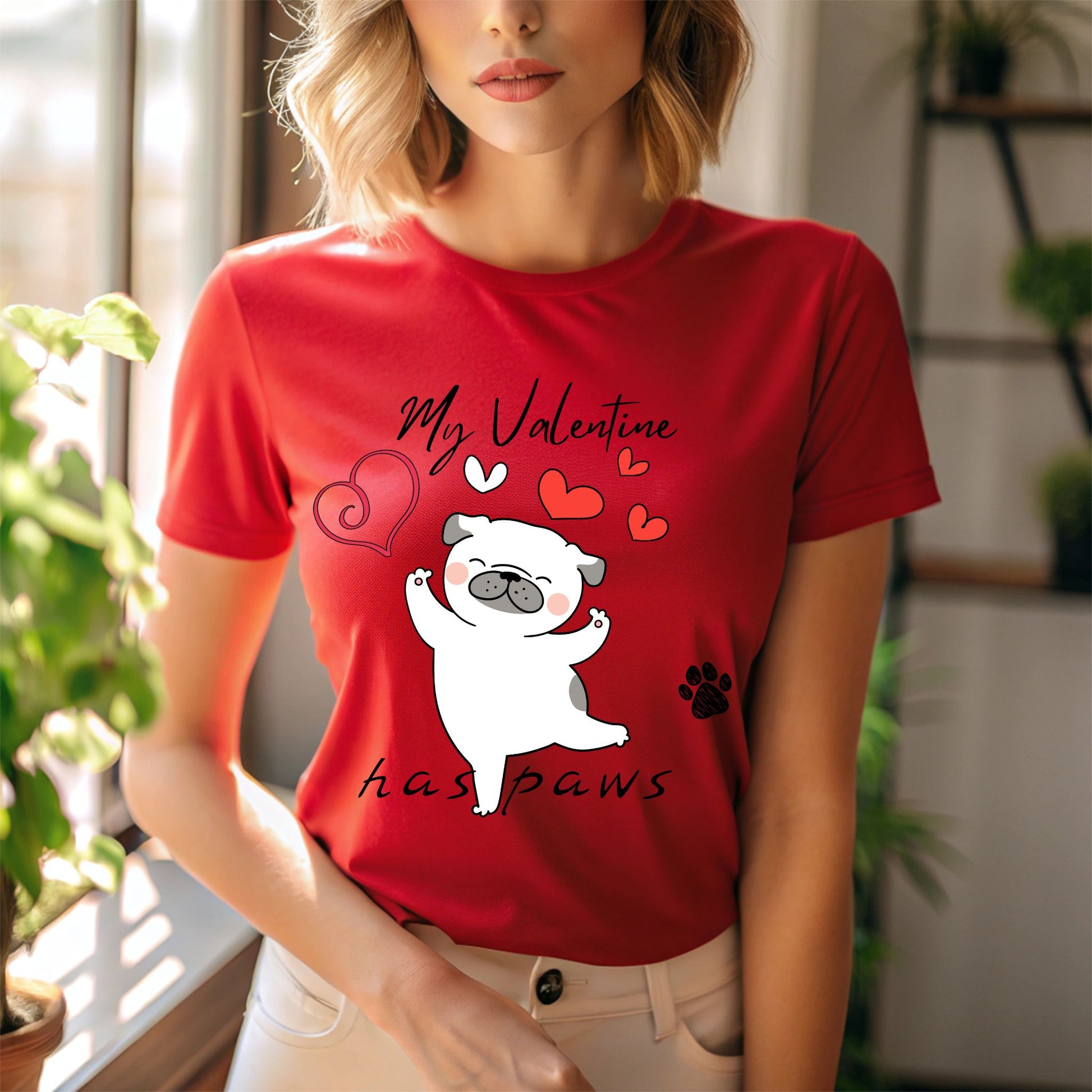 My Valentine Has Paws Dog T-Shirt Cute Dog Love T-Shirt Valentine’s Day Puppy with Hearts Graphic Tee for Dog Lovers