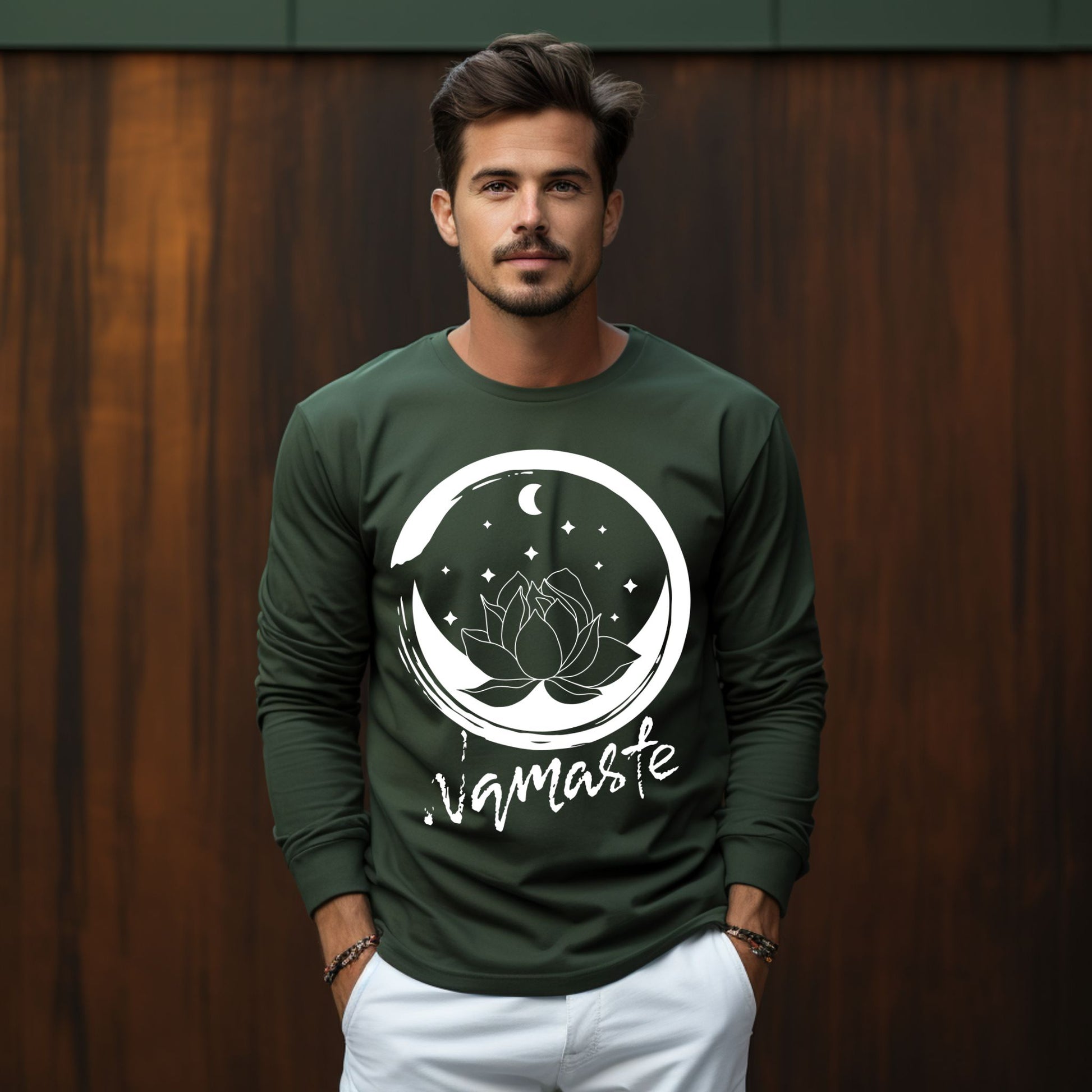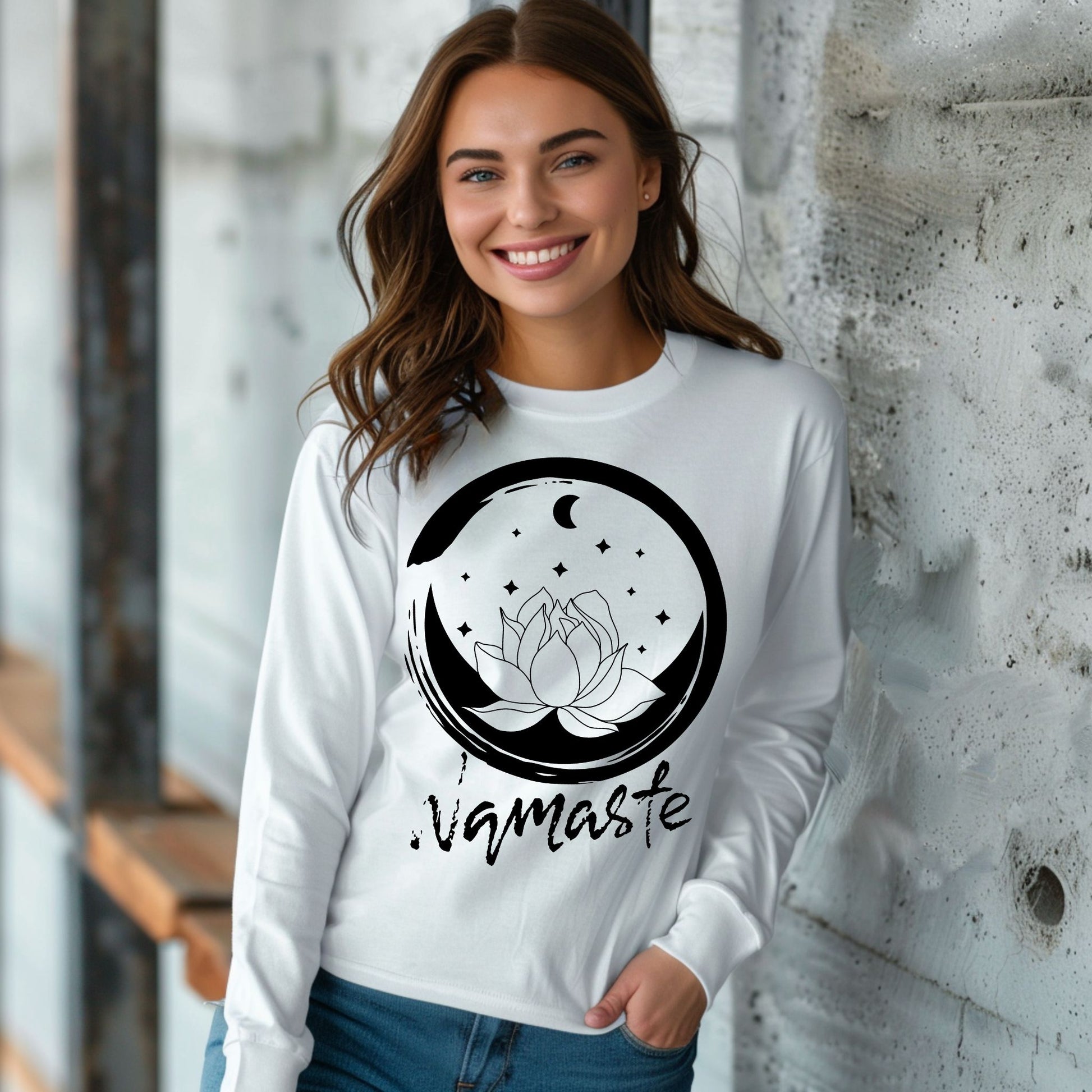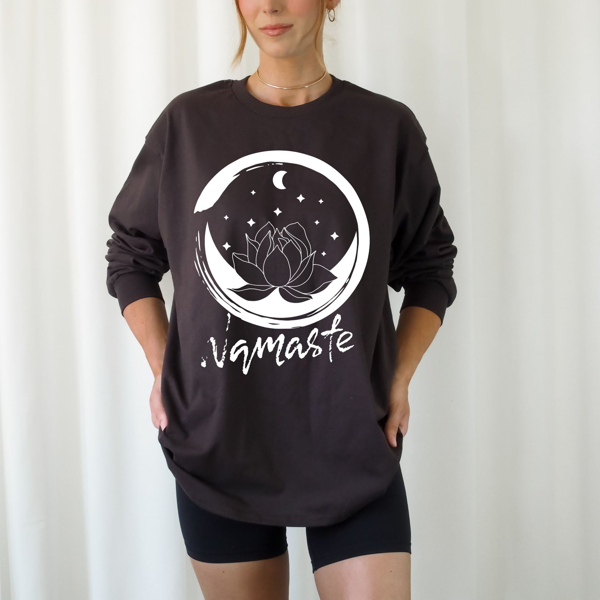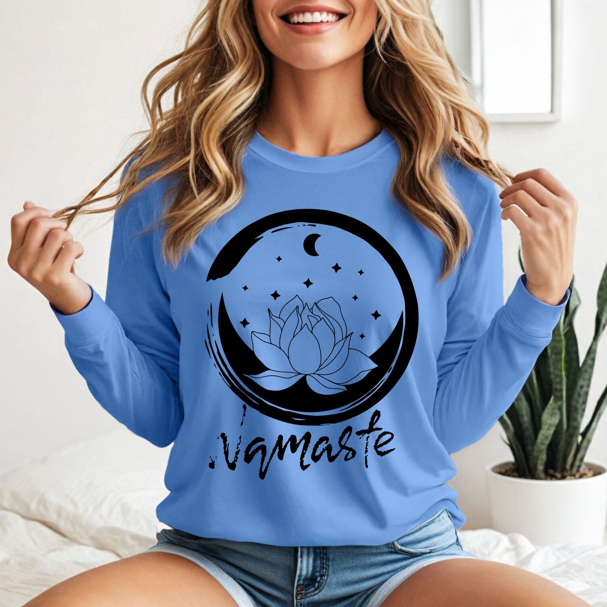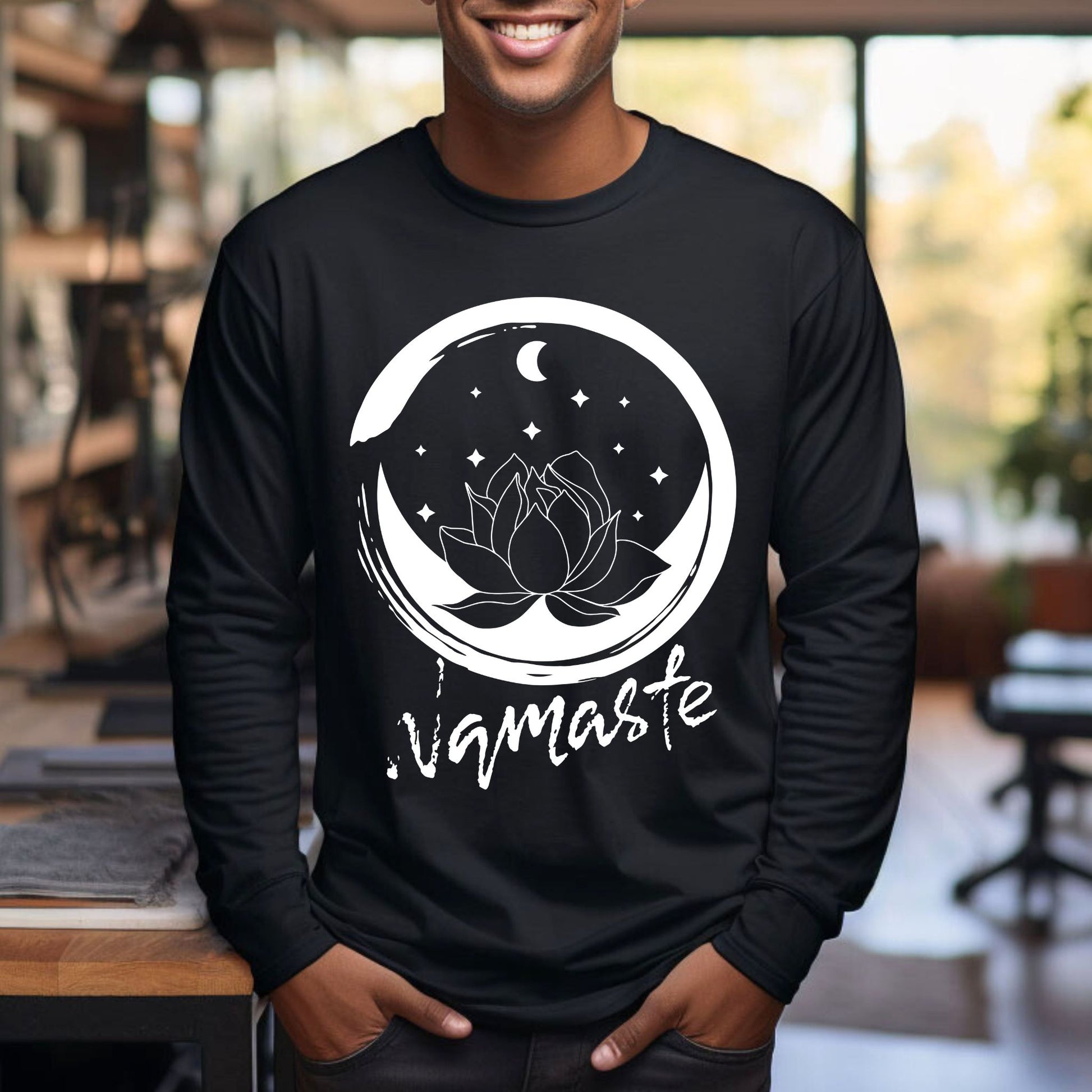 Namaste T-Shirt – Lotus Flower & Moon Graphic Tee for Yoga, Meditation & Mindfulness Lovers Yoga Shirt Meditation Shirt Yoga Gift Zen TShirt Long Sleeve Tee