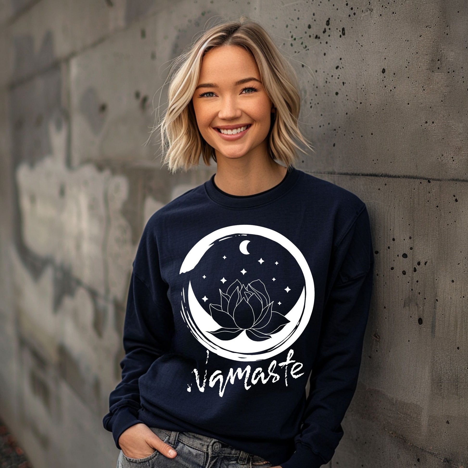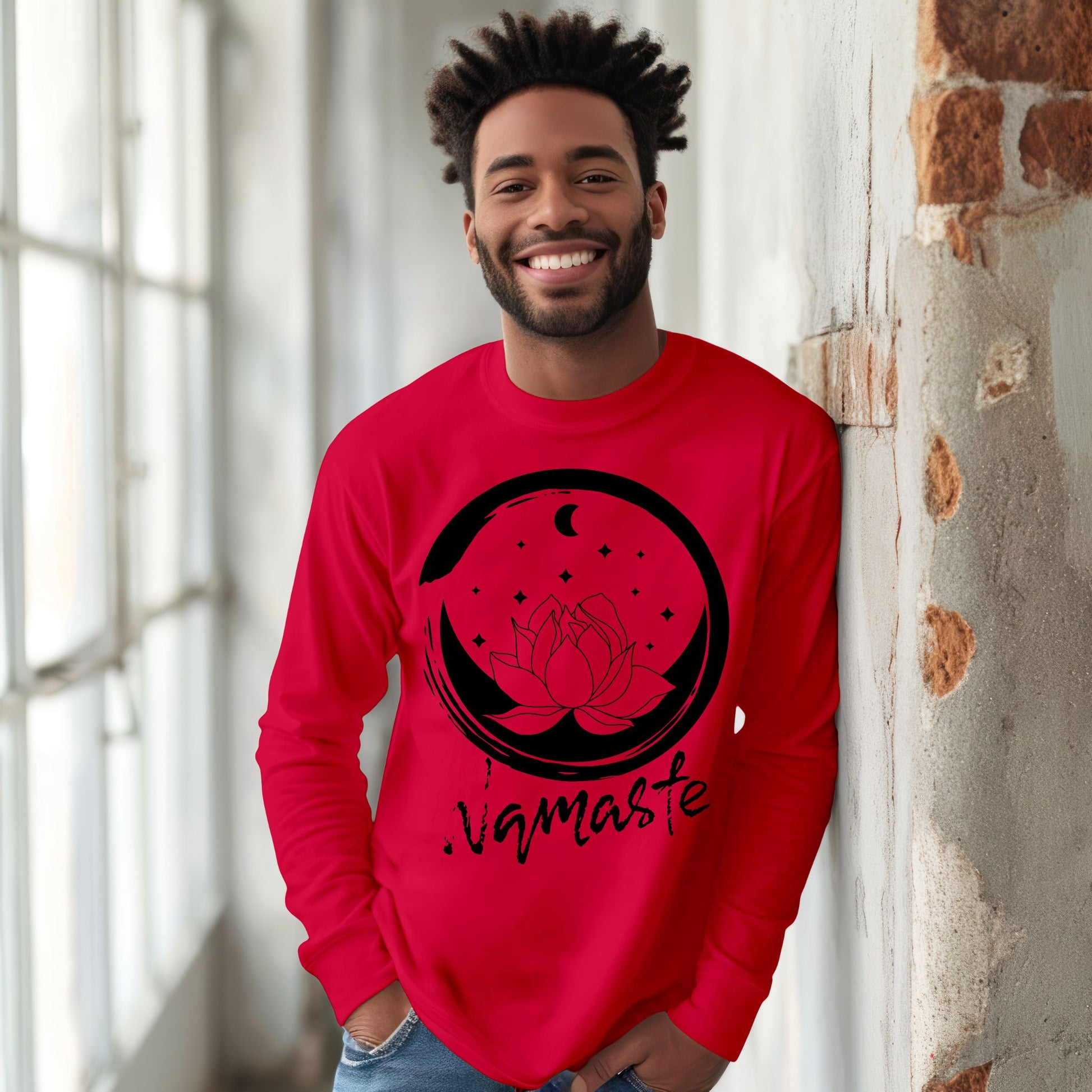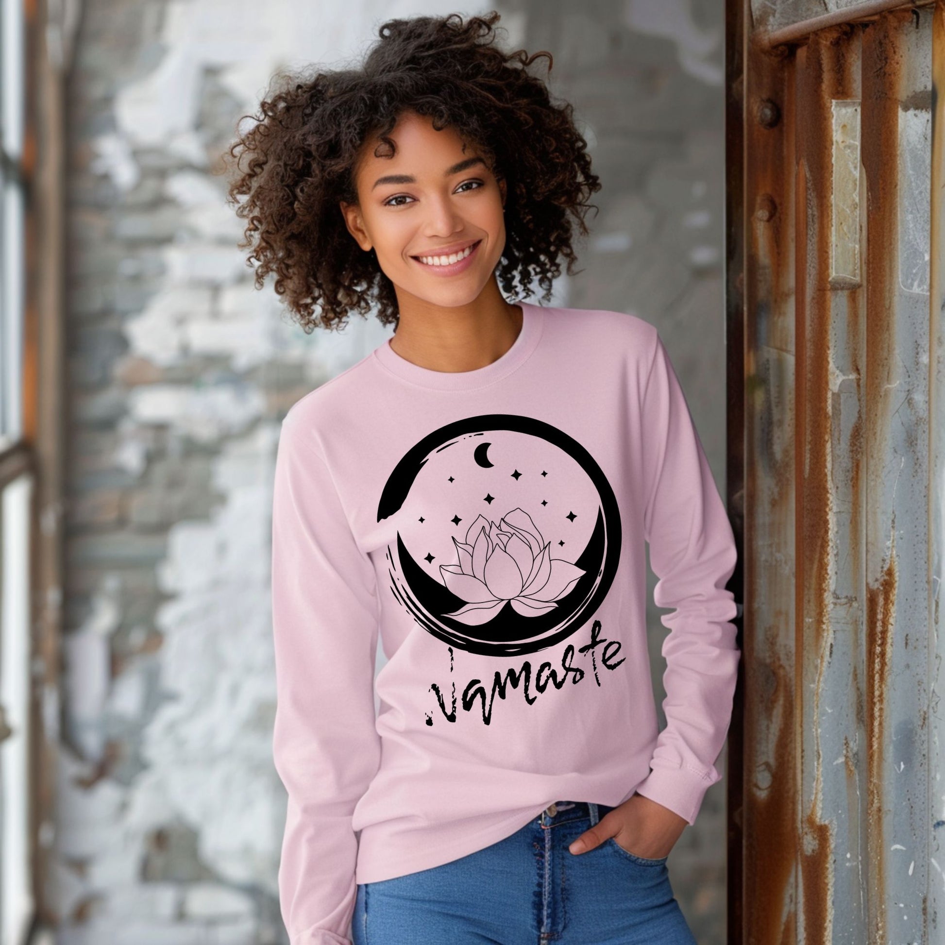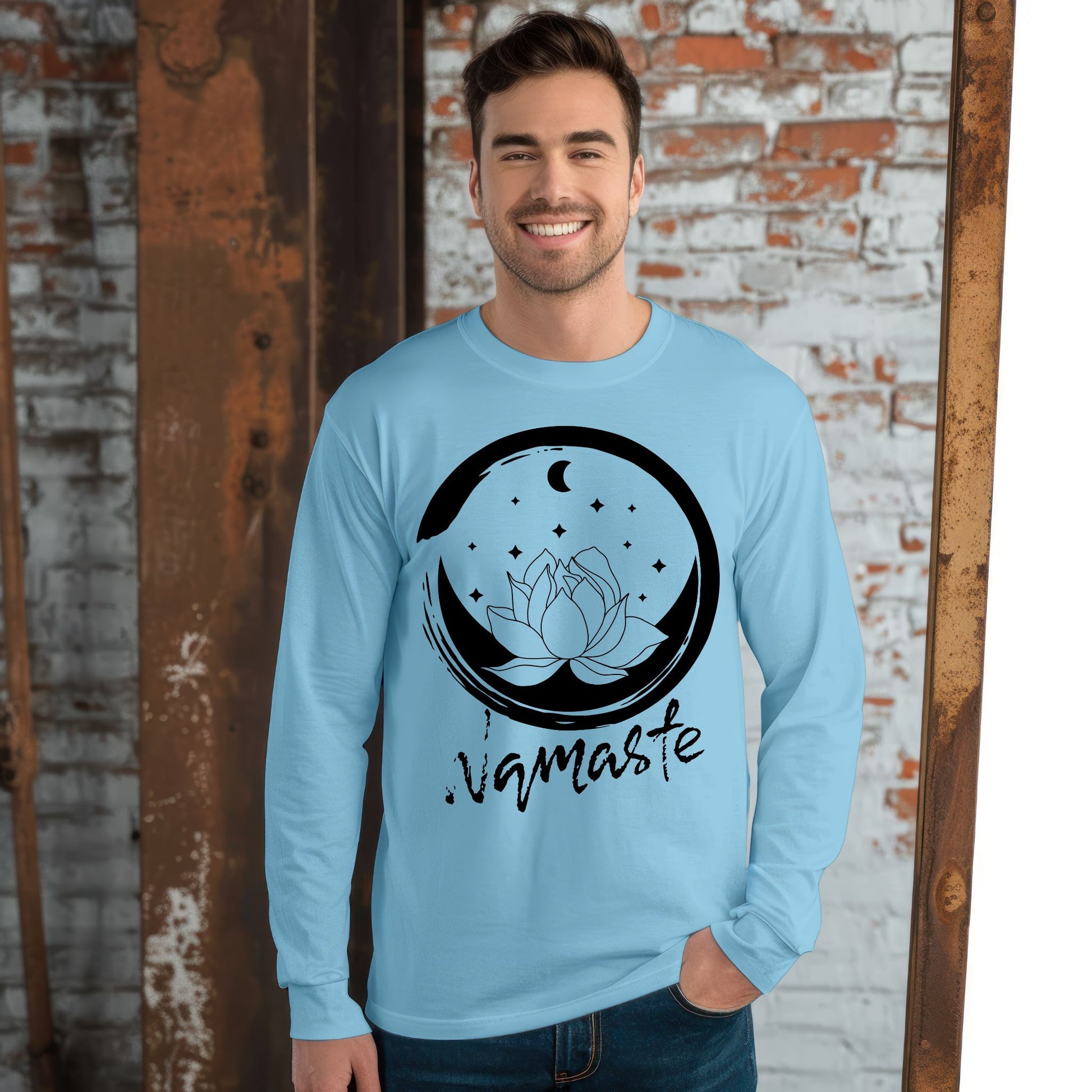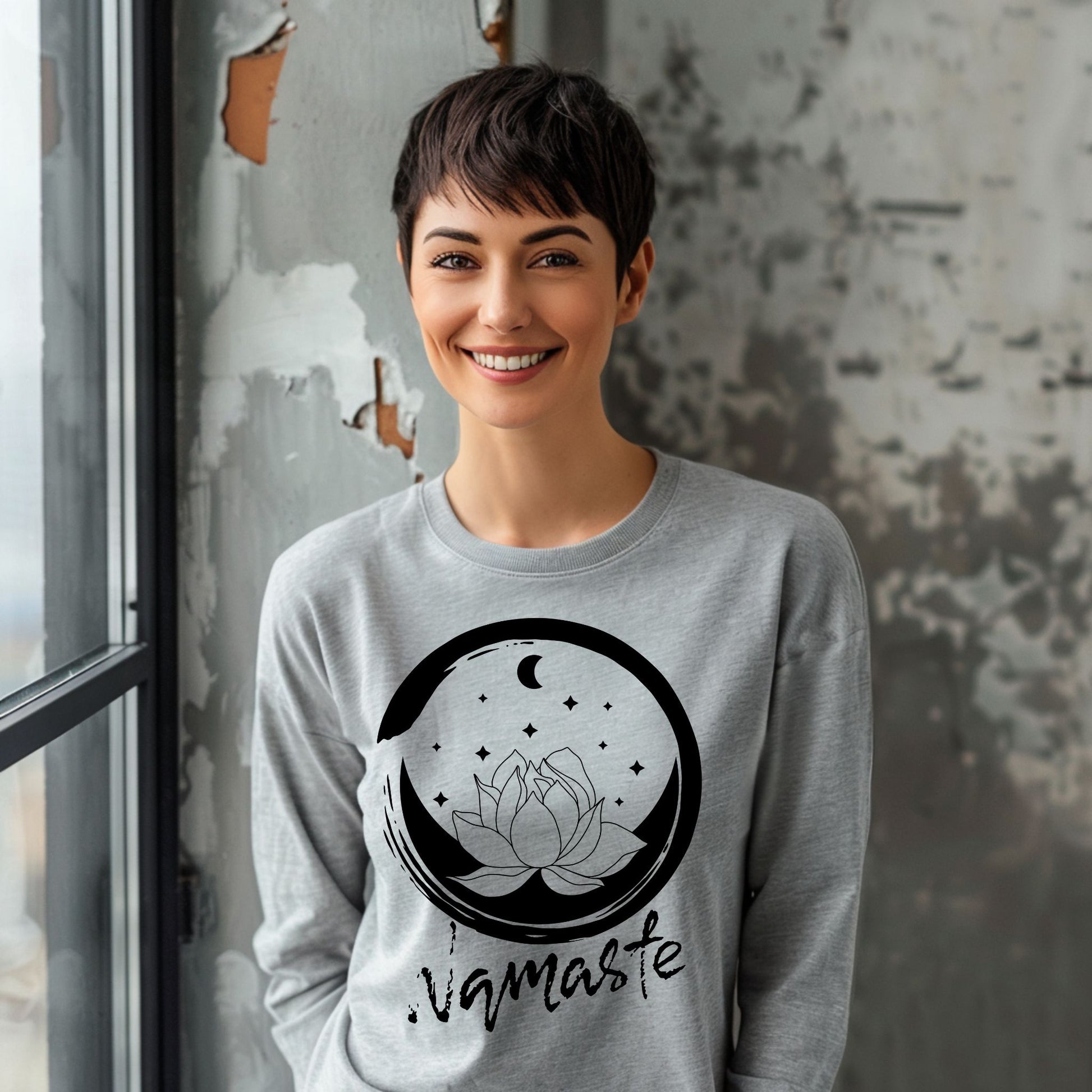 Namaste T-Shirt – Lotus Flower & Moon Graphic Tee for Yoga, Meditation & Mindfulness Lovers Yoga Shirt Meditation Shirt Yoga Gift Zen TShirt Long Sleeve Tee
