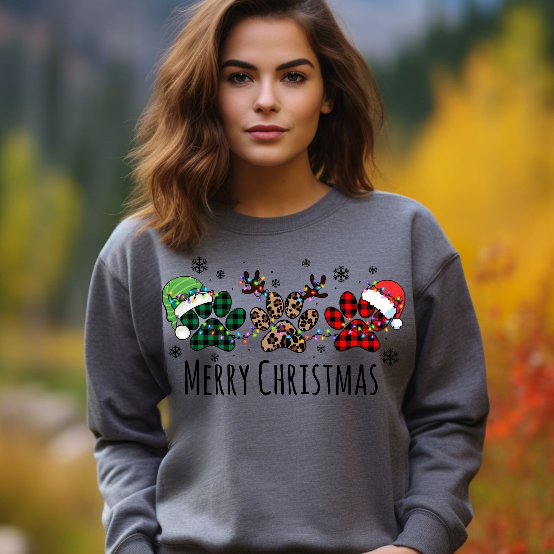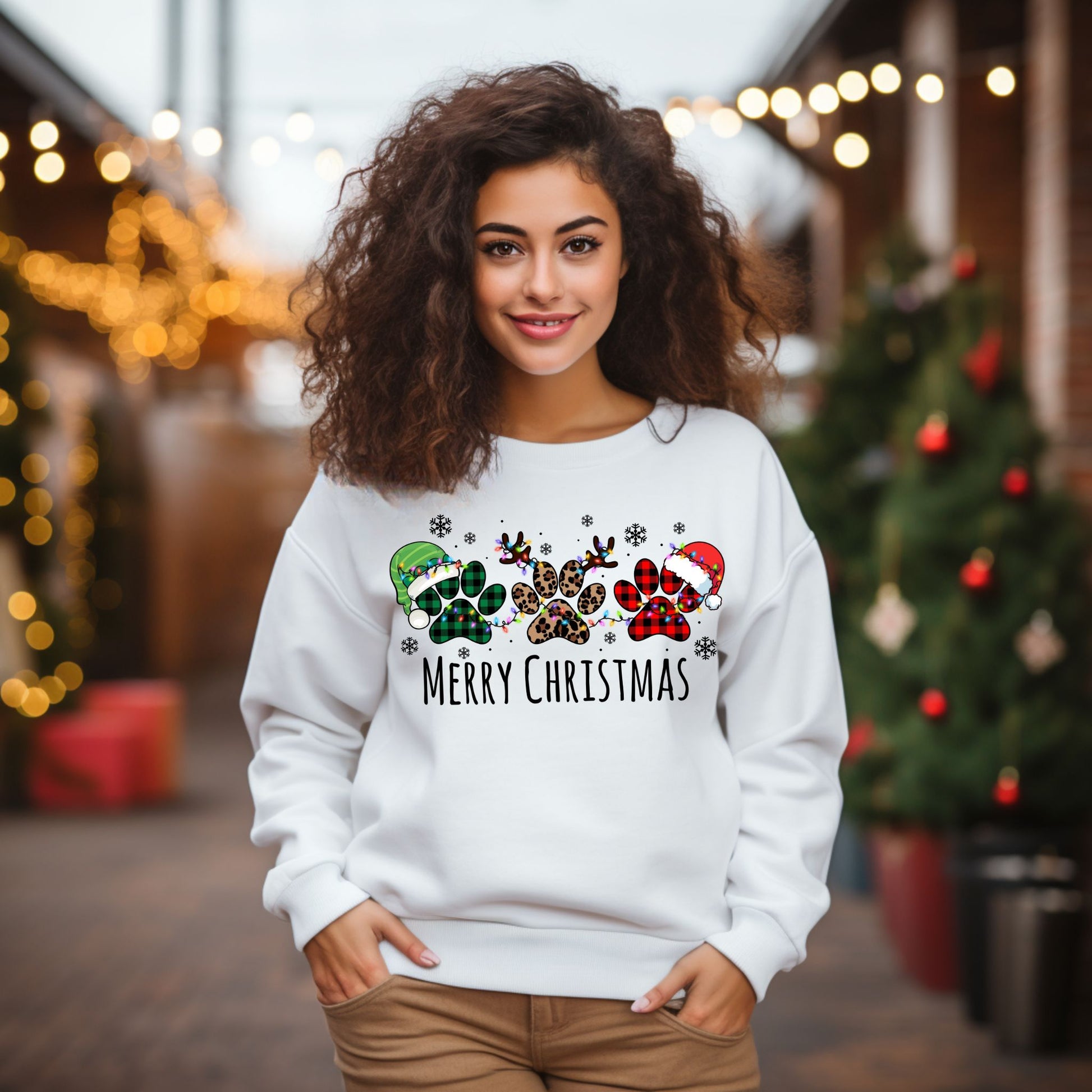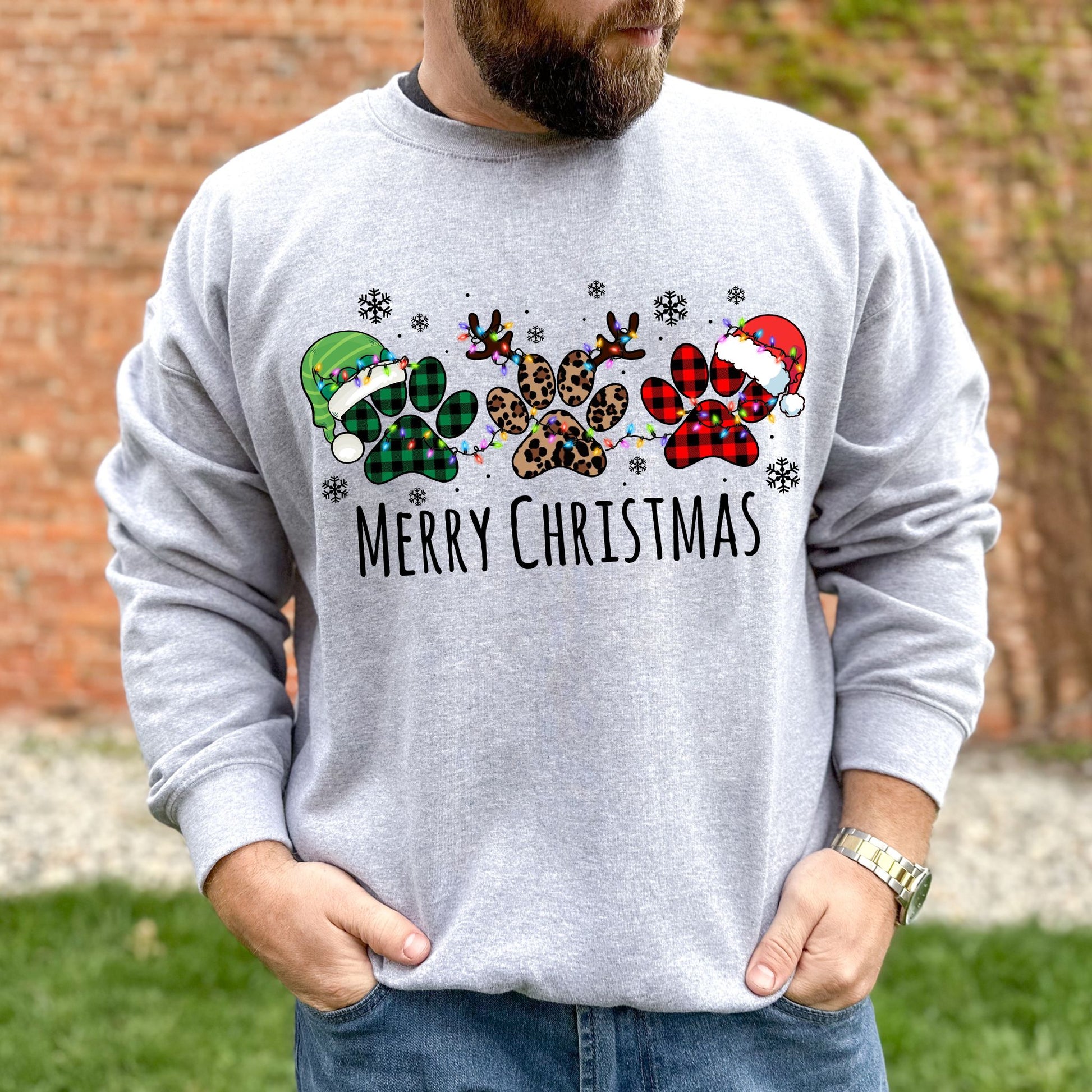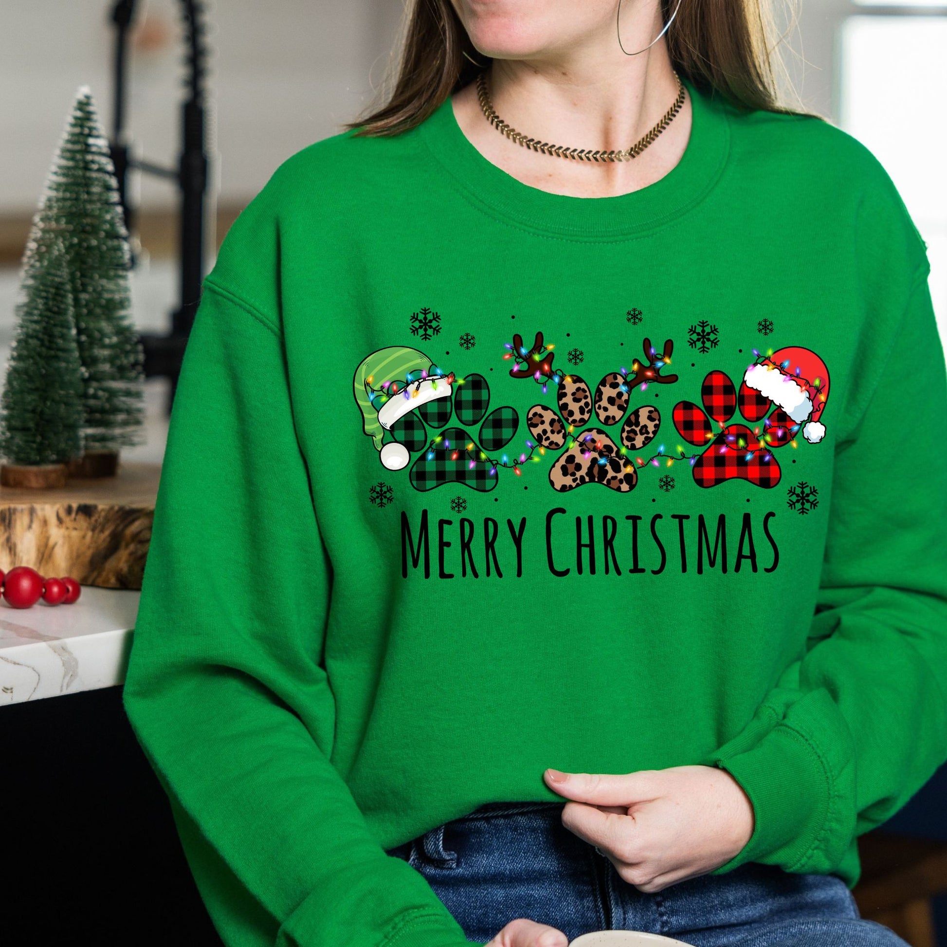 Pawprint Christmas Sweatshirt Merry Christmas Shirt Pet Lover Christmas Sweatshirt Festive Holiday Shirt