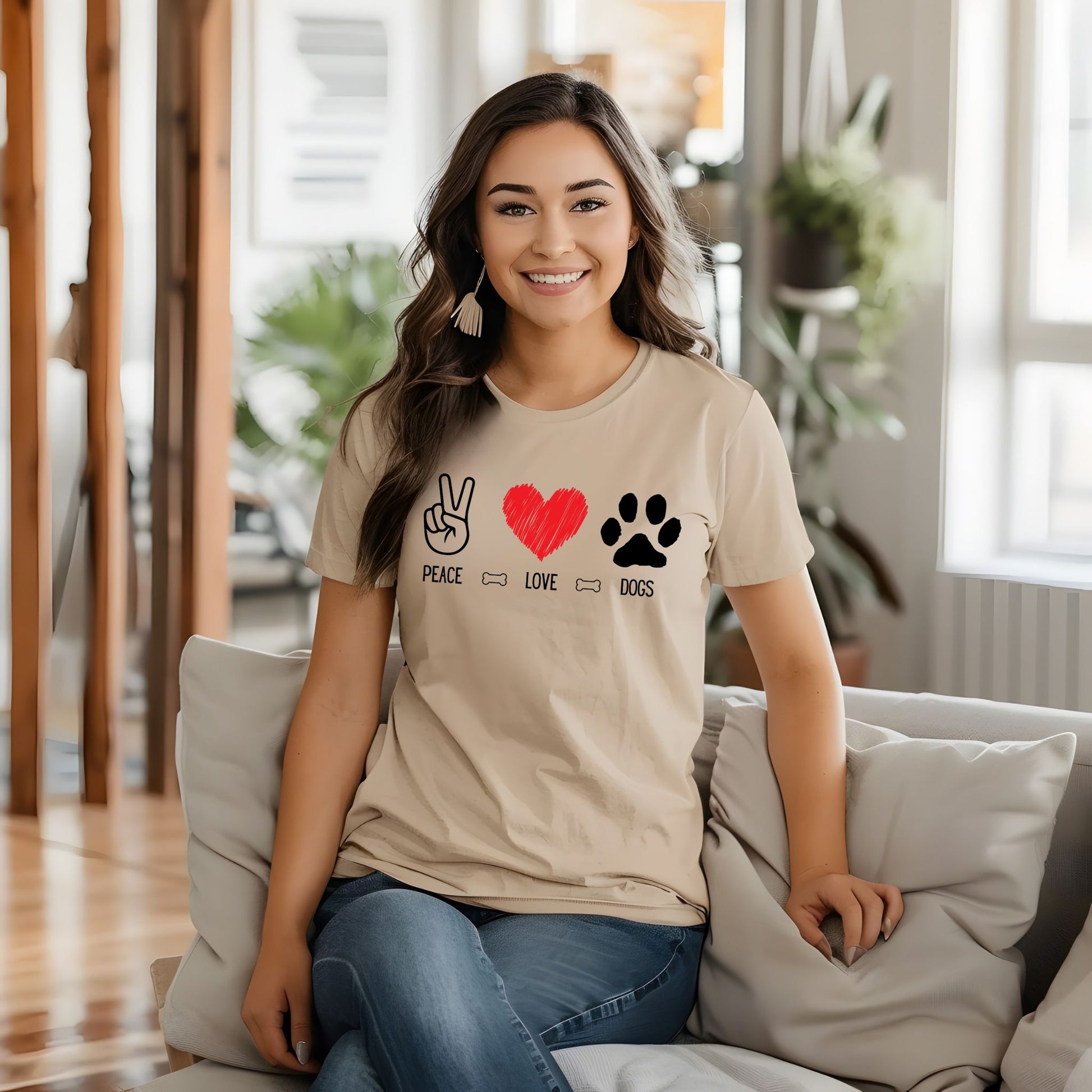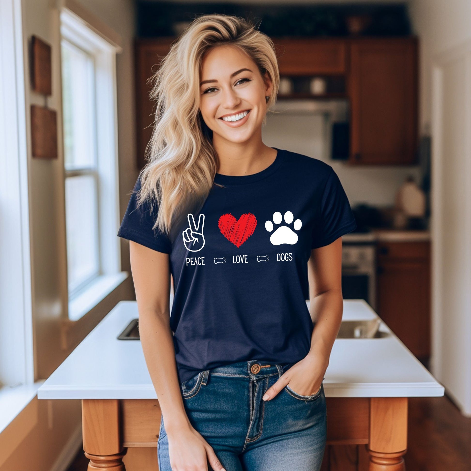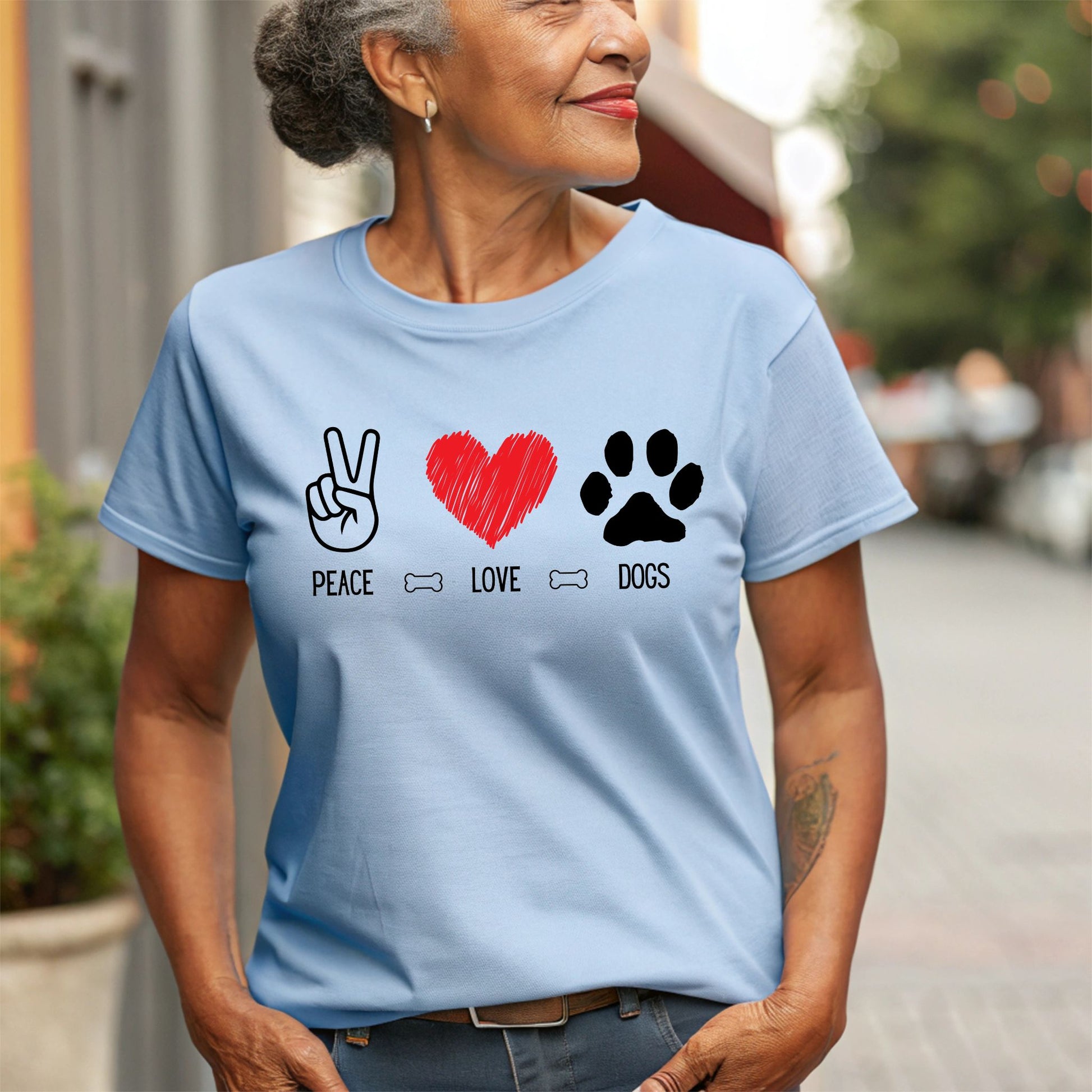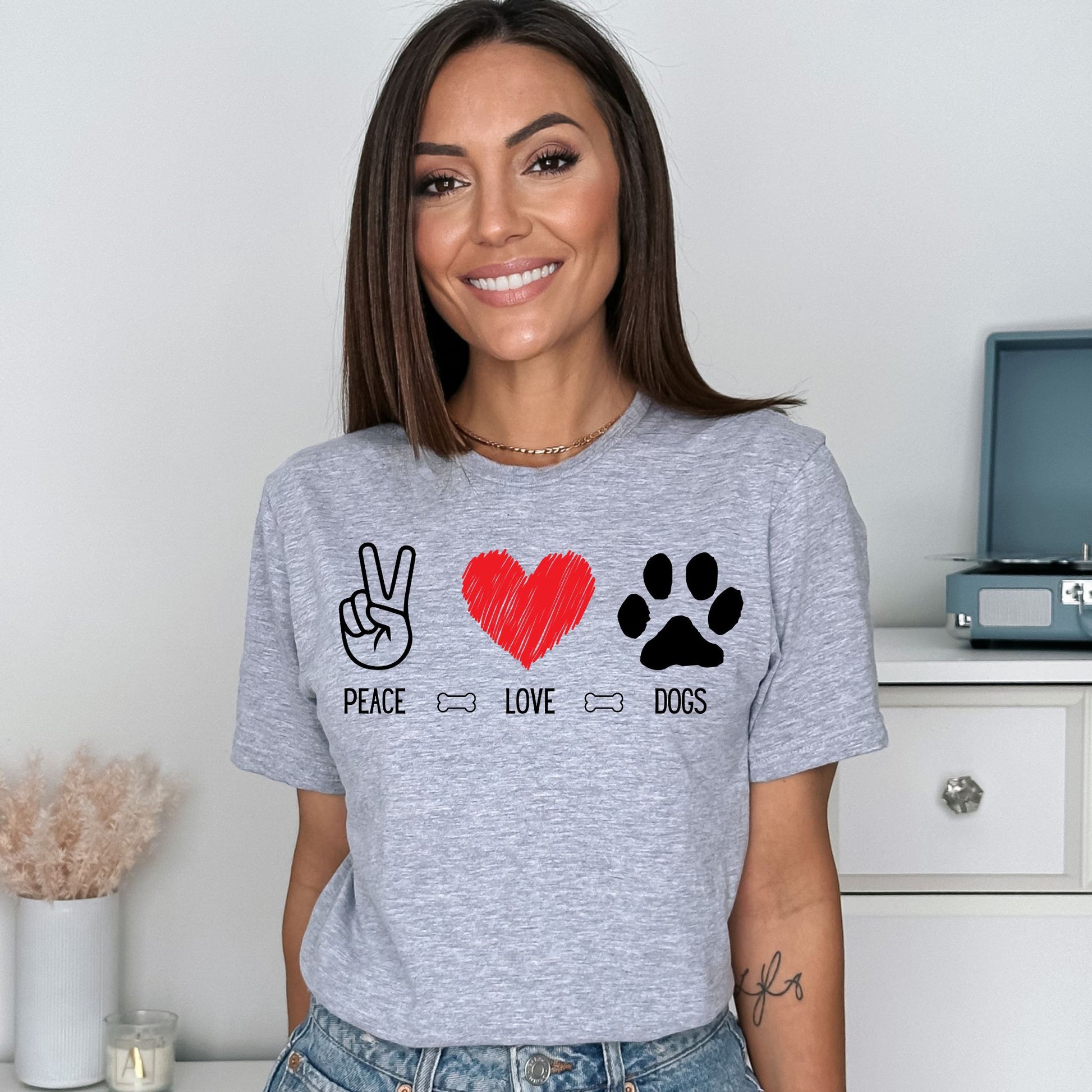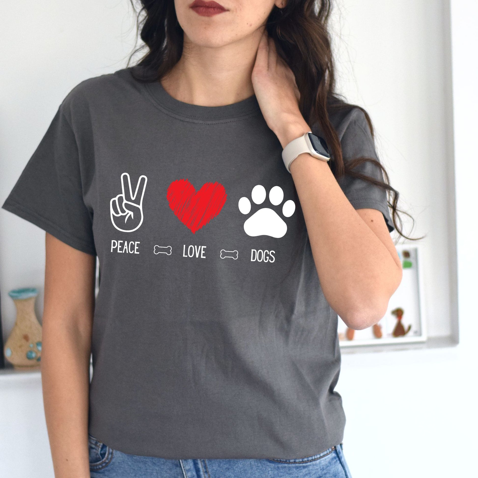 Peace Love Dogs Shirt, Dog Lover Shirt, Cute Dog Lover Tee with Peace Sign, Heart, and Paw Print Graphic