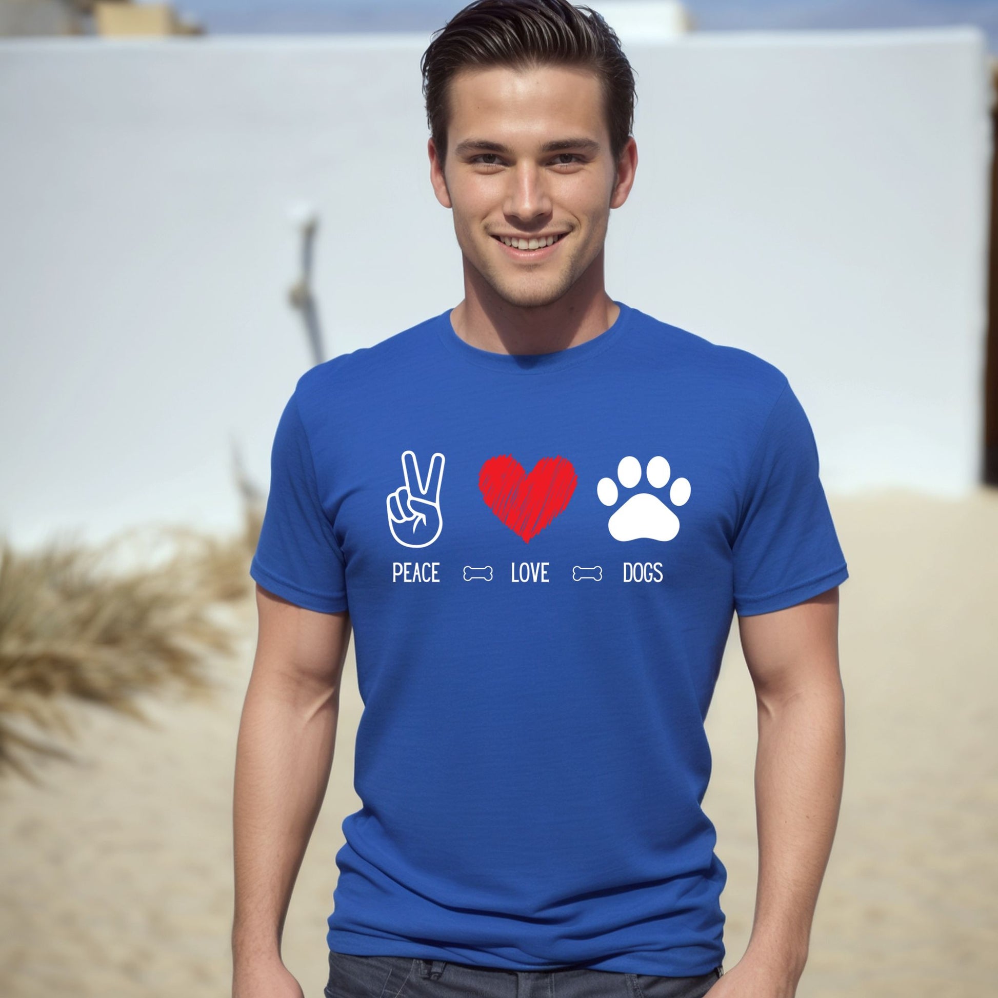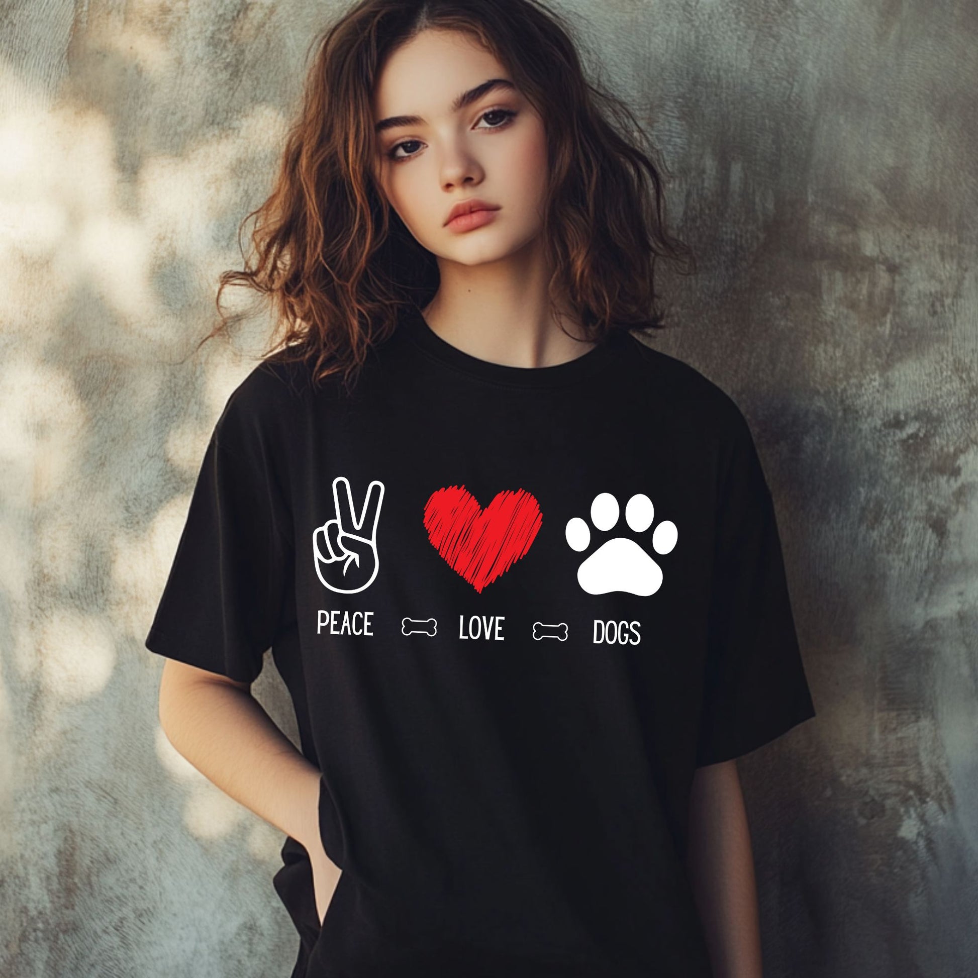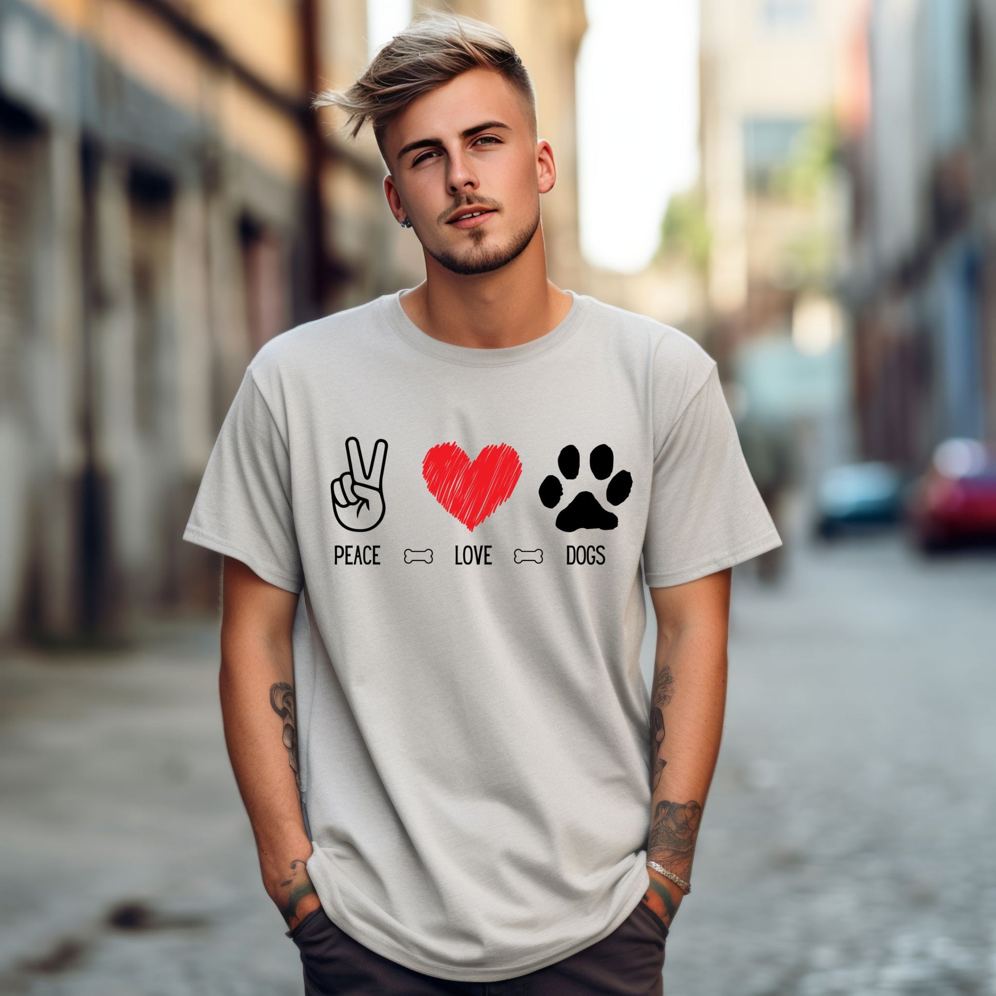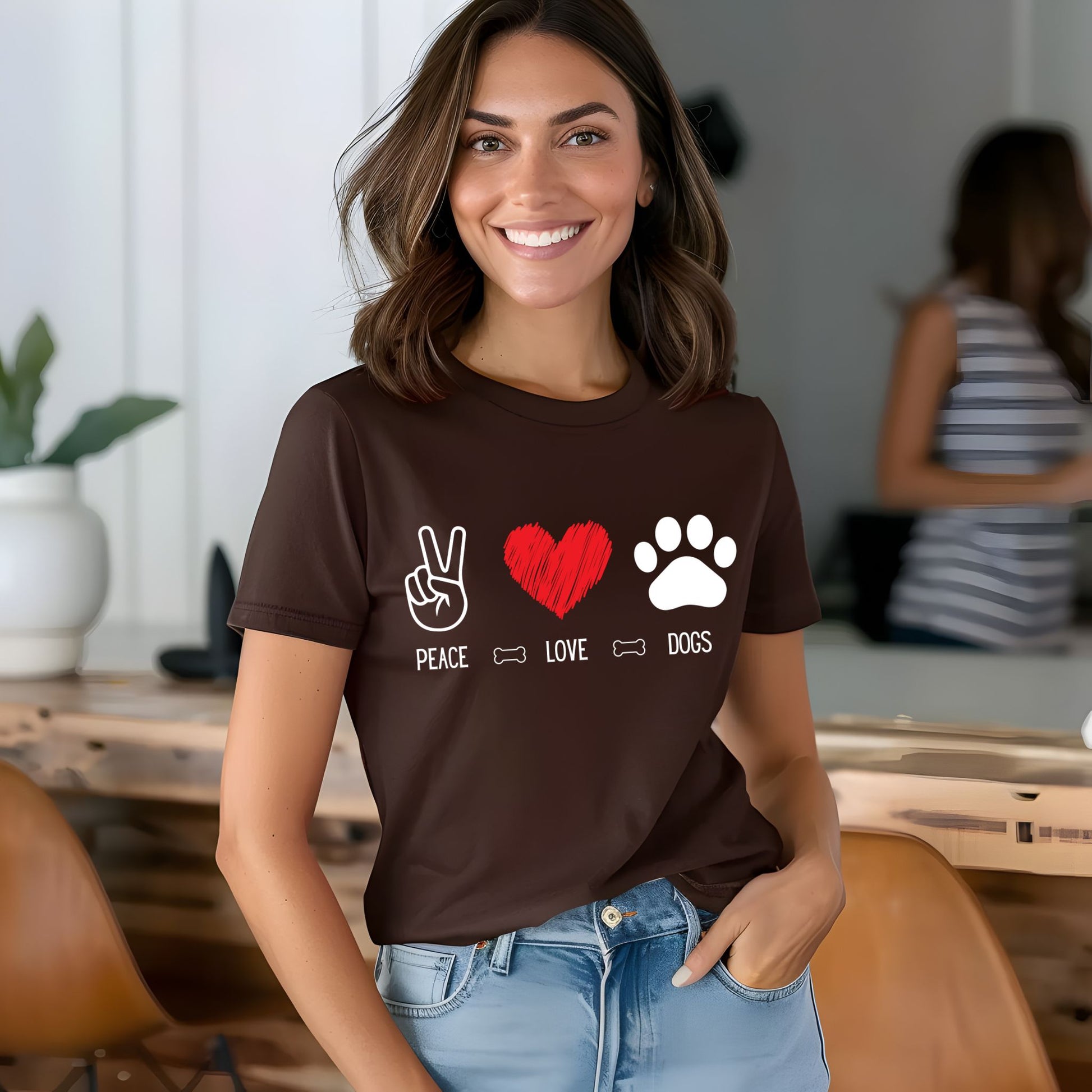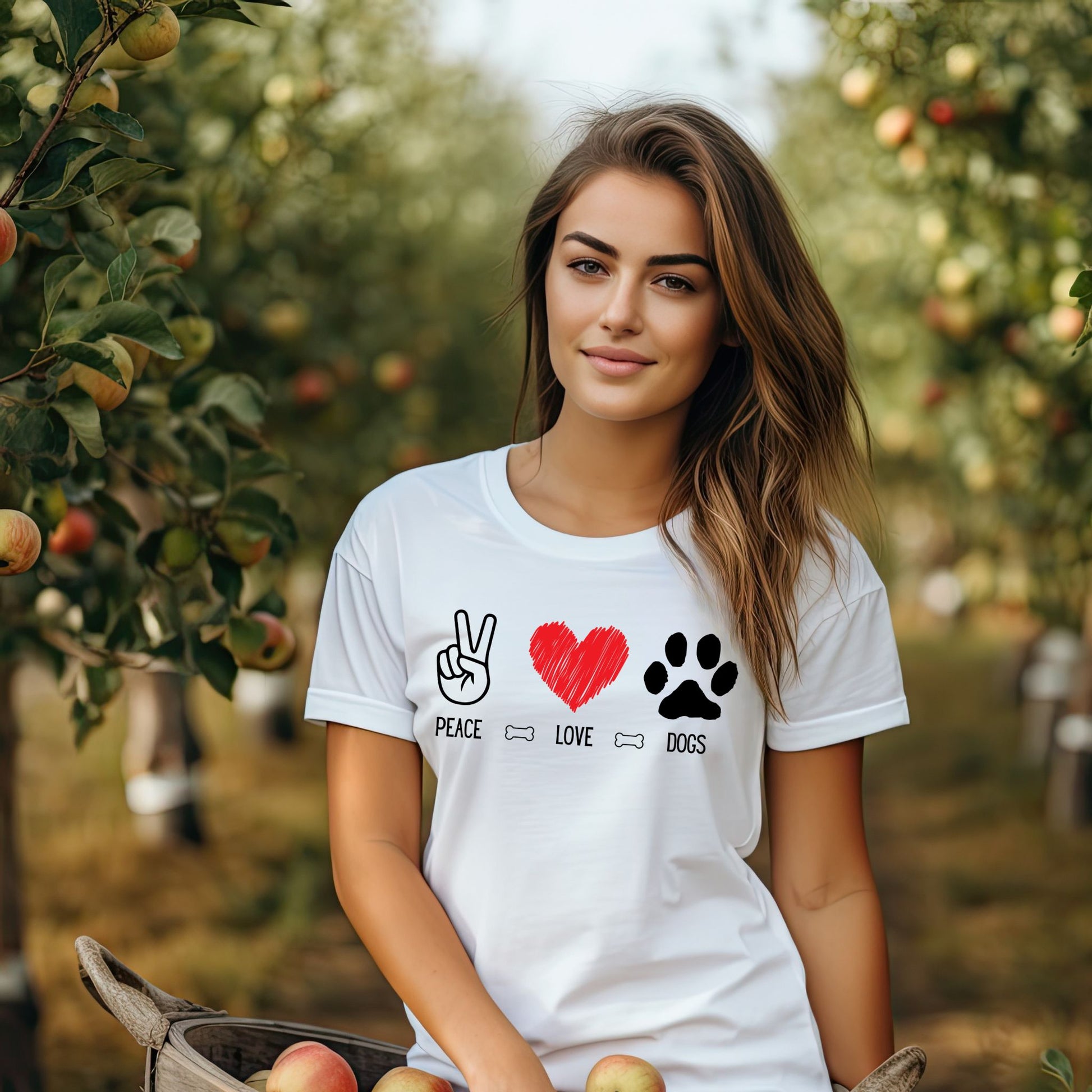 Peace Love Dogs Shirt, Dog Lover Shirt, Cute Dog Lover Tee with Peace Sign, Heart, and Paw Print Graphic